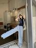 Playera de Manga Corta con Cuello Redondo Estilo Coreano con Estampado de Flores para Mujer Verano Azul Marino Slim Ajustada Corta Nicho Hombro Derecho Top