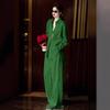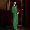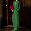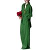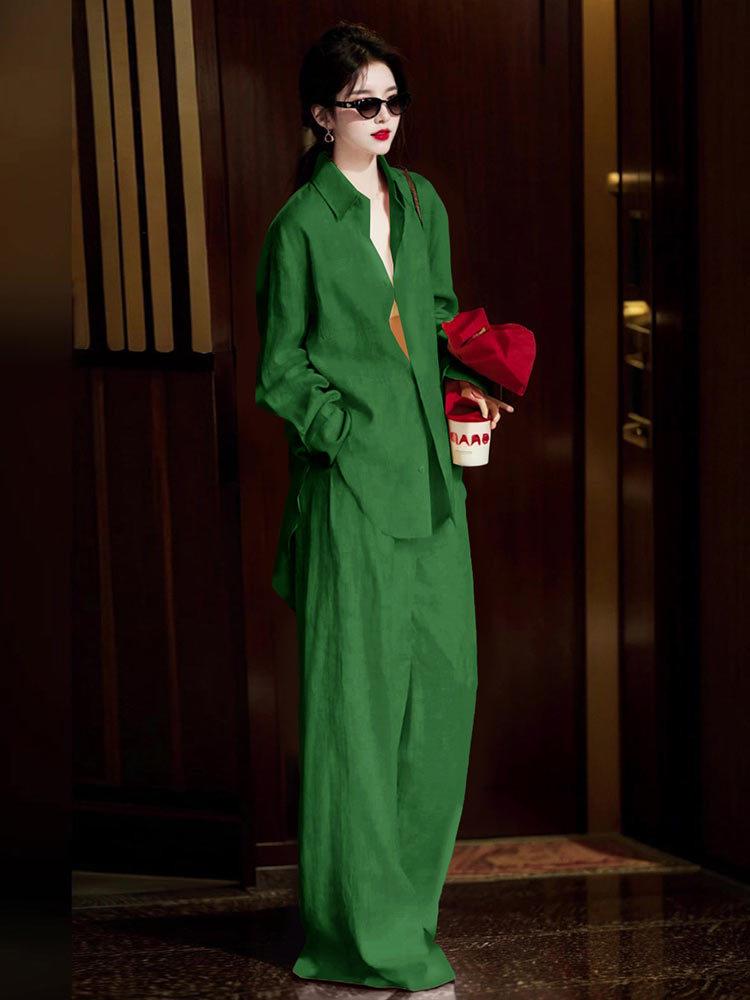 Conjunto de Verano 2025 de Corte Relajado Estilo Coreano Camisa Holgada Verde con Solapa Pantalones de Pierna Ancha Conjunto de Dos Piezas Mujer
