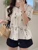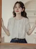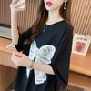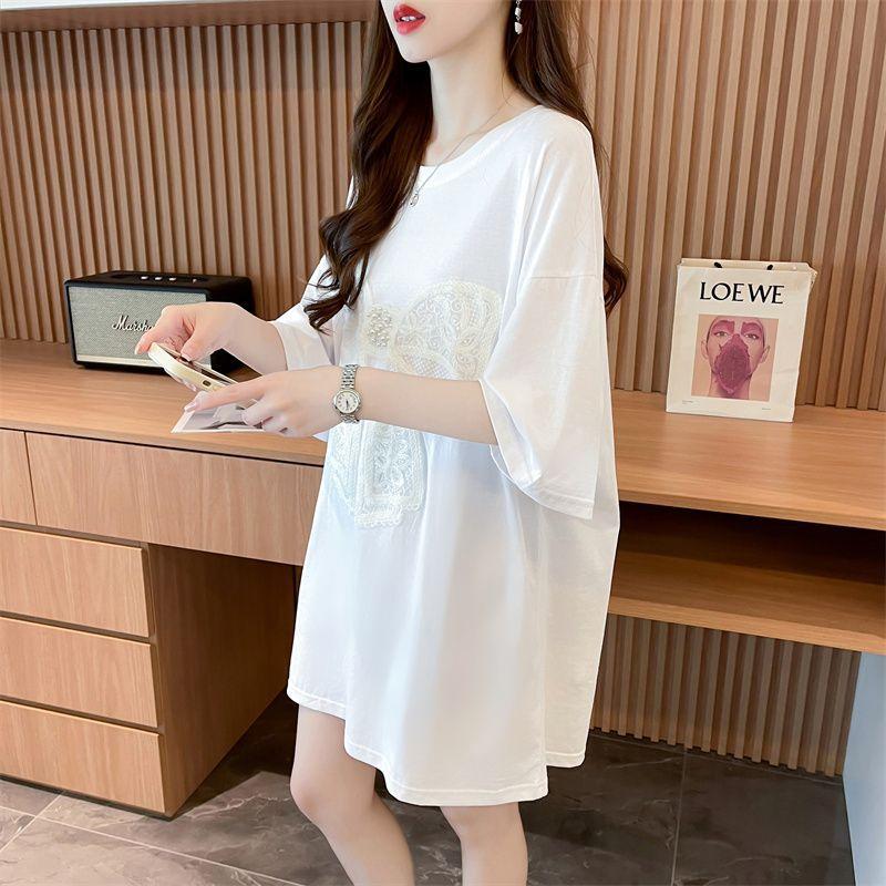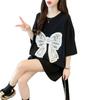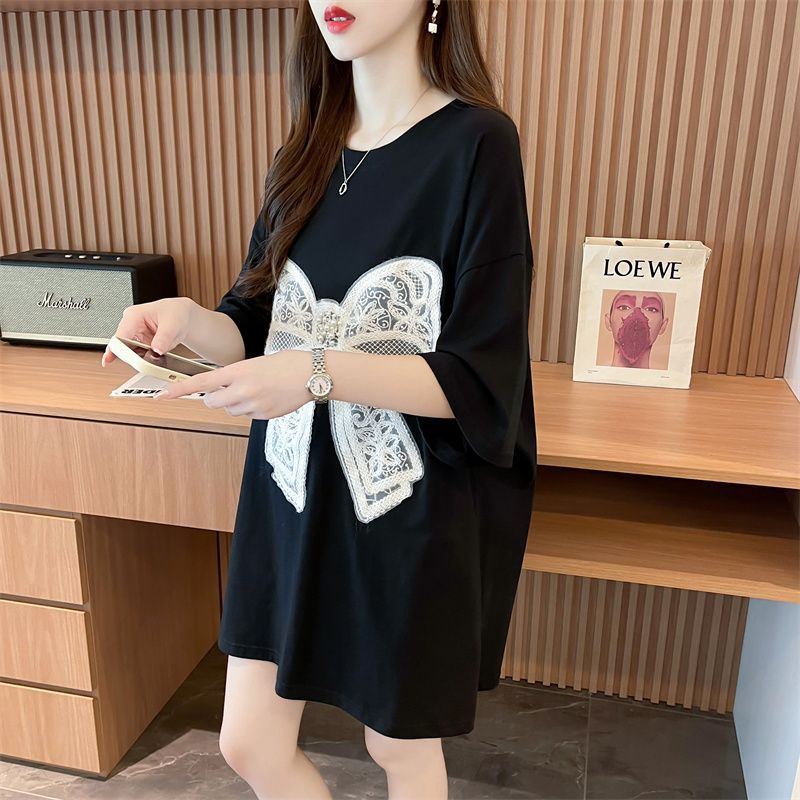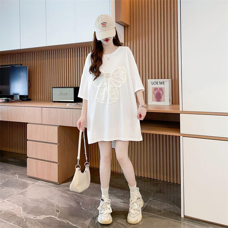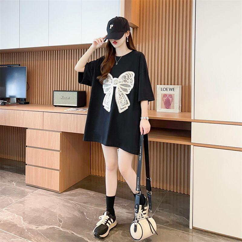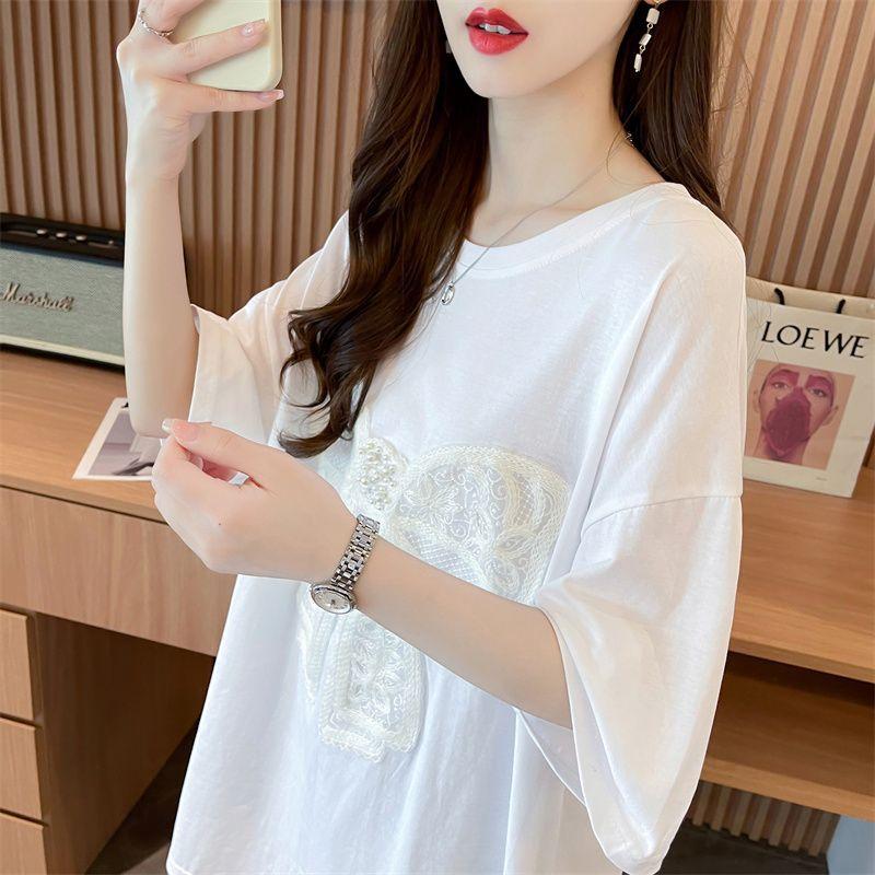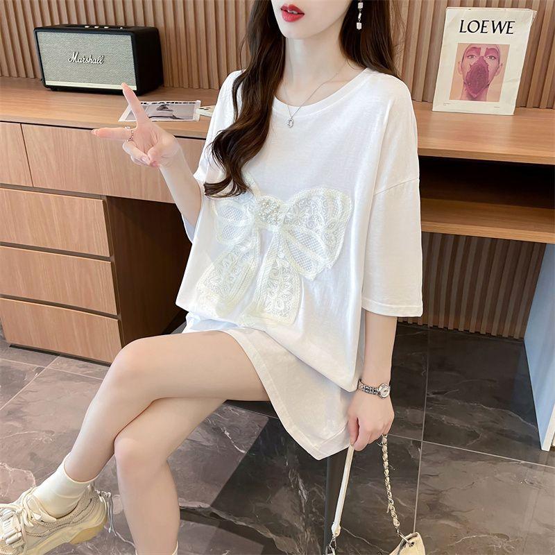 Camiseta de manga corta con lazo bordado verano 2025 nuevo diseño nicho de alta gama holgada manga media top que cubre la carne