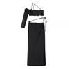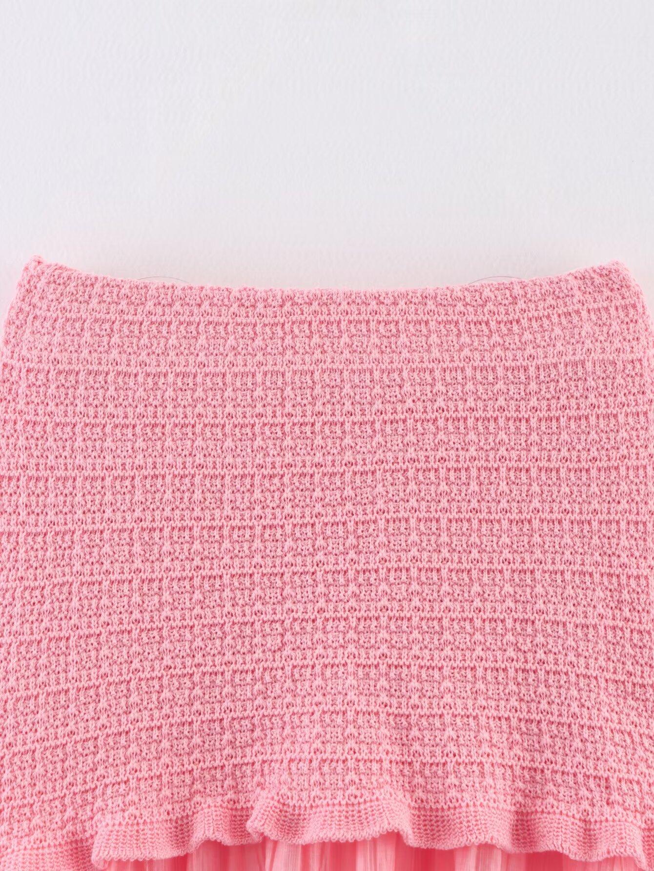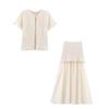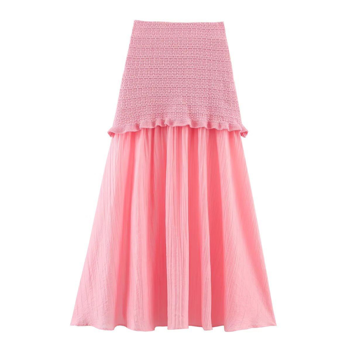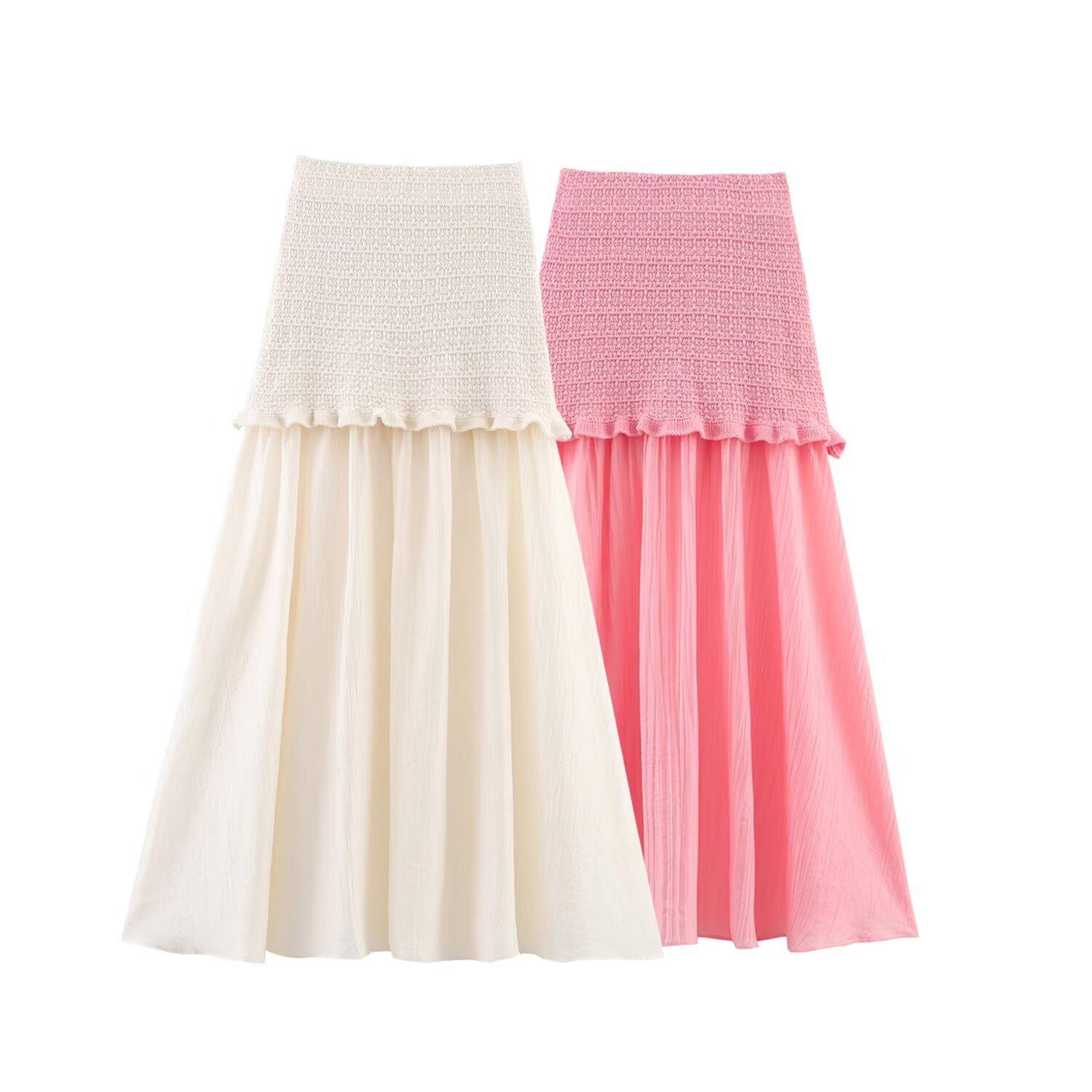 Estilo europeo y americano Amazon AliExpress más vendido tendencia de moda versátil conjunto de top de punto y falda en capas bicolor