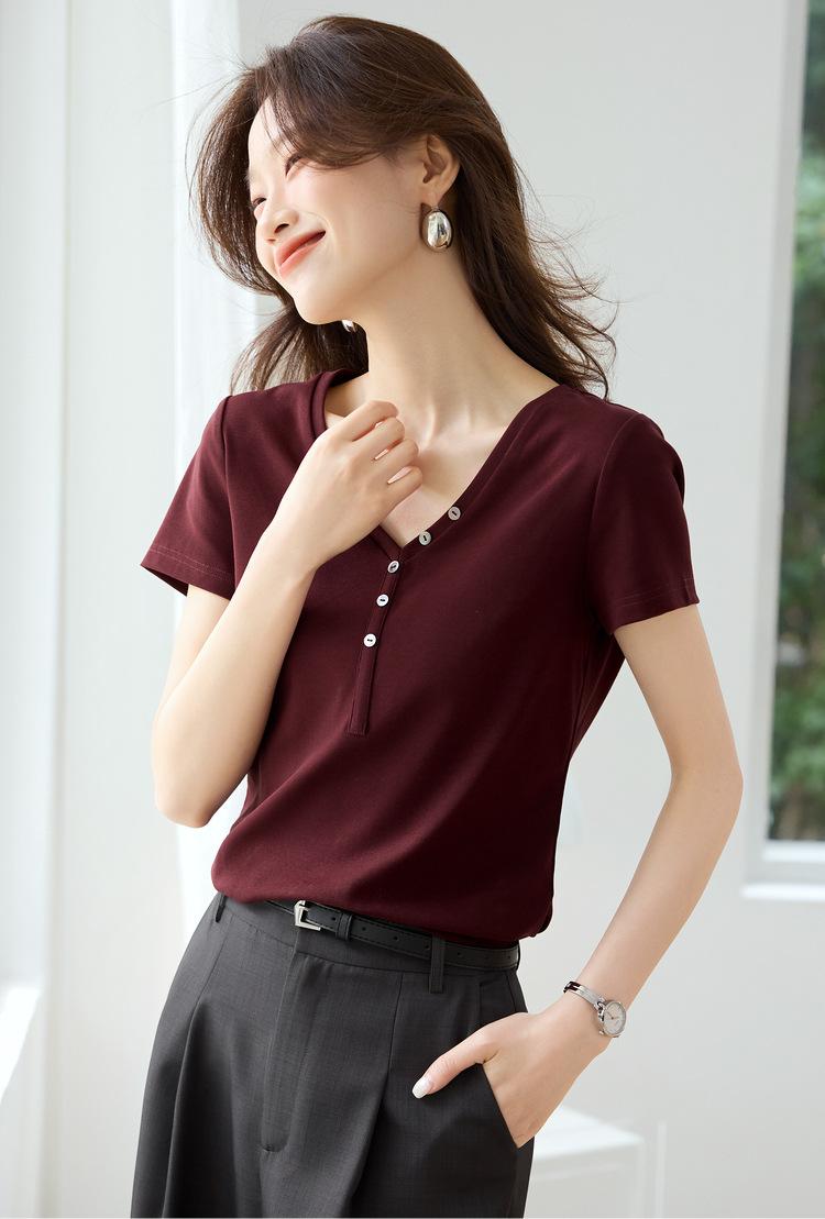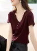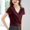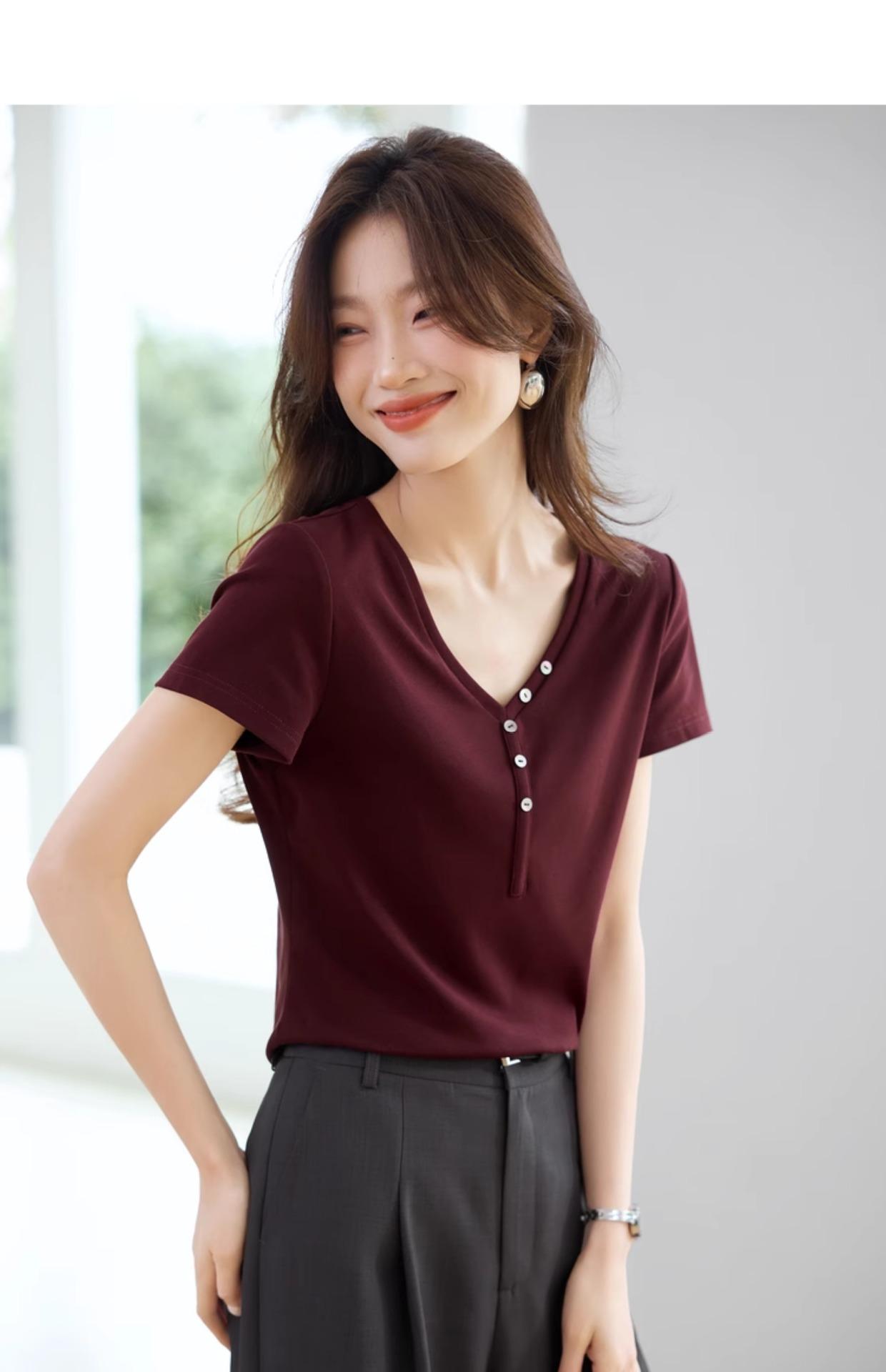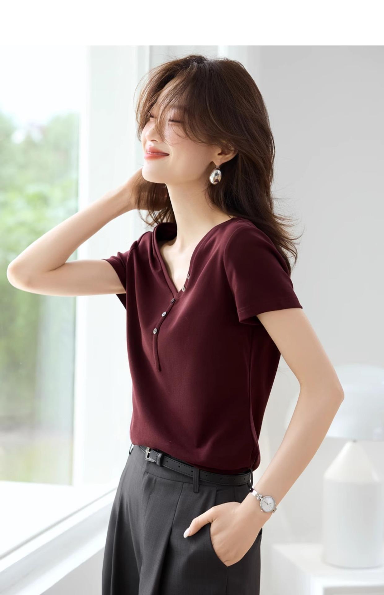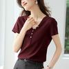 Camisa elegante informal de manga corta con cuello en V, ajustada y decorativa, disponible en stock, novedad de verano de 2025.