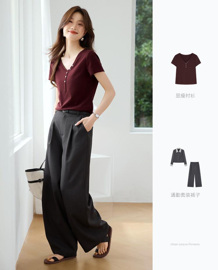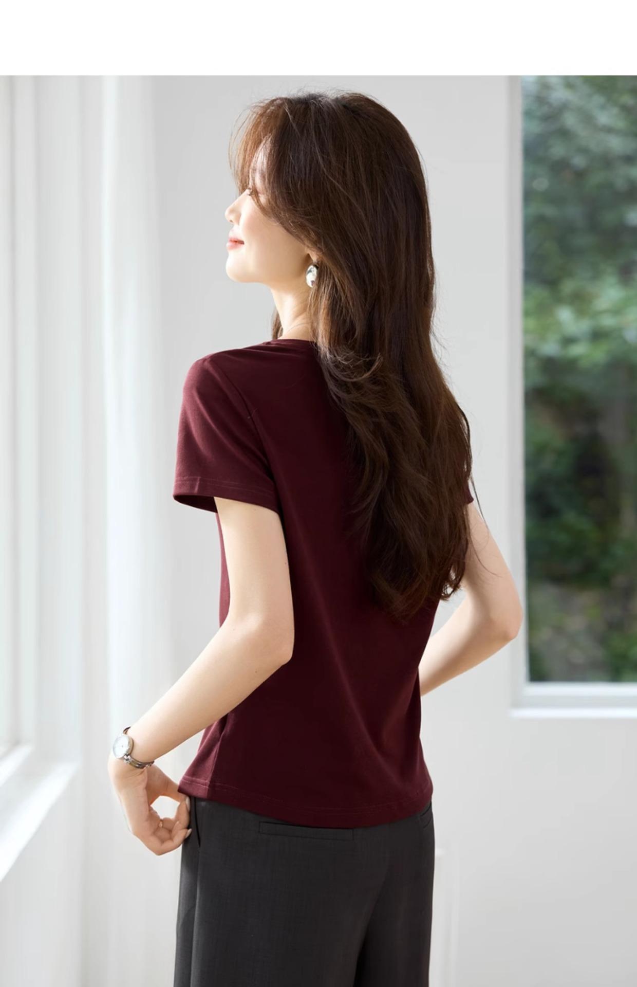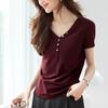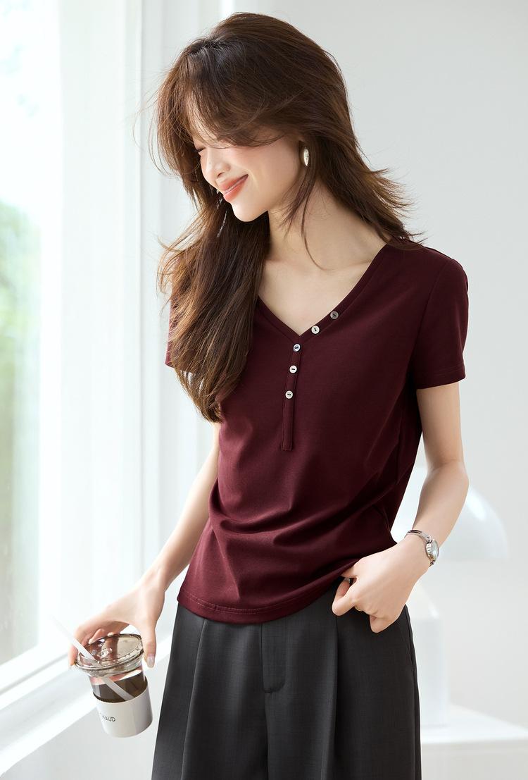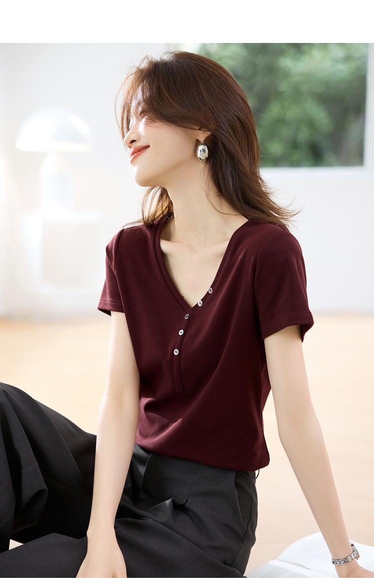 Camisa elegante informal de manga corta con cuello en V, ajustada y decorativa, disponible en stock, novedad de verano de 2025.