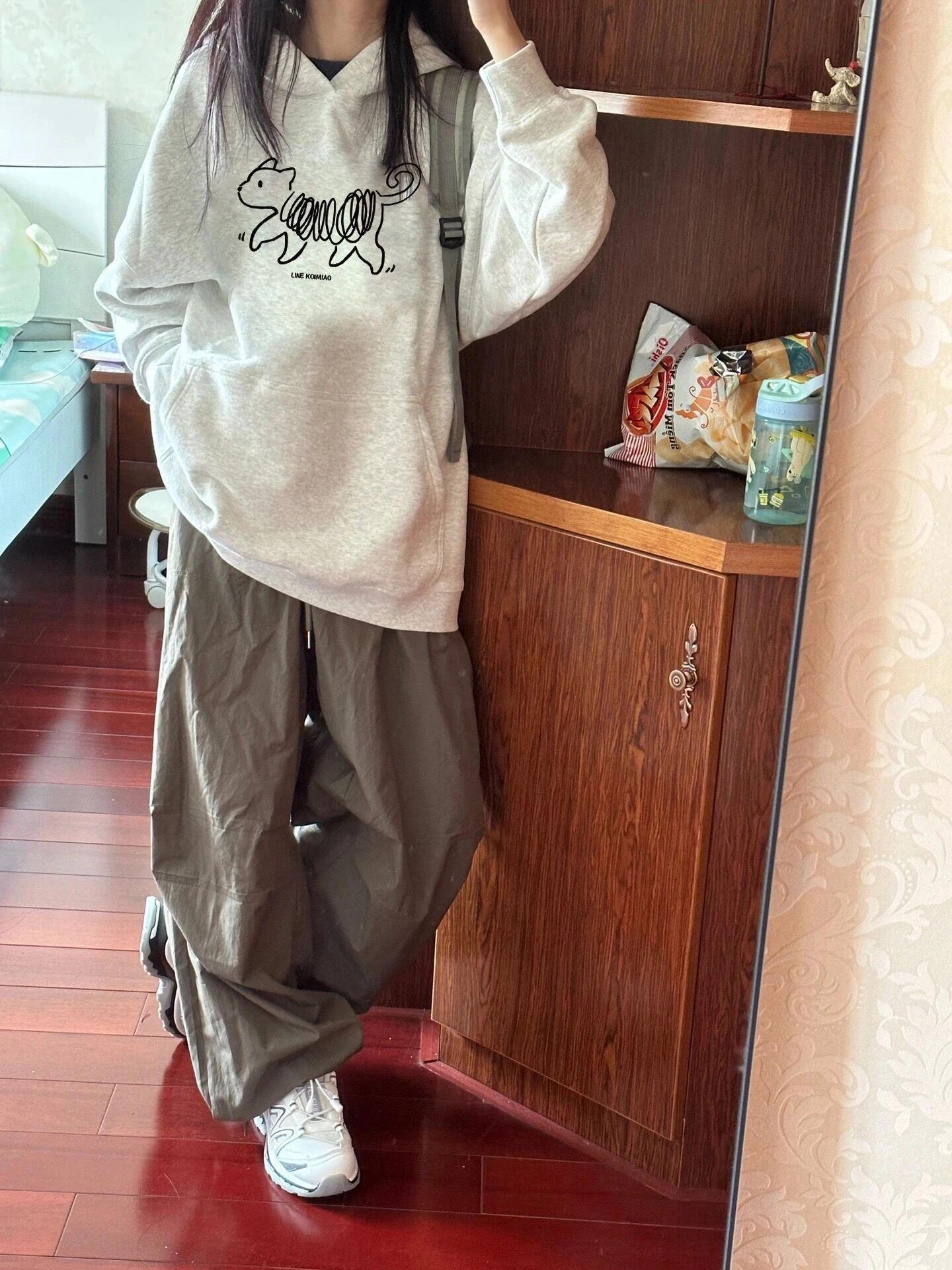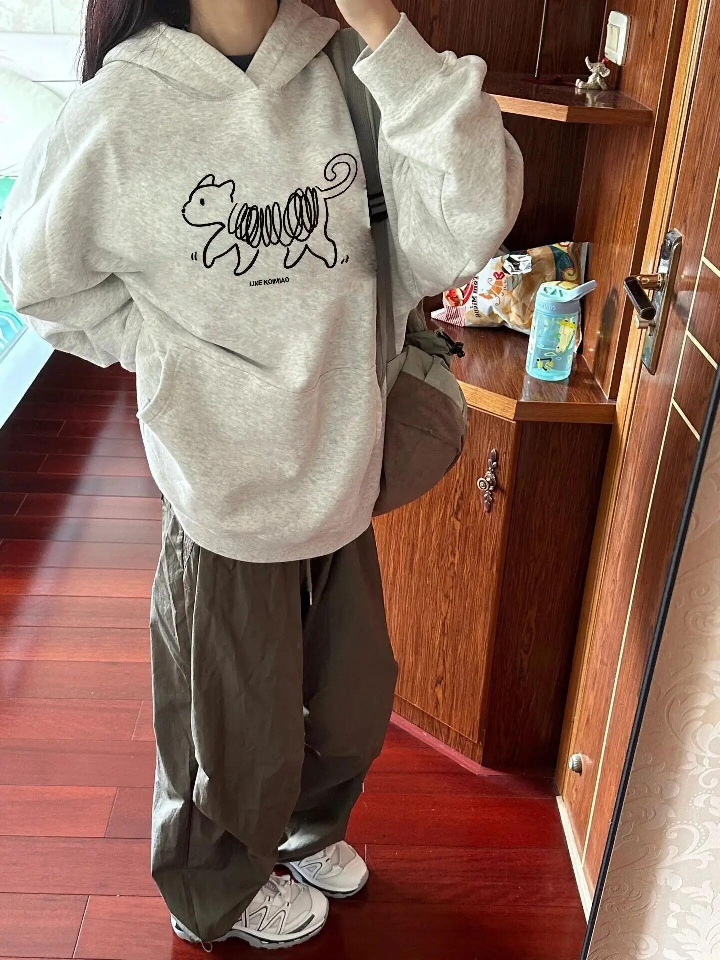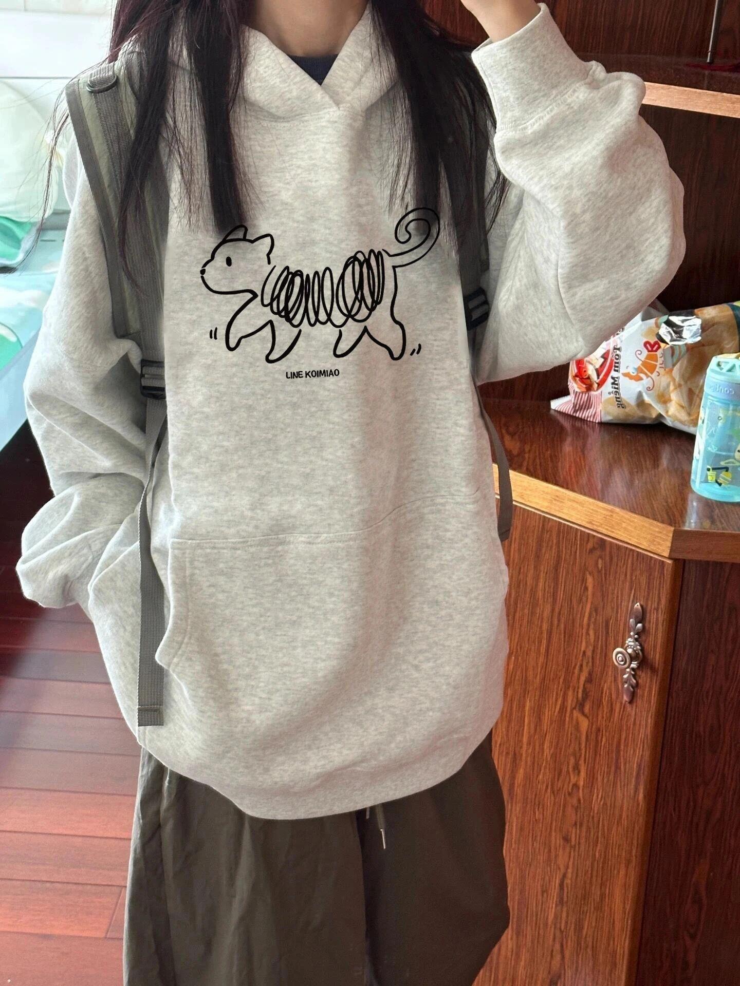 Suéter sencillo con capucha europeo y americano para mujer, estampado, talla grande, ropa con capucha, sudadera con capucha artística retro hip-hop, sensación de alta gama