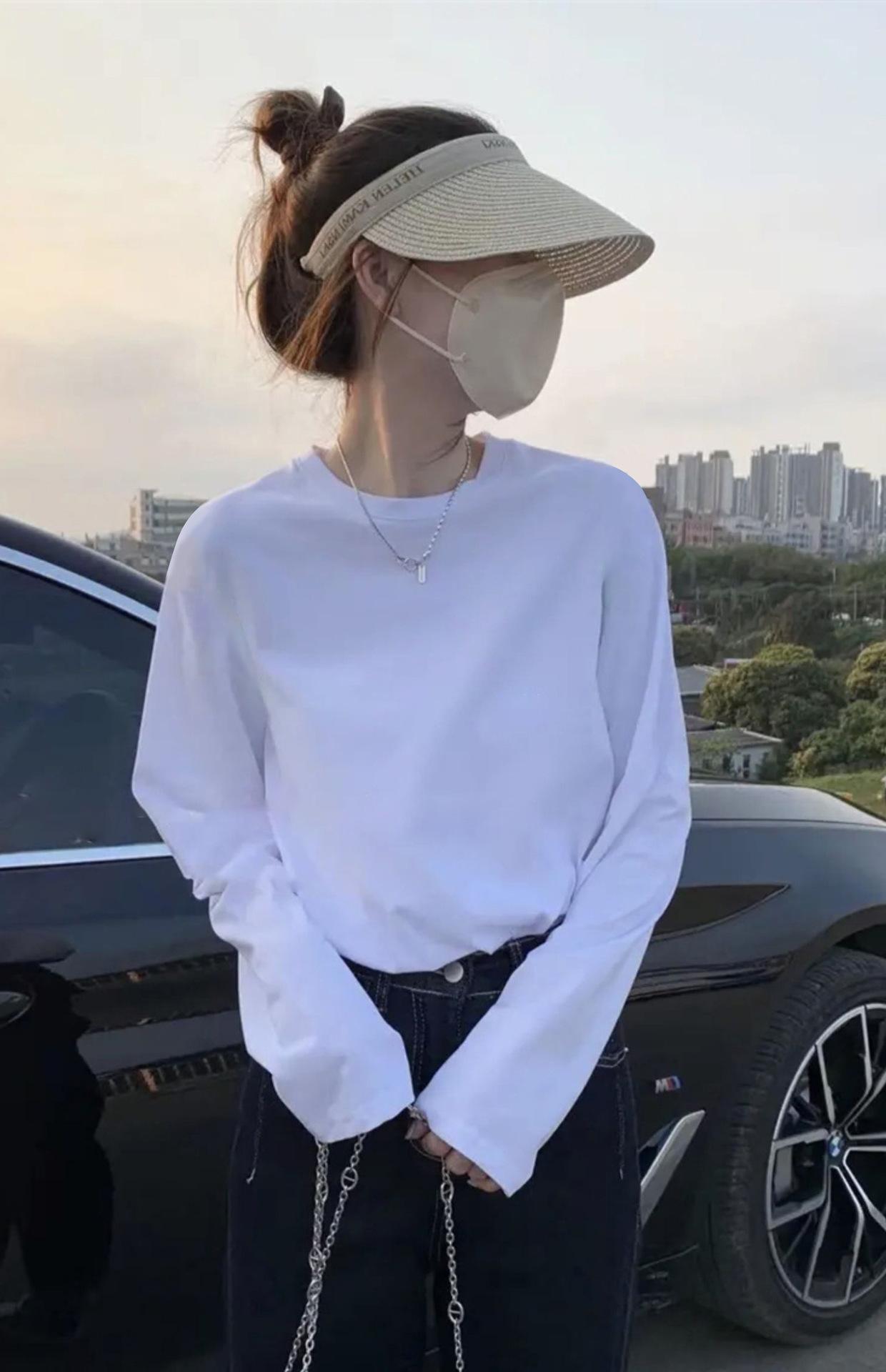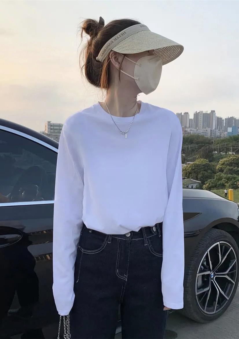 Top Sencillo Versátil de Algodón Puro para Mujer Primavera 2025 Camiseta Térmica de Manga Larga Capa Base Básica Moderna