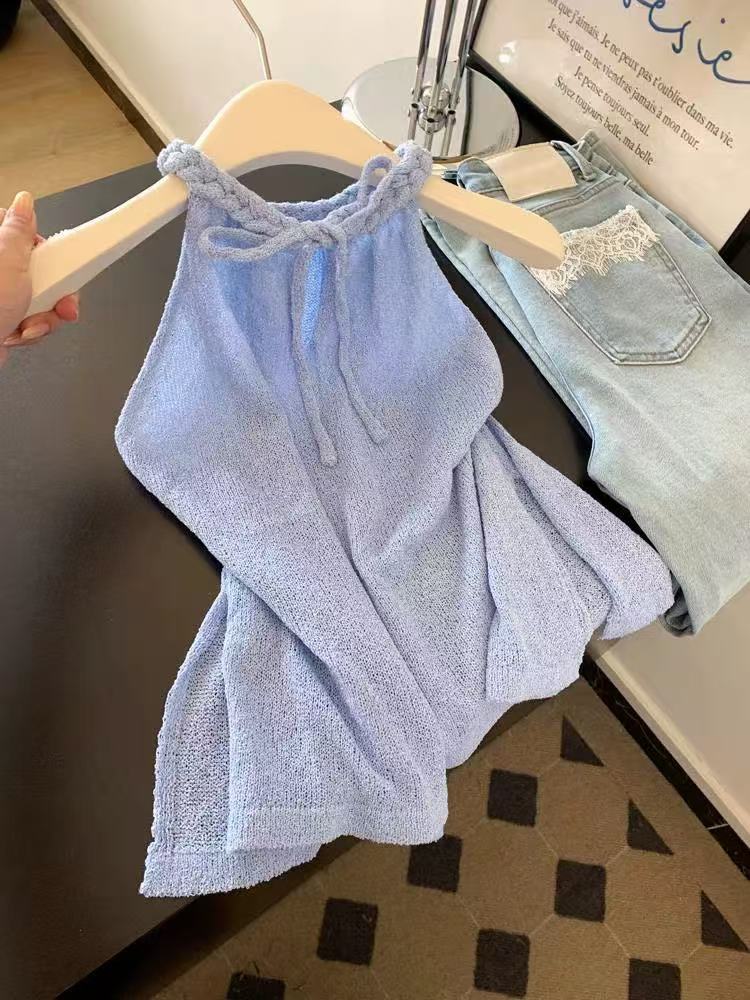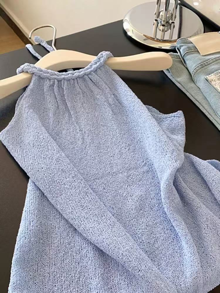 Chaleco de punto sin mangas halter puro y sexy para mujer 2025 estilo coreano súper favorecedor chic top delgado ins