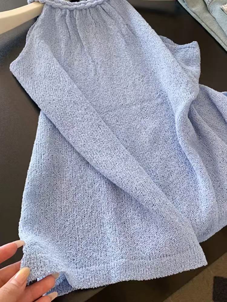 Deseo Puro Halter Sin Mangas Chaleco de Punto para Mujer 2025 Estilo Coreano Súper Hermoso y Chic Top Delgado Ins
