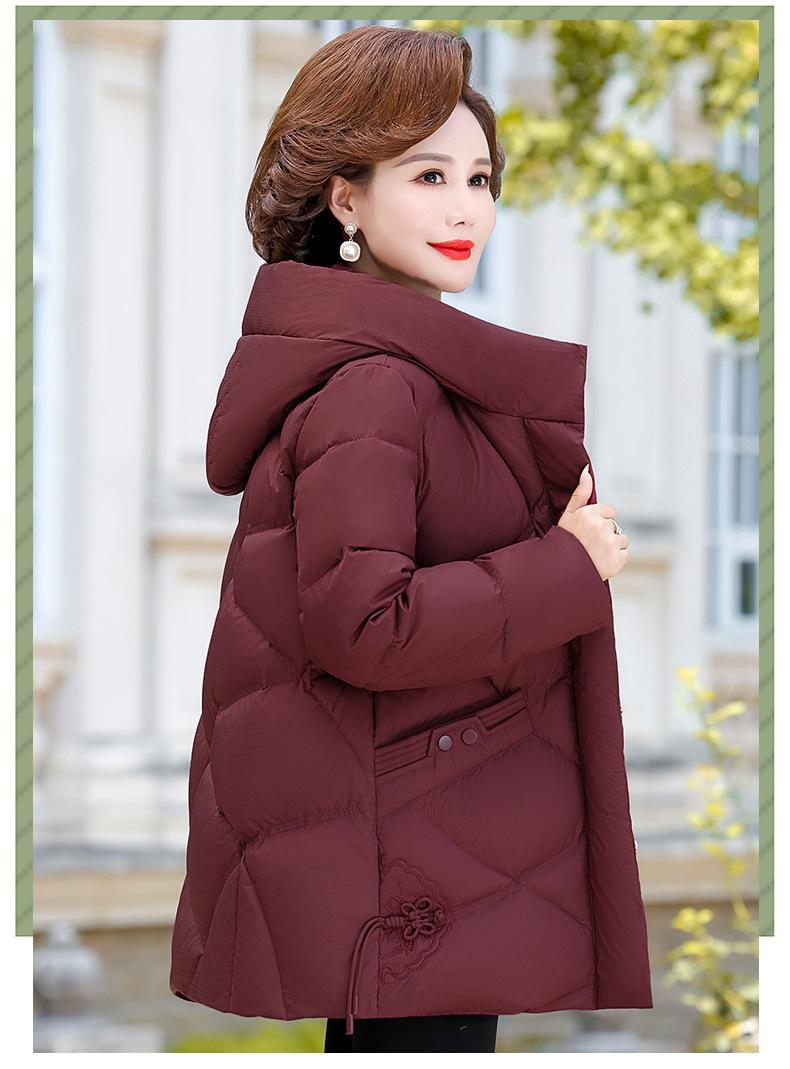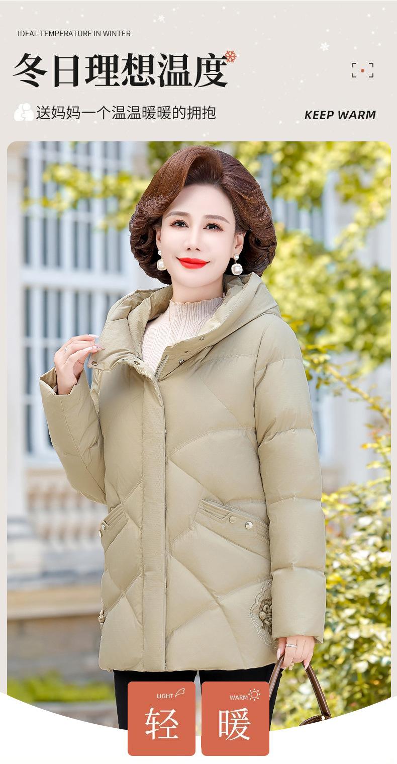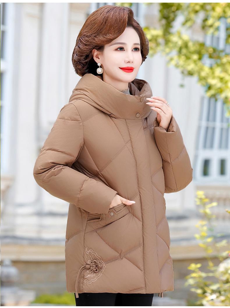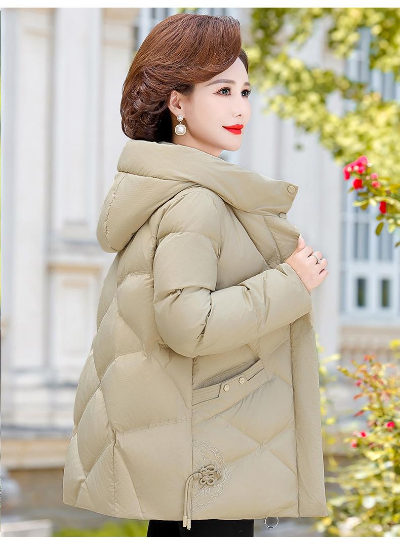 Chaqueta de plumón para madre de mediana edad Snow Flying Abrigo de invierno 2024 Nuevo estilo para mujer Estilo occidental Acolchada de algodón con capucha engrosada
