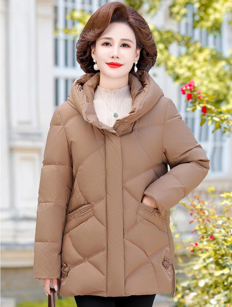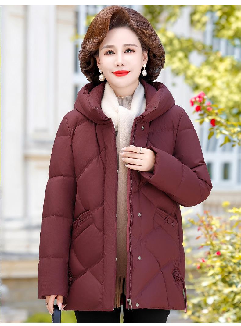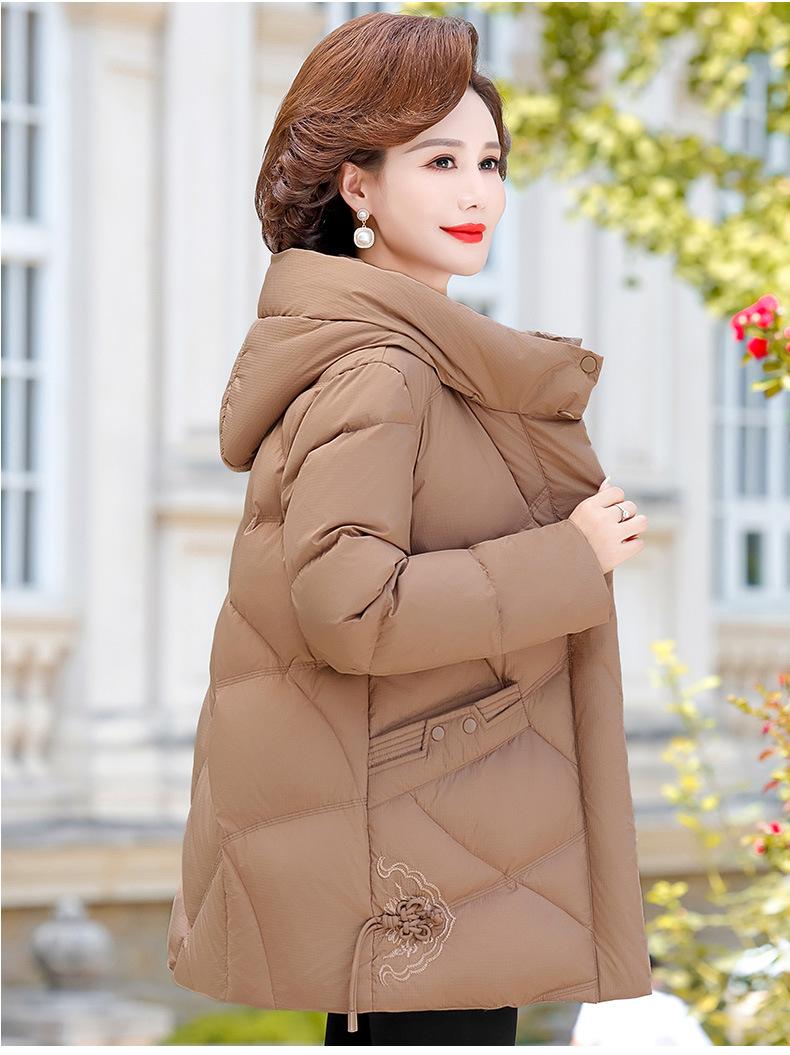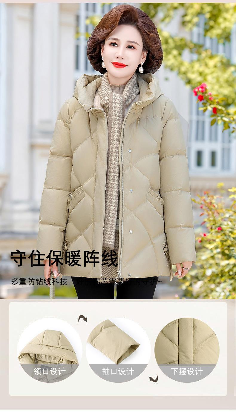 Chaqueta de plumón para madre de mediana edad Snow Flying Abrigo de invierno 2024 Nuevo estilo para mujer Estilo occidental Acolchada de algodón con capucha engrosada