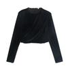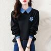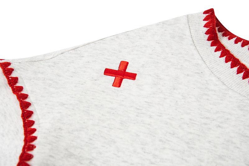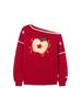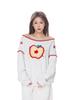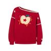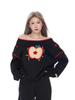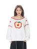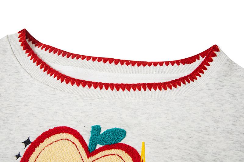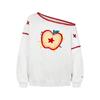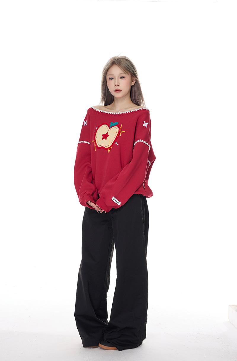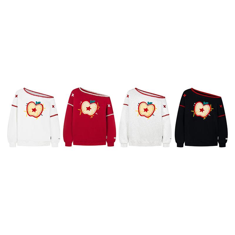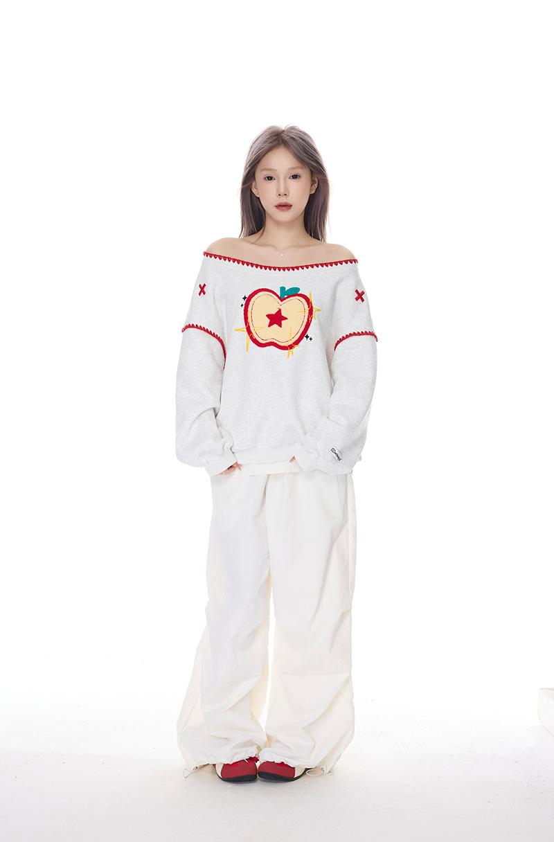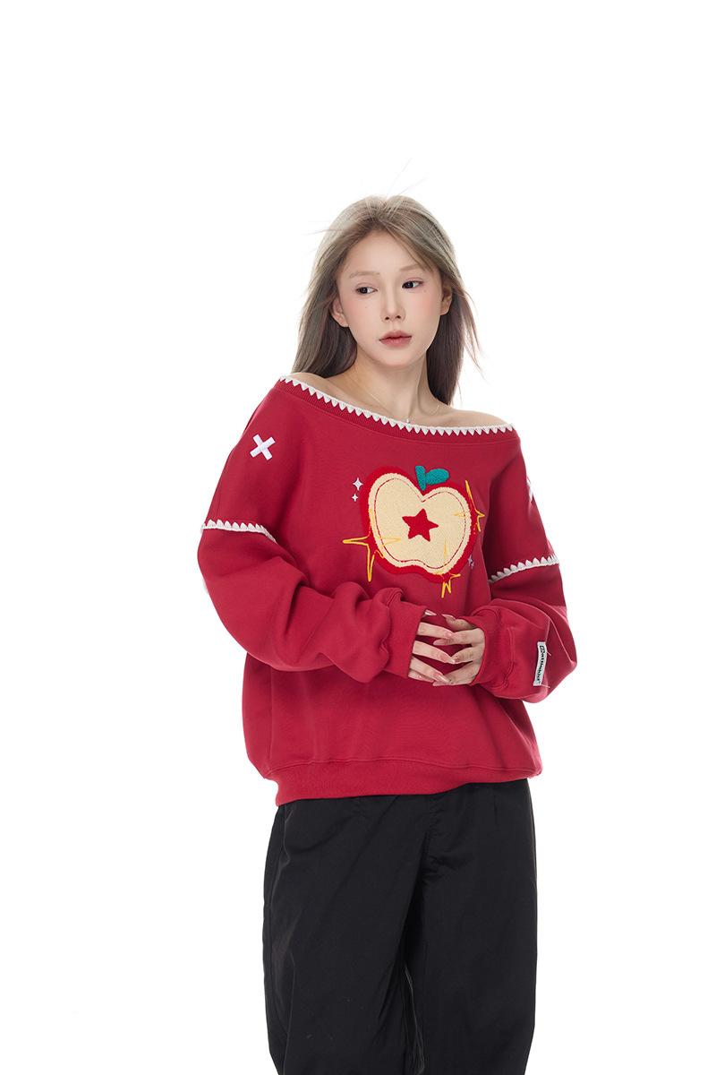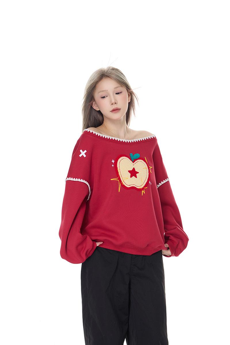 Sudadera Retro Apple Bordada con Hombros Descubiertos para Mujer Otoño 2025 Nuevo Americano Adelgazante Versátil Tendencia Top de Chica Caliente