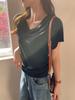 Verano Nuevo Negro Cuello en V Cintura Diseño Plisado Nicho Camiseta Manga Corta Mujer Simple Casual Elegante Camiseta Básica