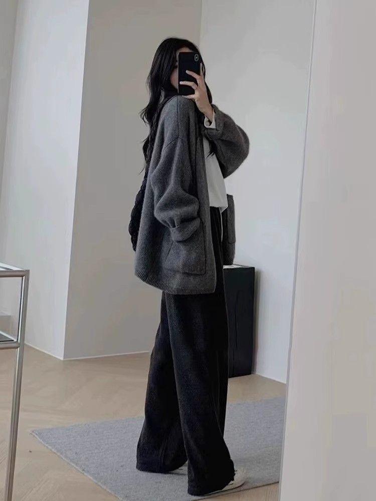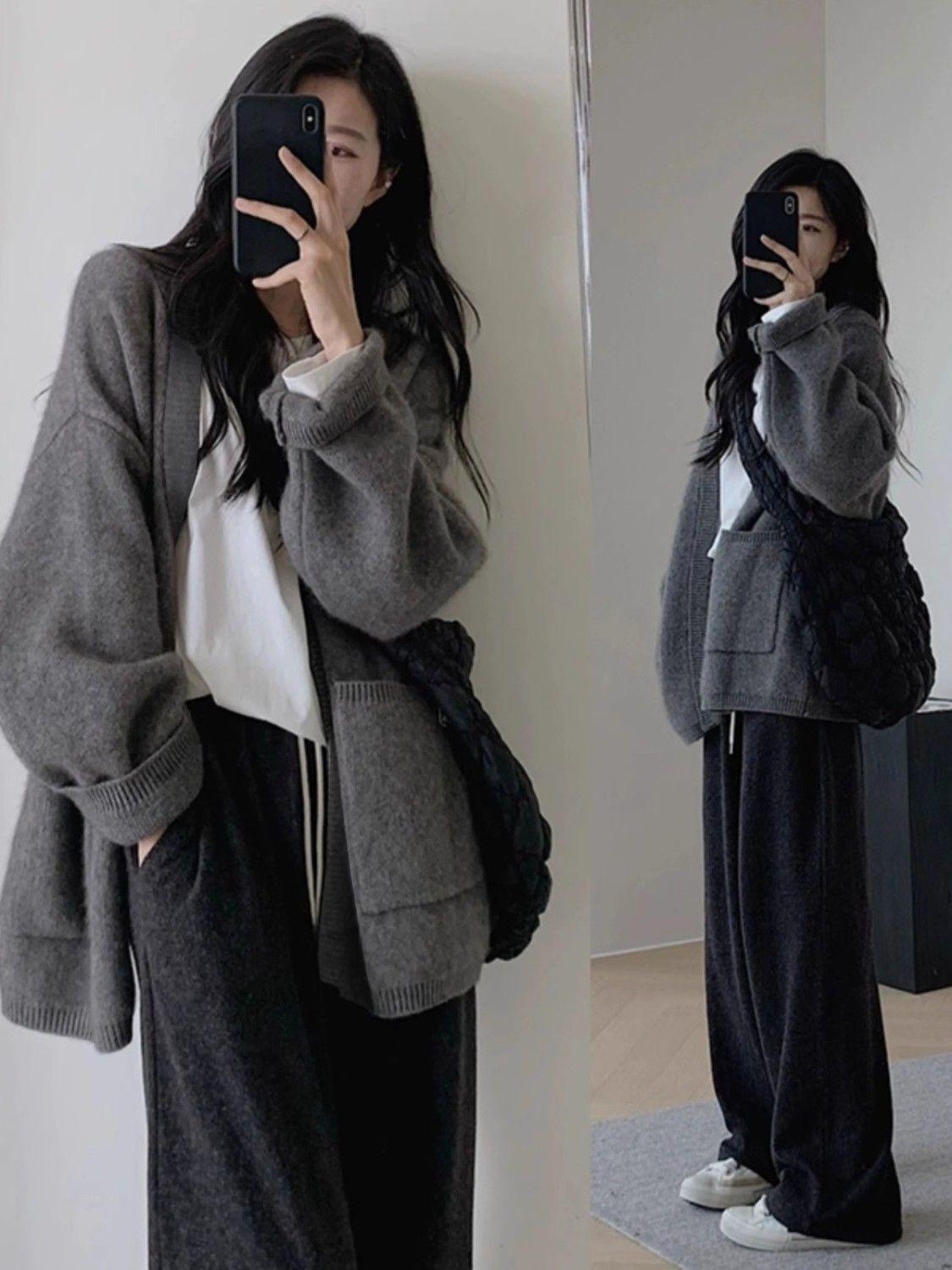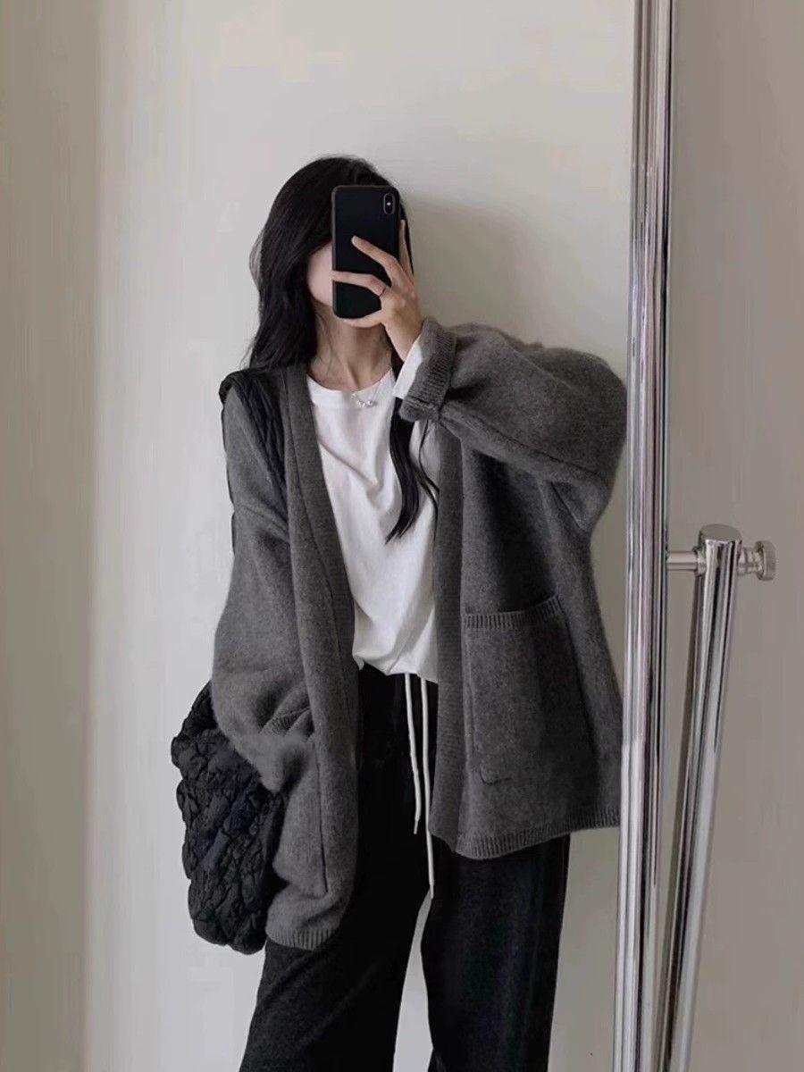 Abrigo suéter gris perezoso color sólido verano nuevo producto cárdigan holgado casual nuevo producto top mujeres