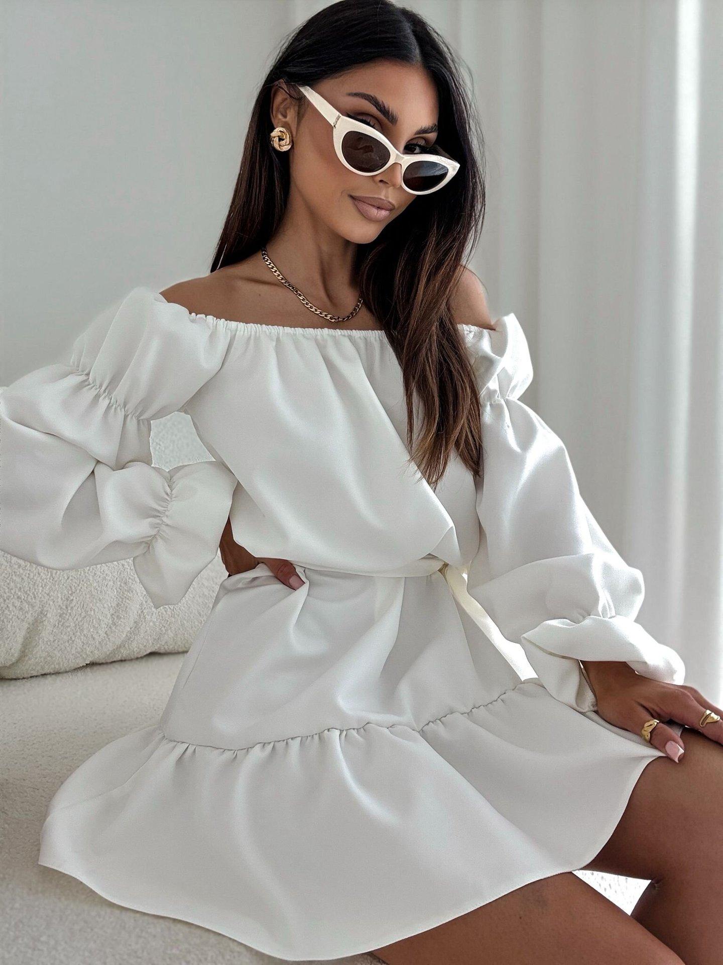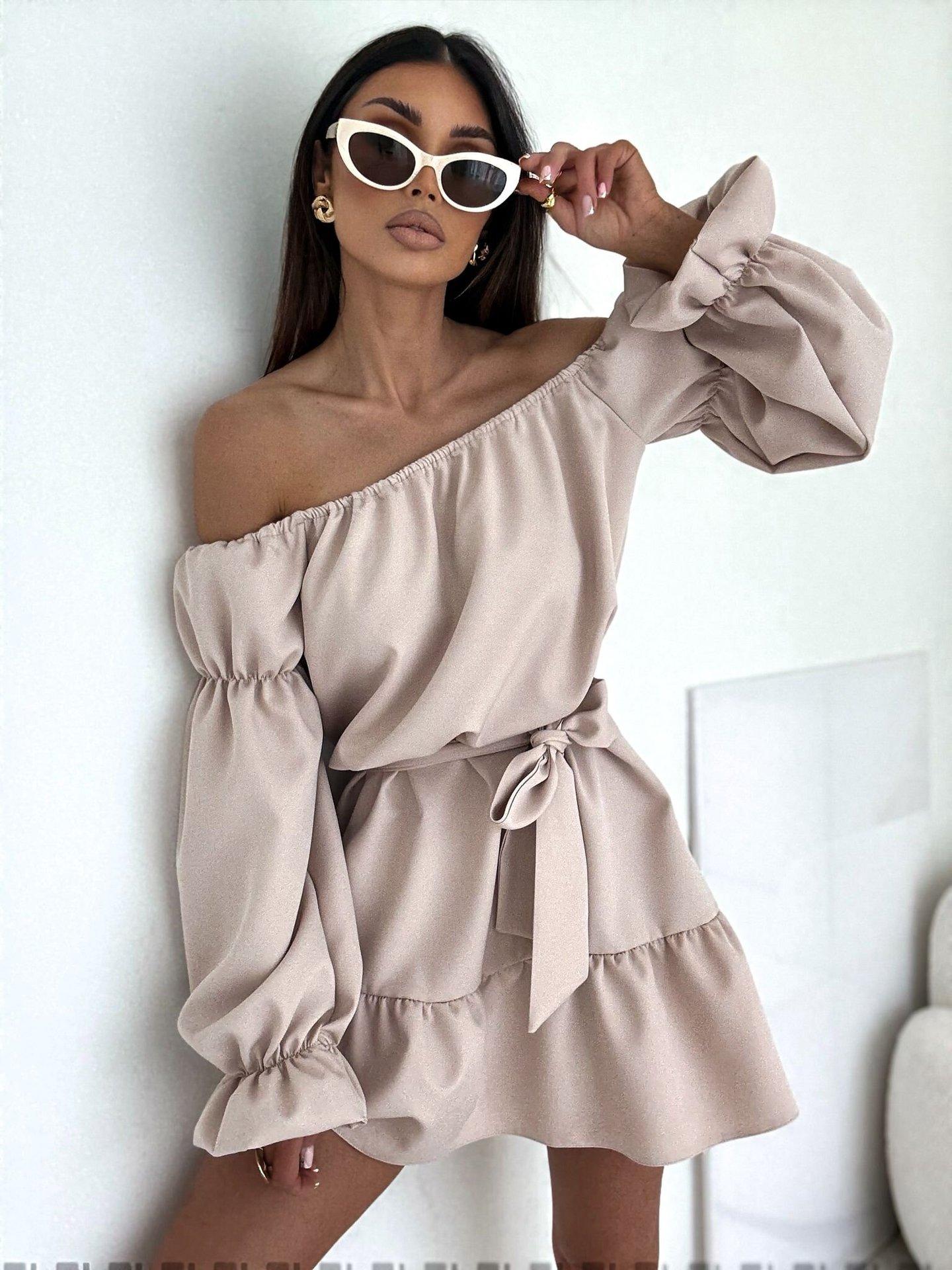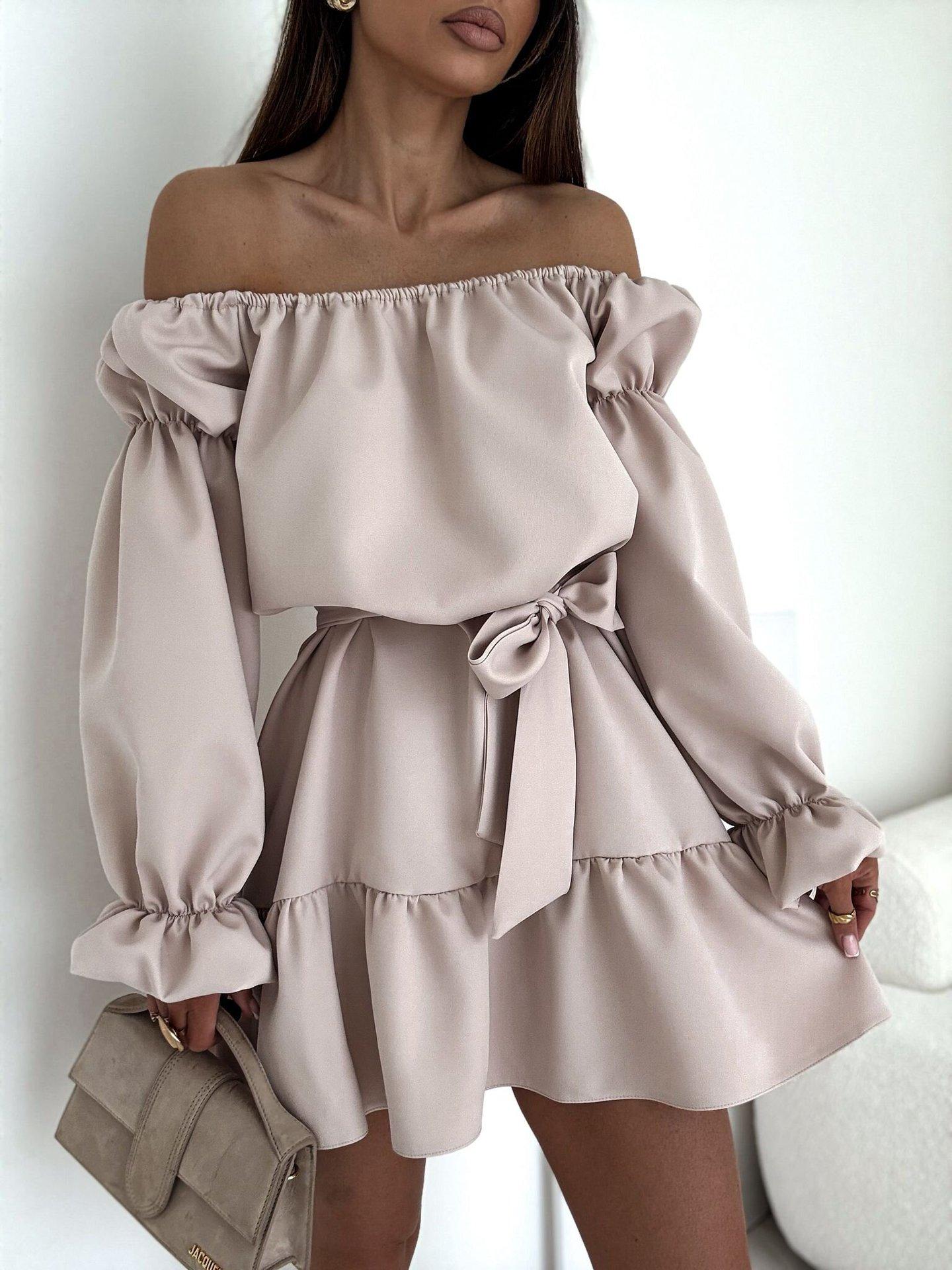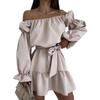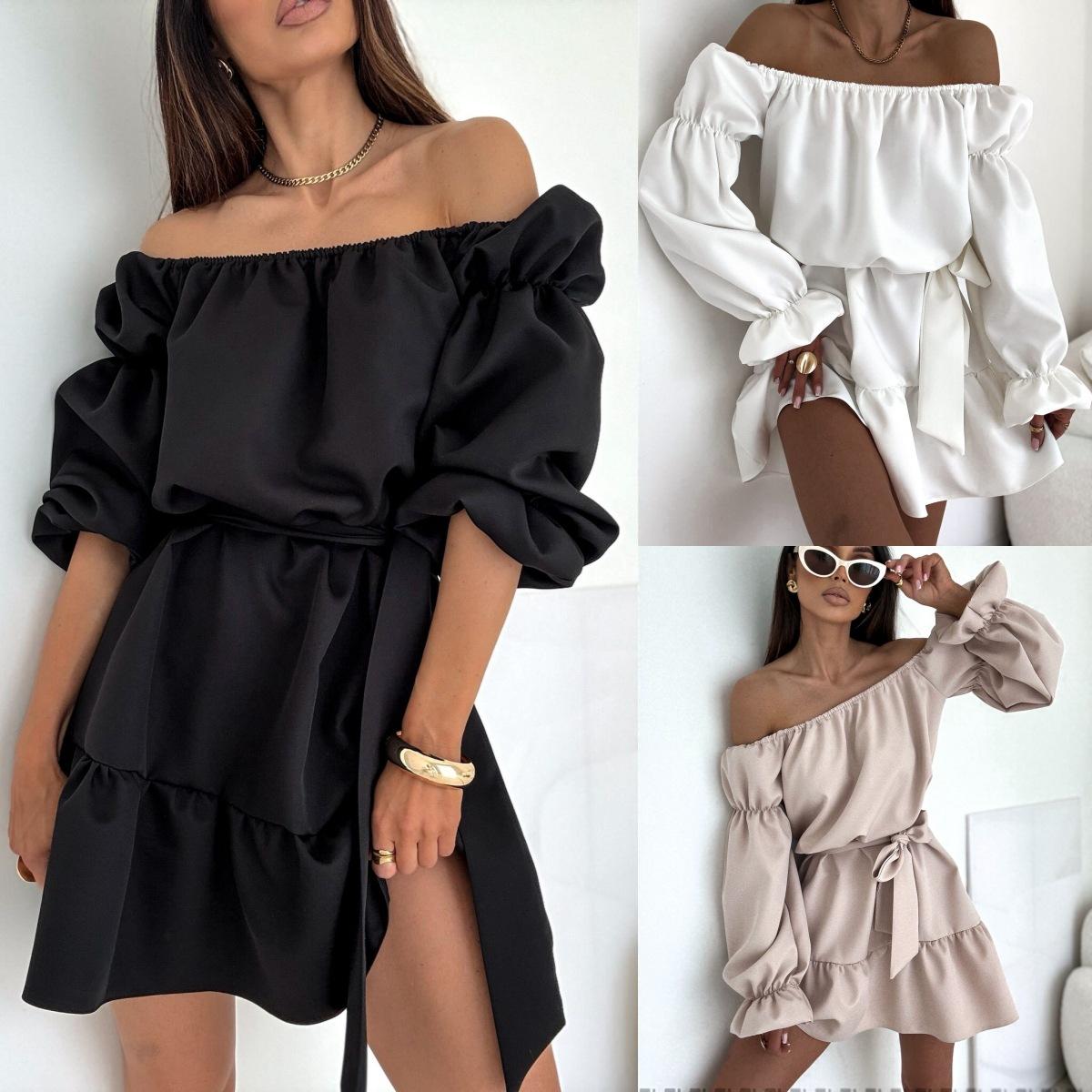2025 Amazon Europeo y Americano Transfronterizo Nueva Moda Otoño Casual Color Puro Un Hombro Cintura Vestido Ropa de Mujer