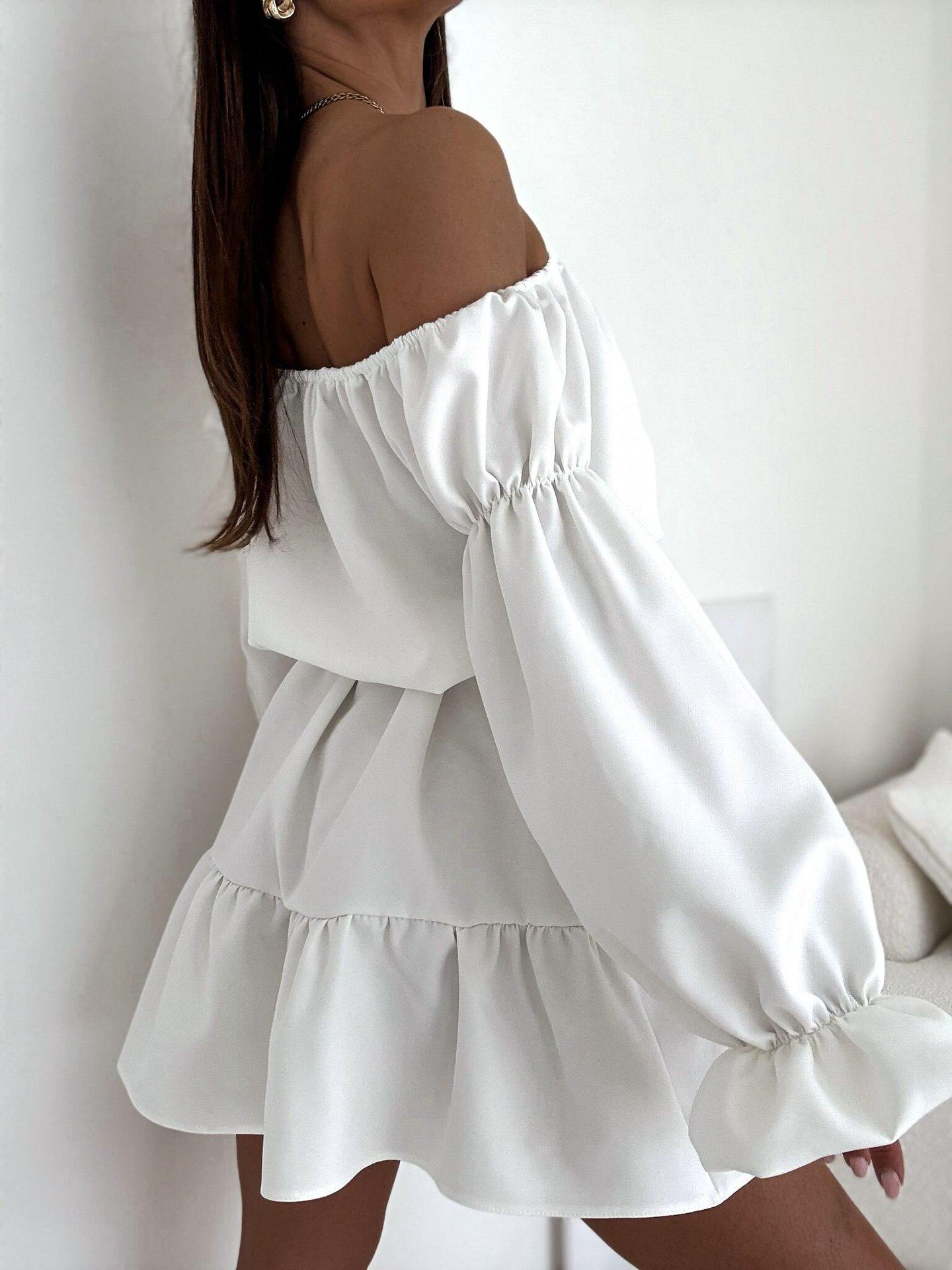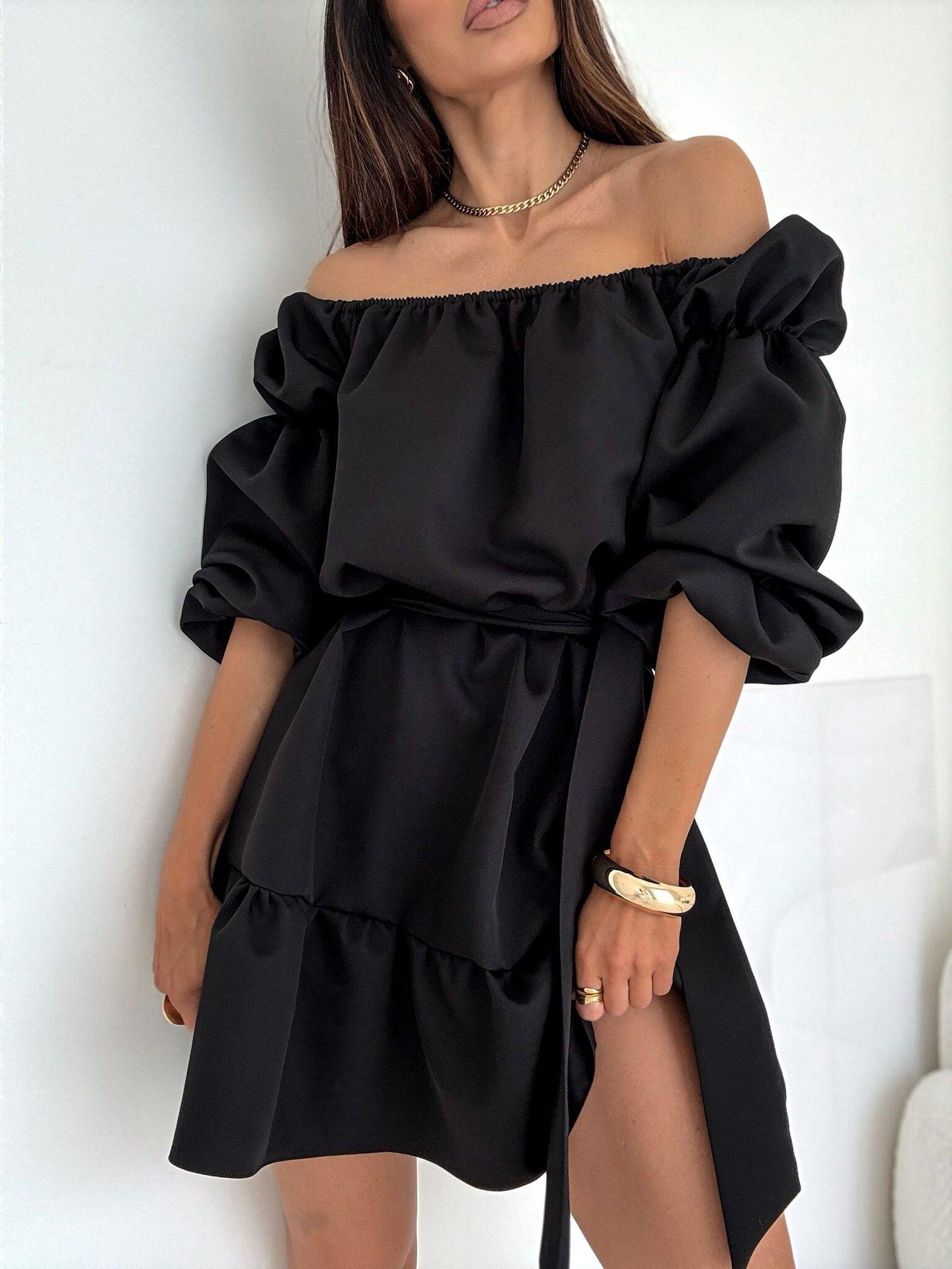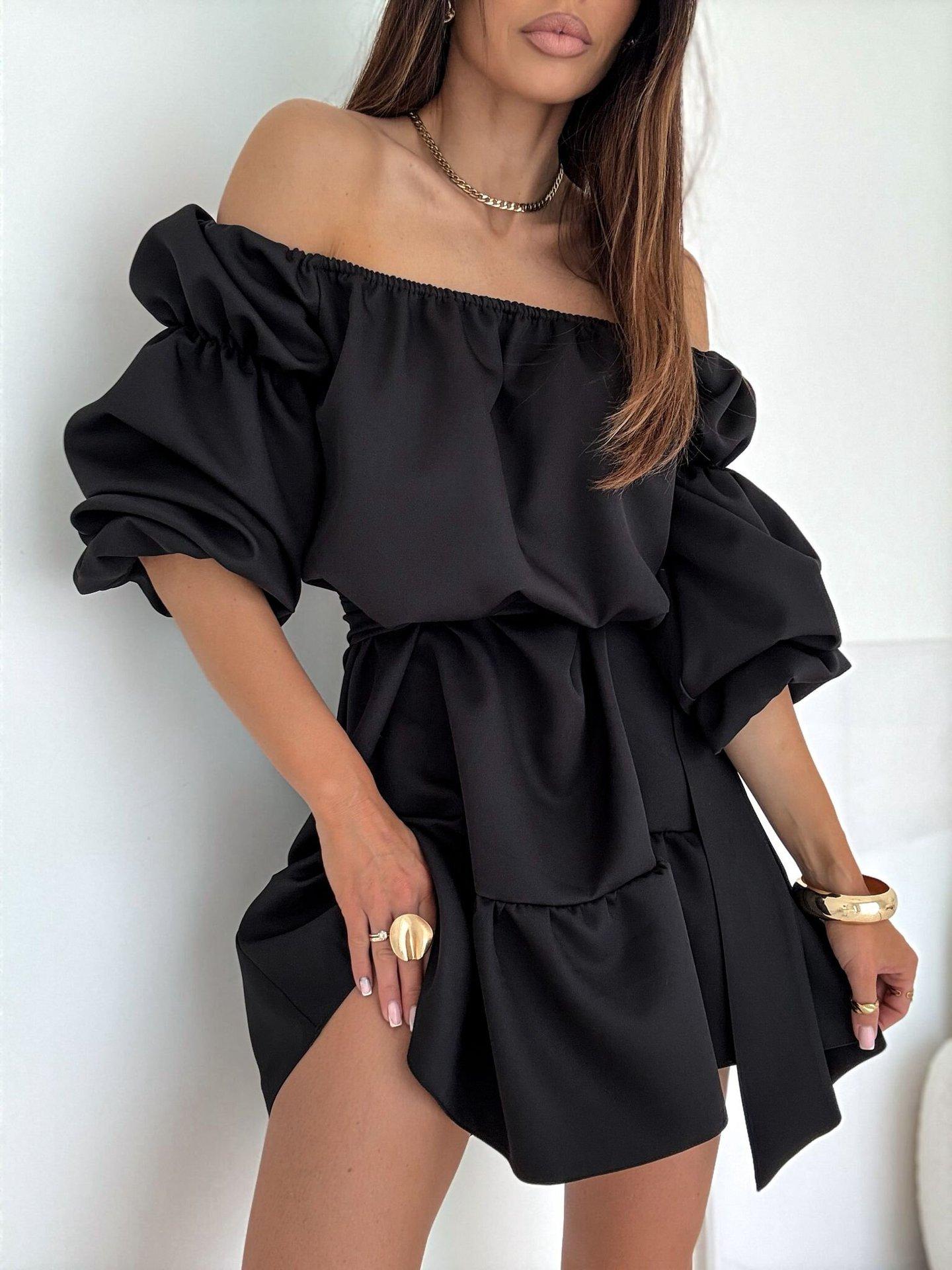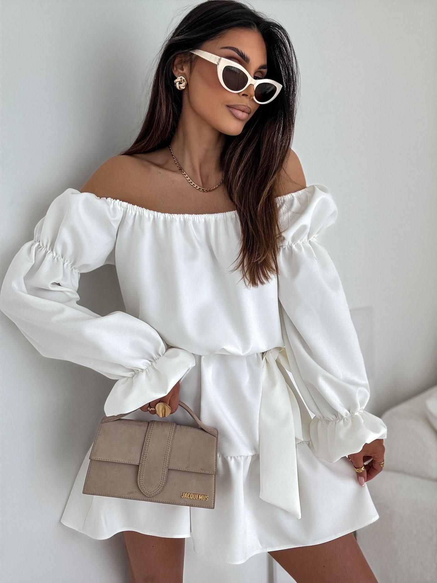 2025 Amazon Europeo y Americano Transfronterizo Nueva Moda Otoño Casual Color Puro Un Hombro Cintura Vestido Ropa de Mujer