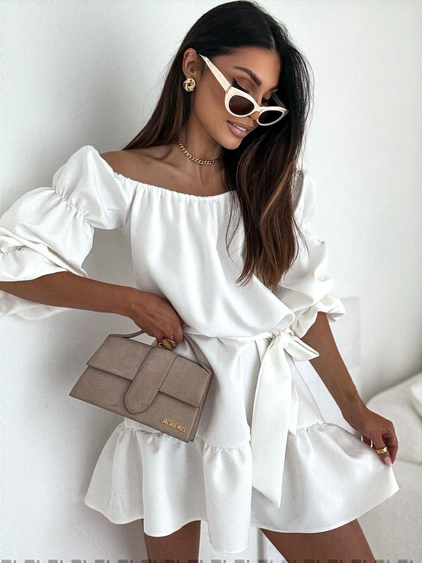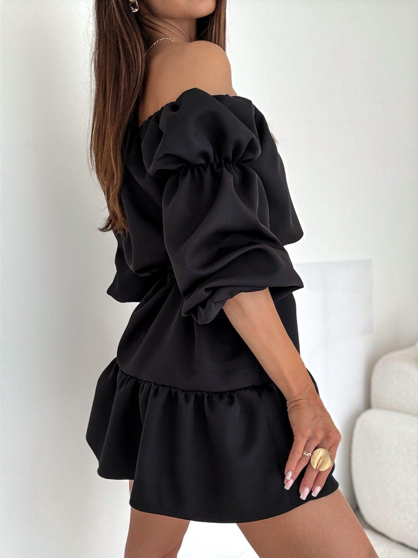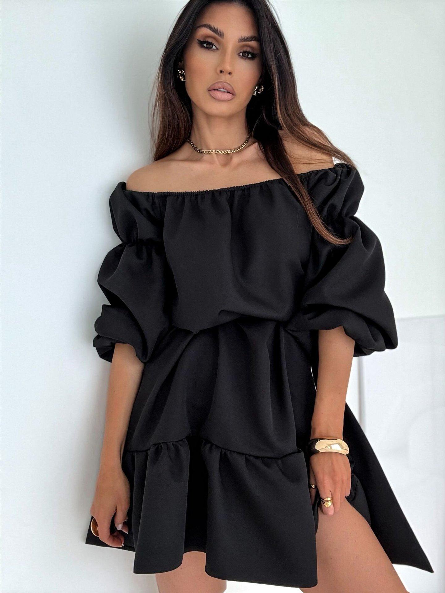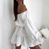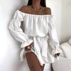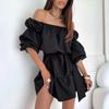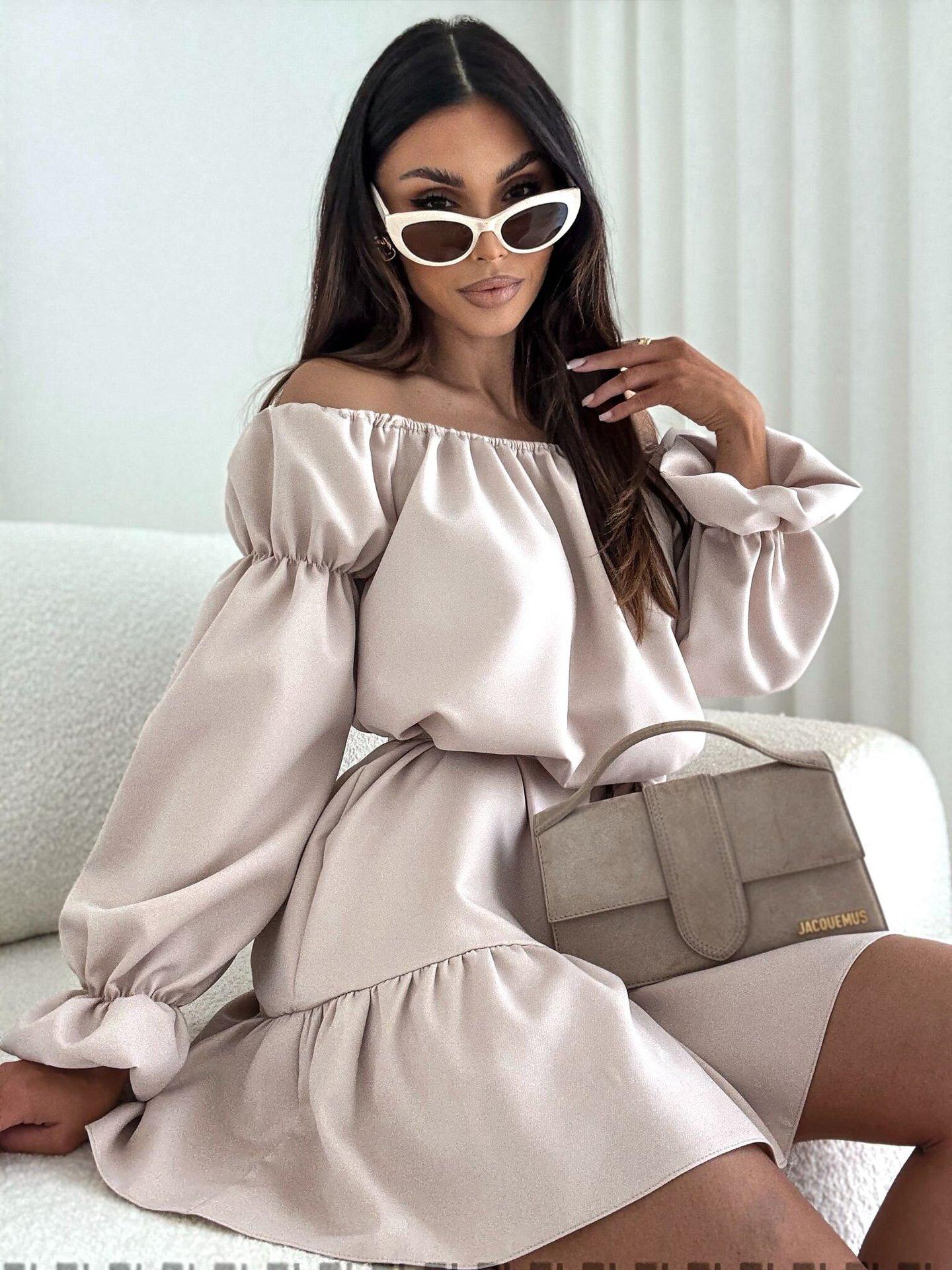 2025 Amazon Europeo y Americano Transfronterizo Nueva Moda Otoño Casual Color Puro Un Hombro Cintura Vestido Ropa de Mujer