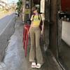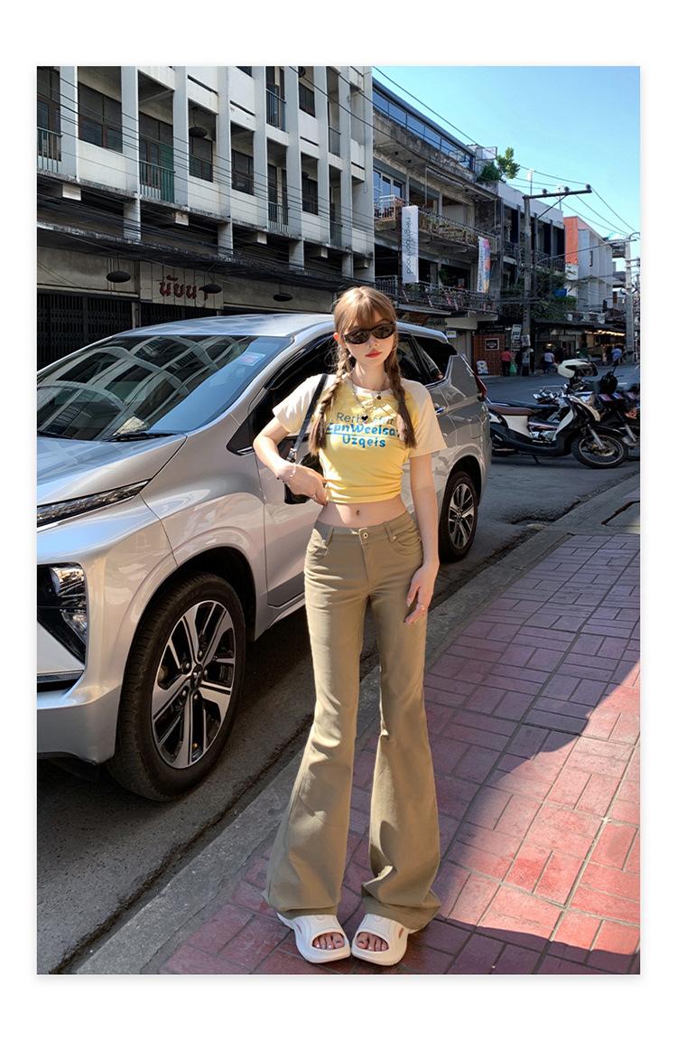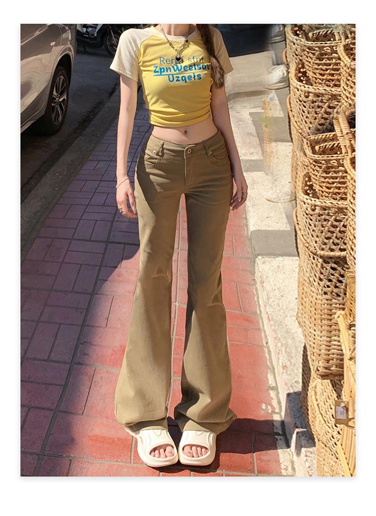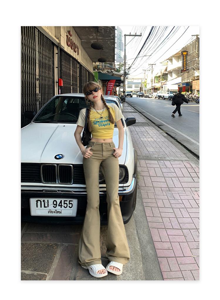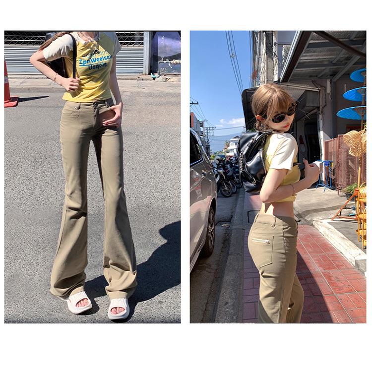YC & American Retro Pantalones Acampanados de Cintura Baja Spice Girl Ajustados para Mujer & Pantalones Largos