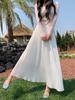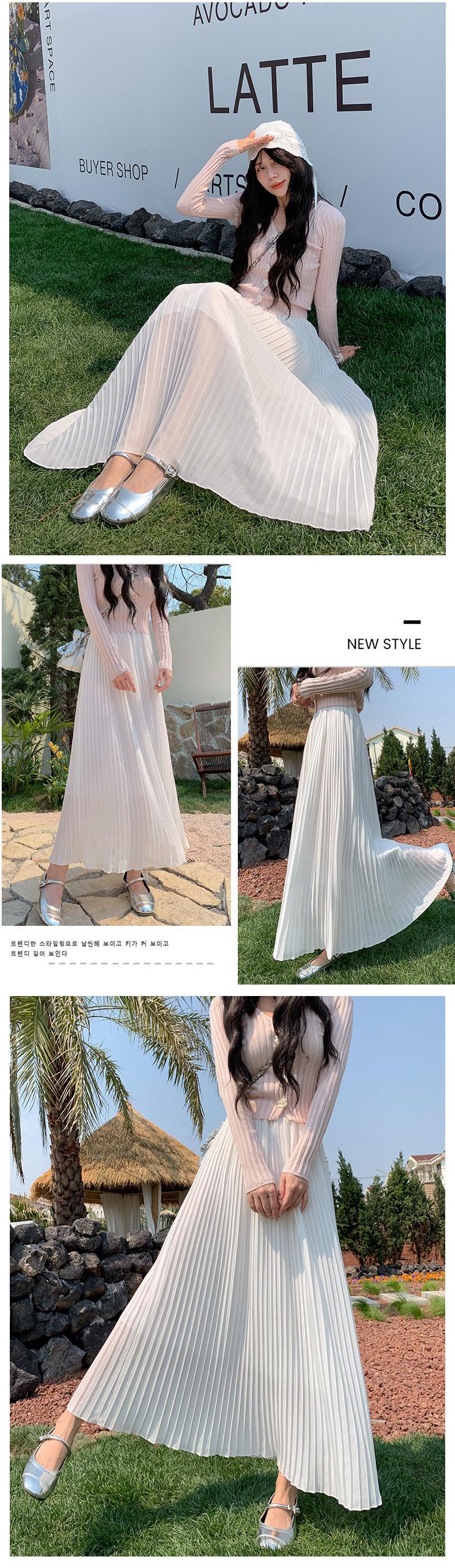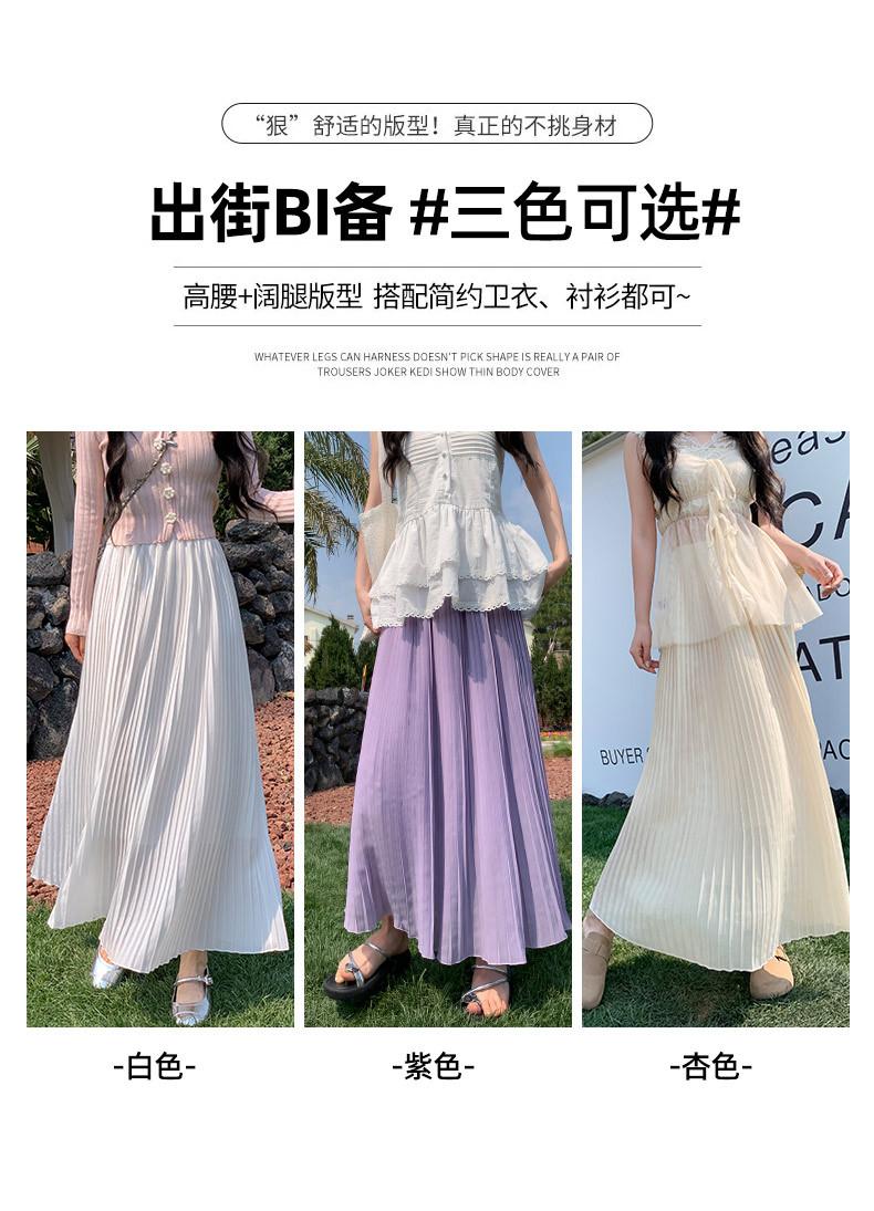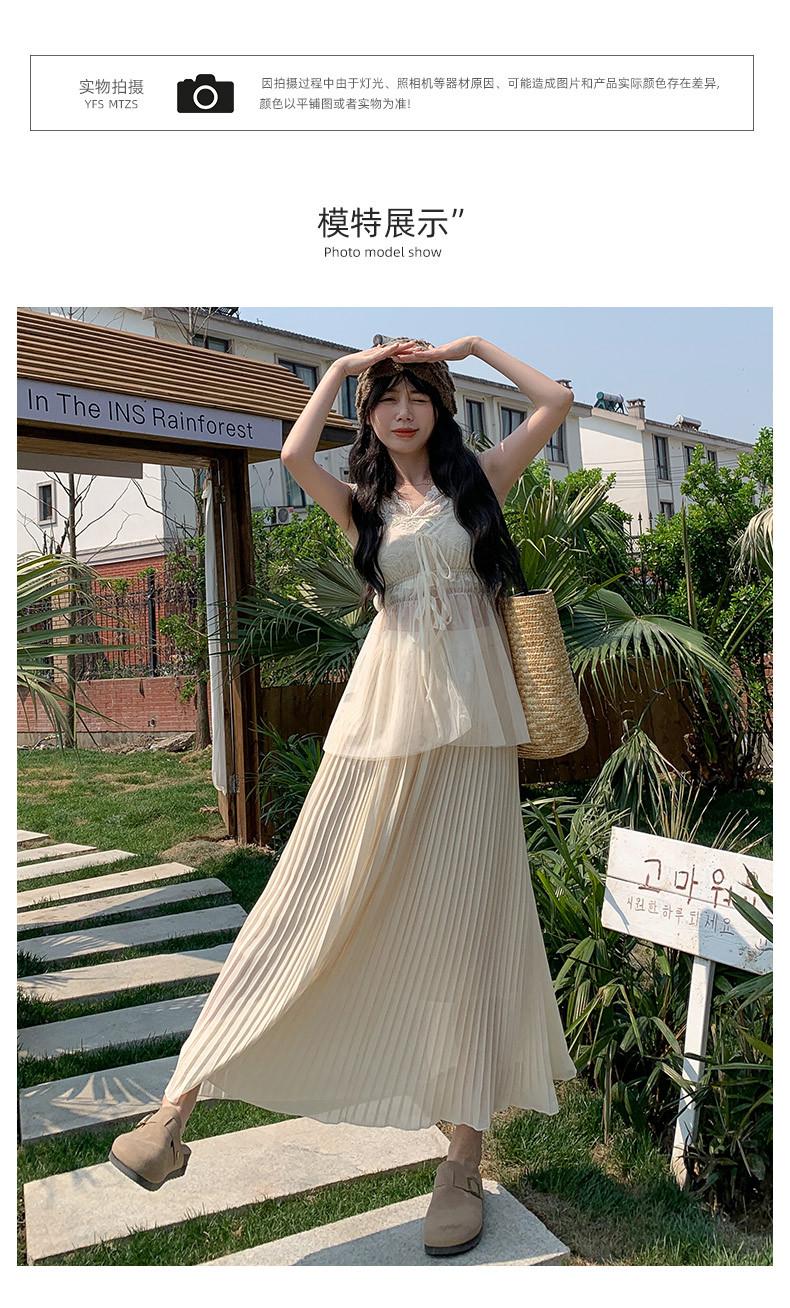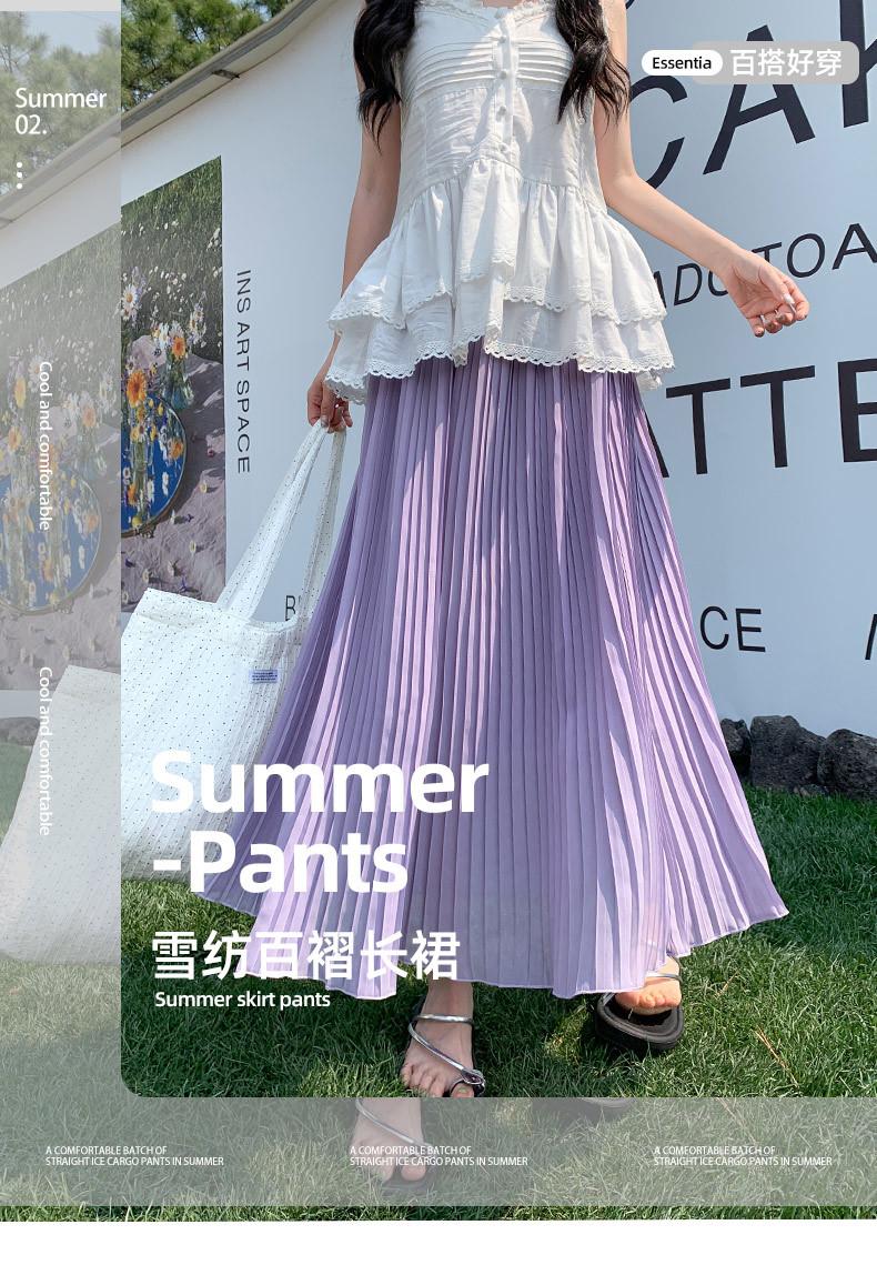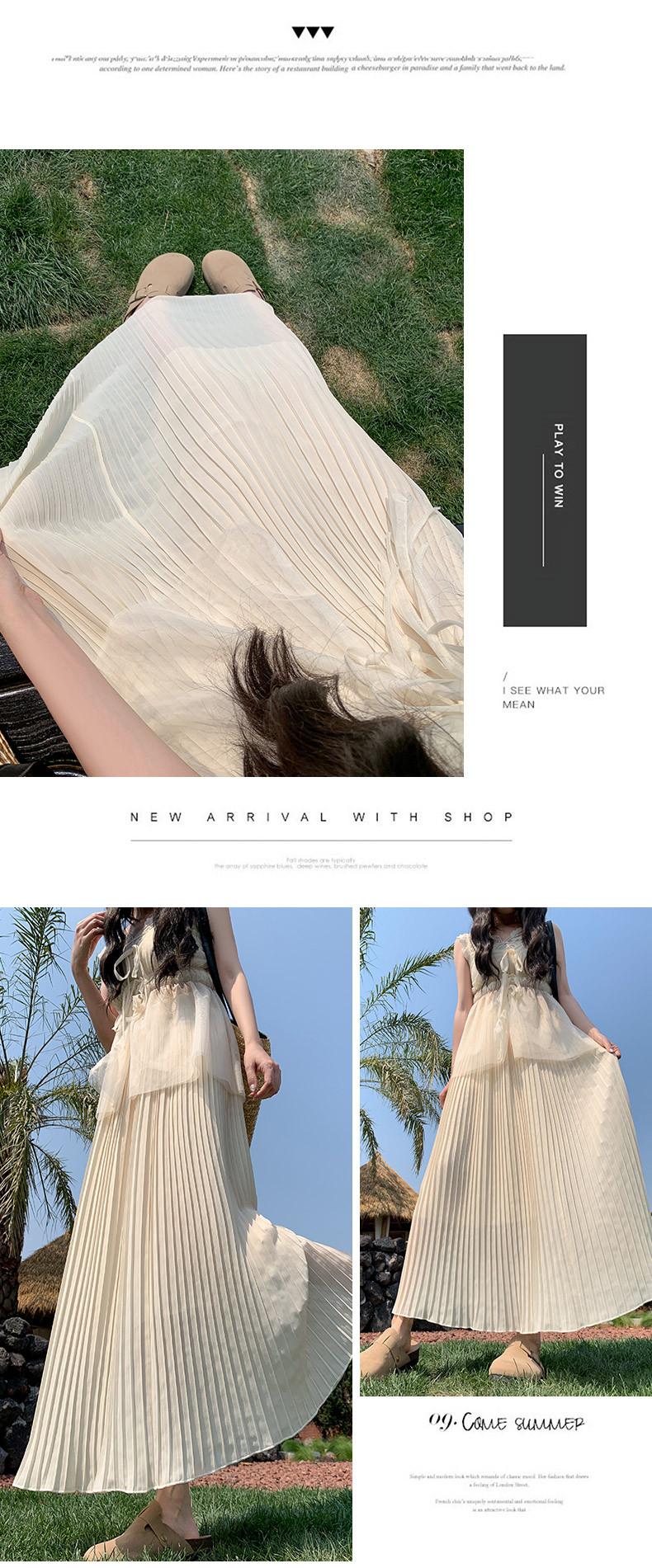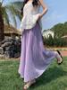 Falda de gasa albaricoque para mujer primavera y verano 2025 nueva cintura alta adelgazante línea A hada plisada vestido de pastel largo