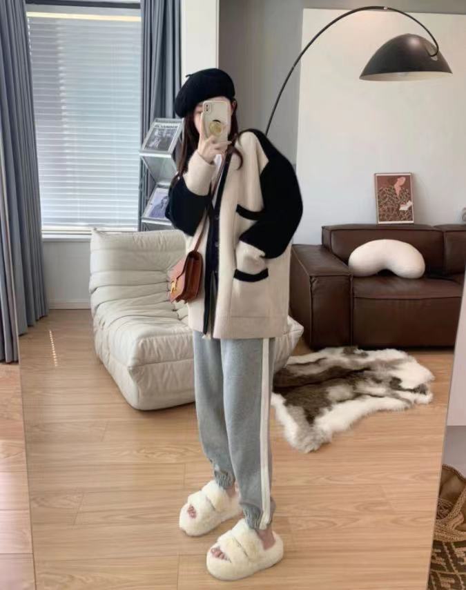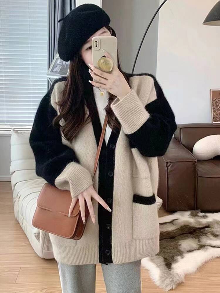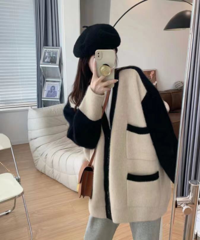 Suéter Nuevo Holgado Estilo Perezoso Cárdigan Tejido Abrigo de Alta Gama Elegante Socialité Mujer