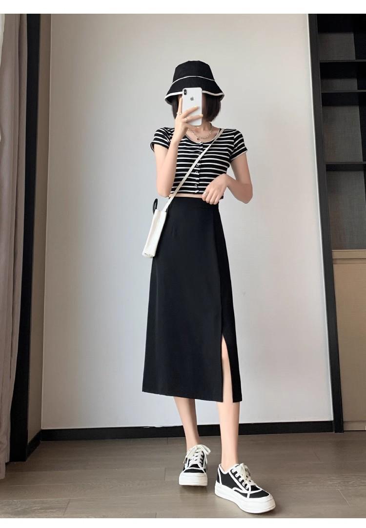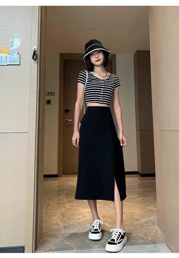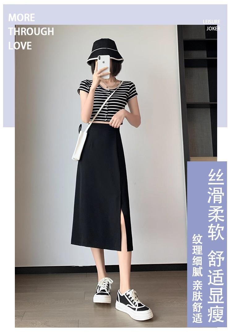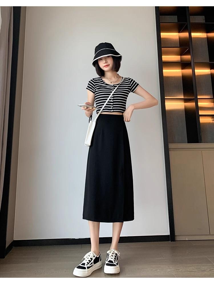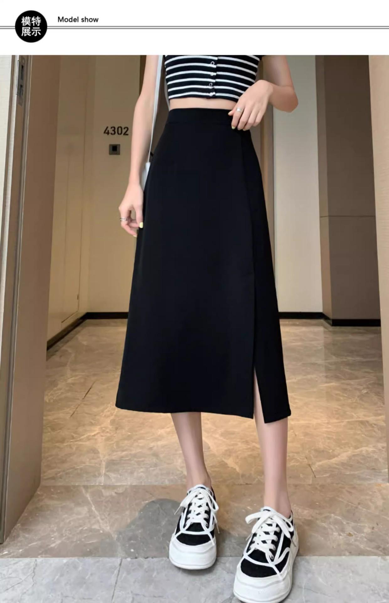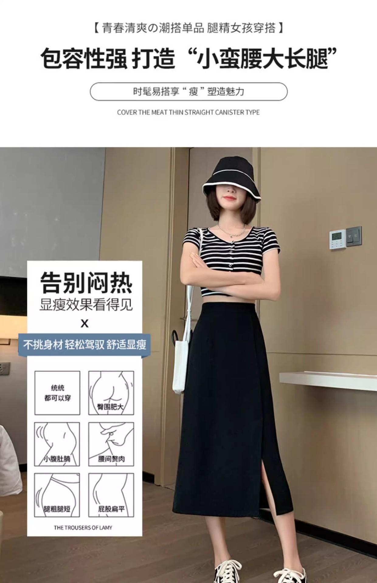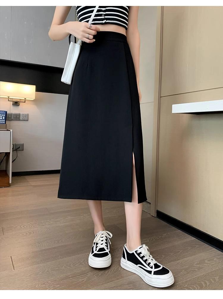 Falda de Traje Negro Nuevo 2025 para Mujer Primavera y Verano Petite Cintura Alta Línea A Slim Versátil Falda Midi