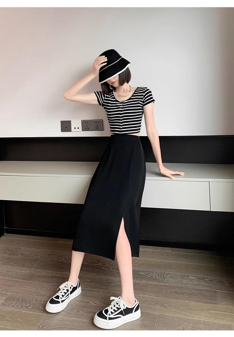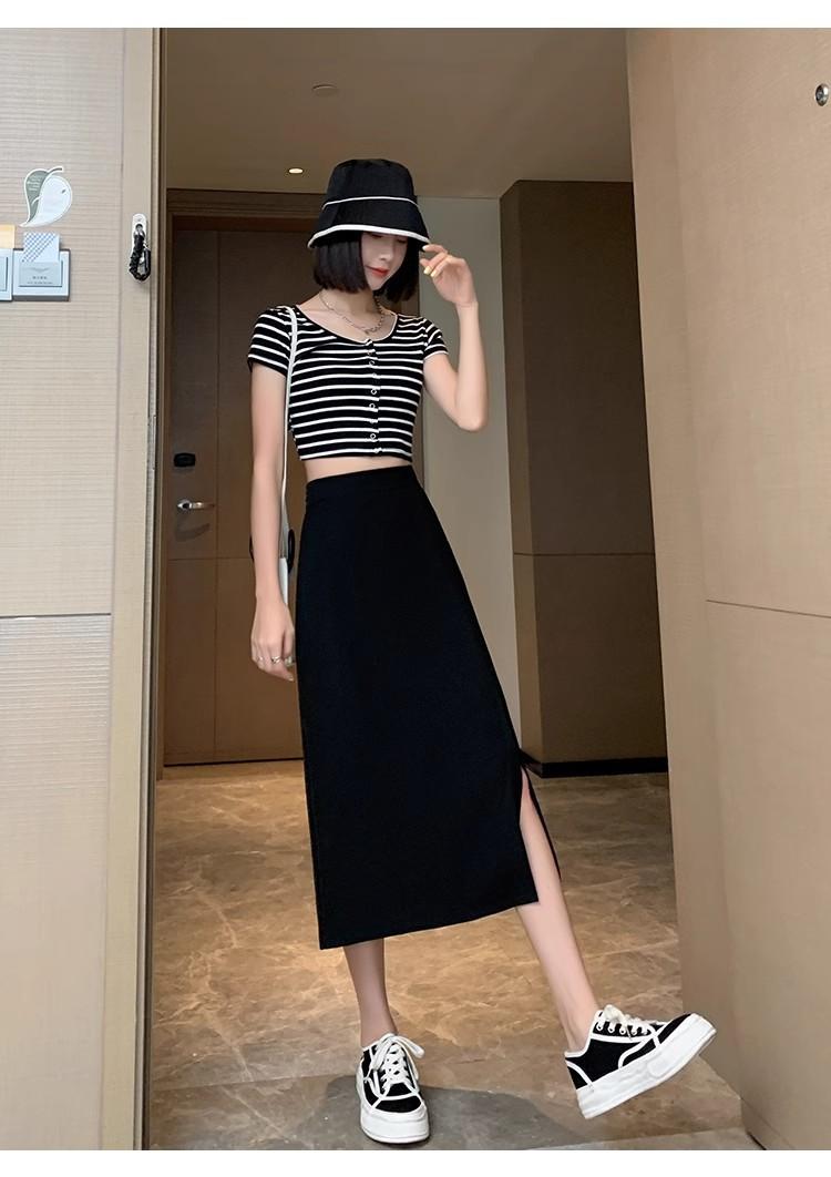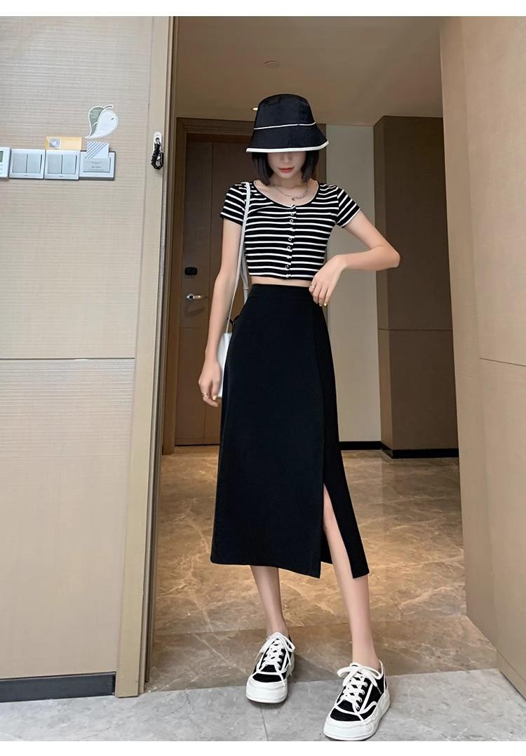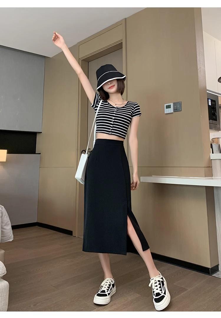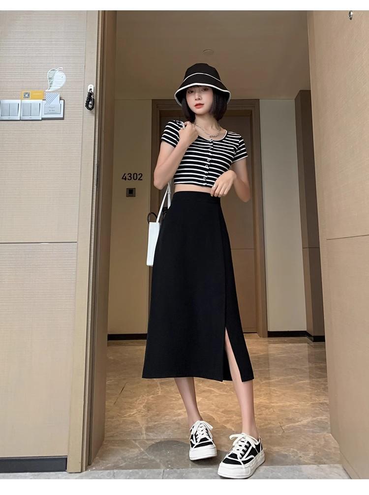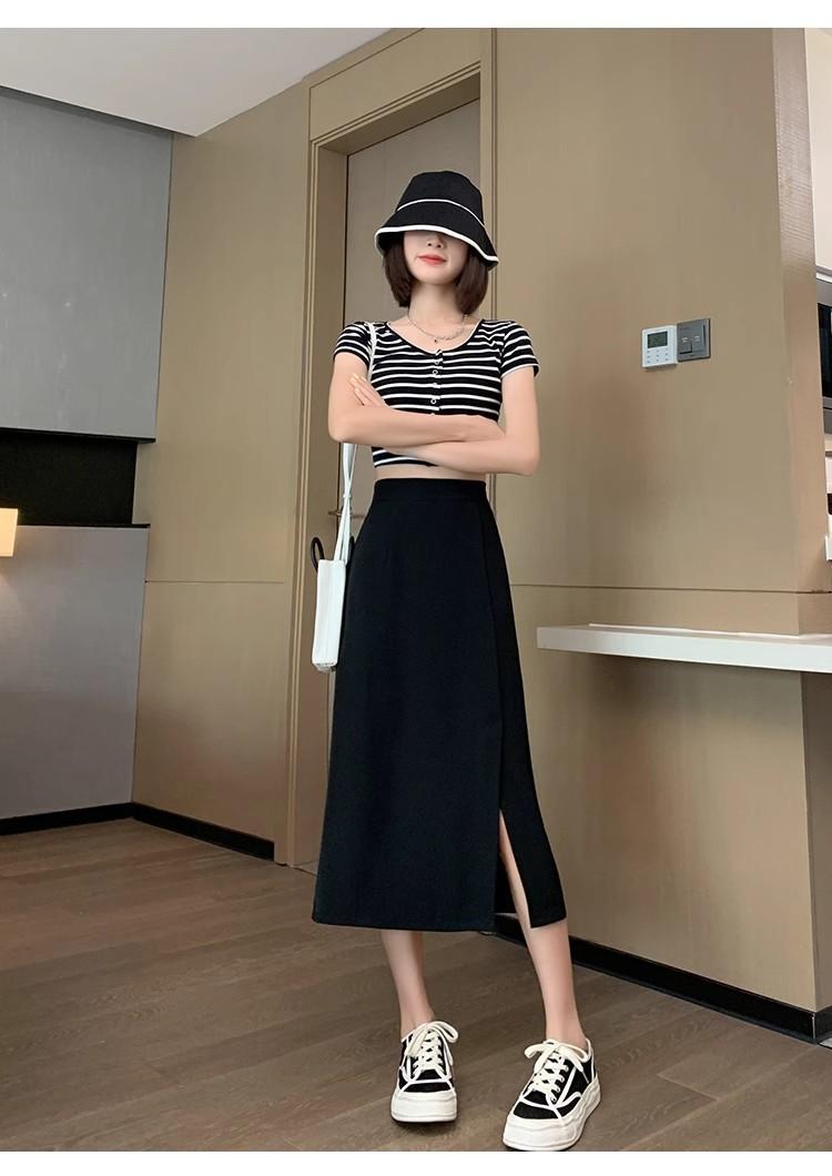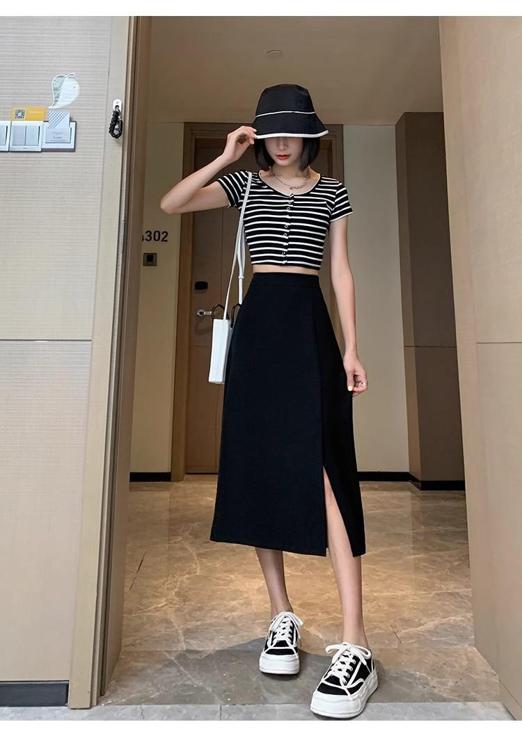 Falda de Traje Negro Nuevo 2025 para Mujer Primavera y Verano Petite Cintura Alta Línea A Slim Versátil Falda Midi