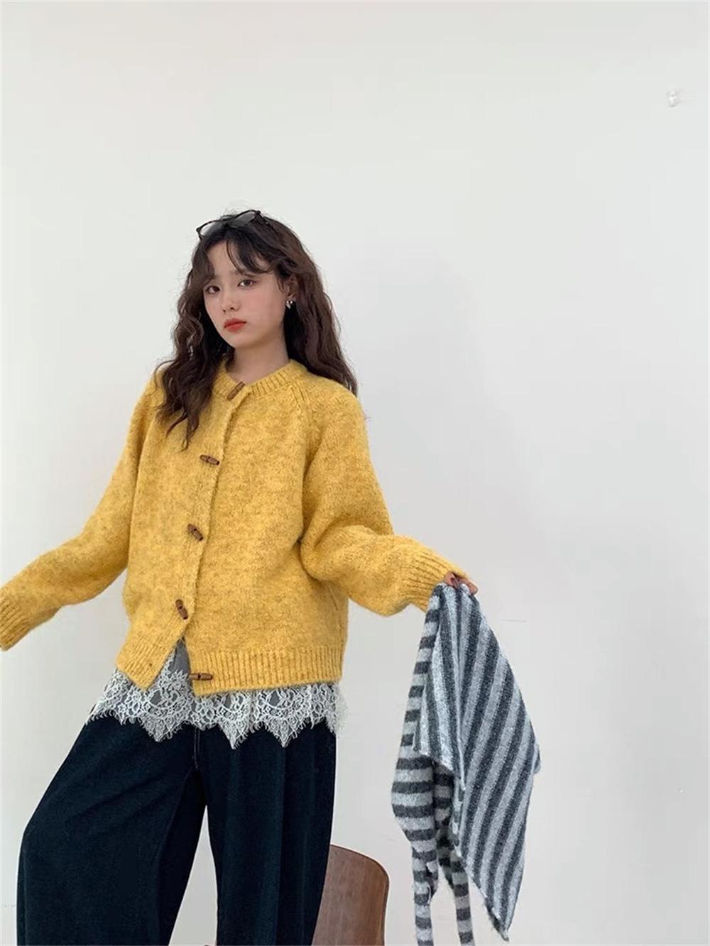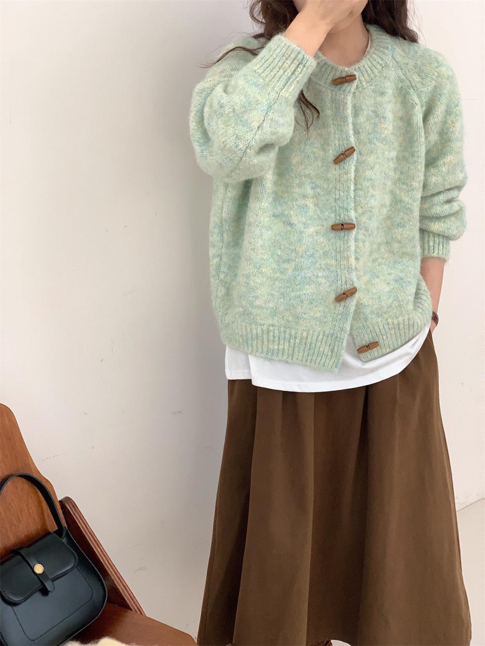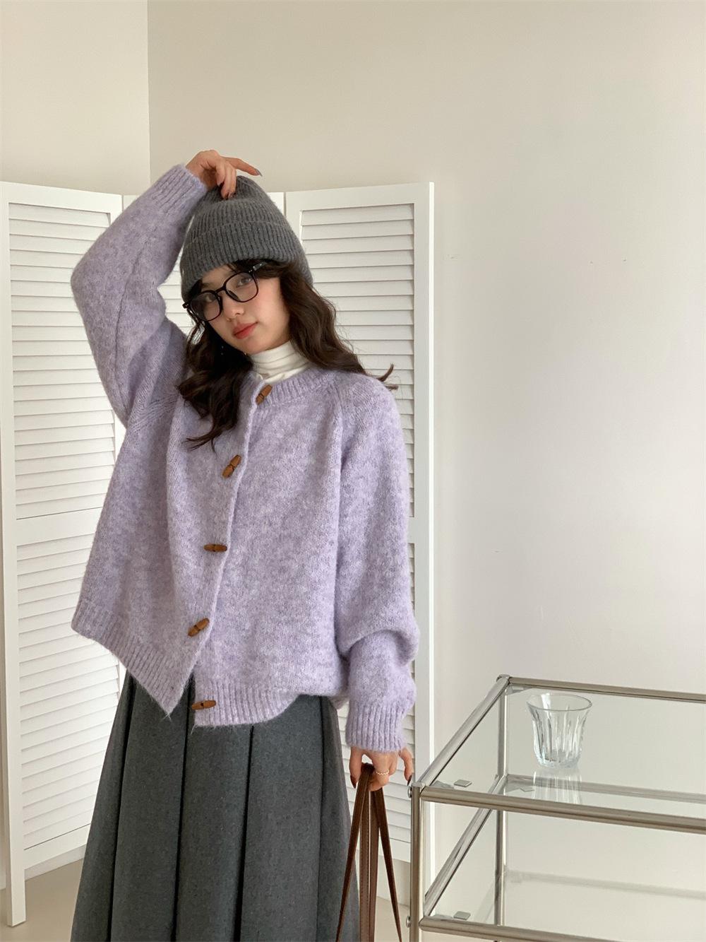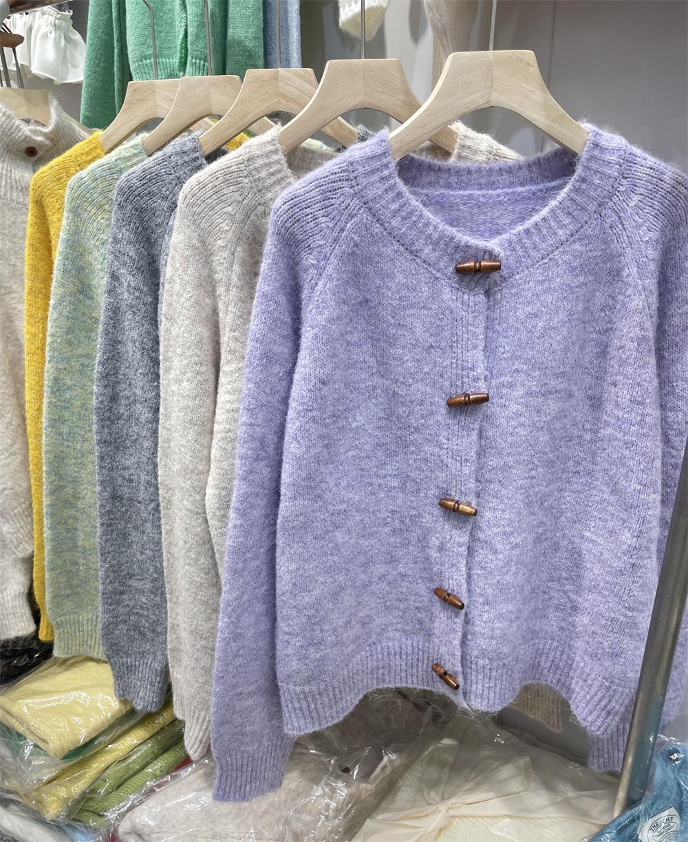 Suéter suave y ceroso de cuello redondo para mujer, chaqueta, otoño e invierno, nuevo, estilo holgado y perezoso, aspecto adelgazante, elegante, exterior, tejido, cárdigan, top