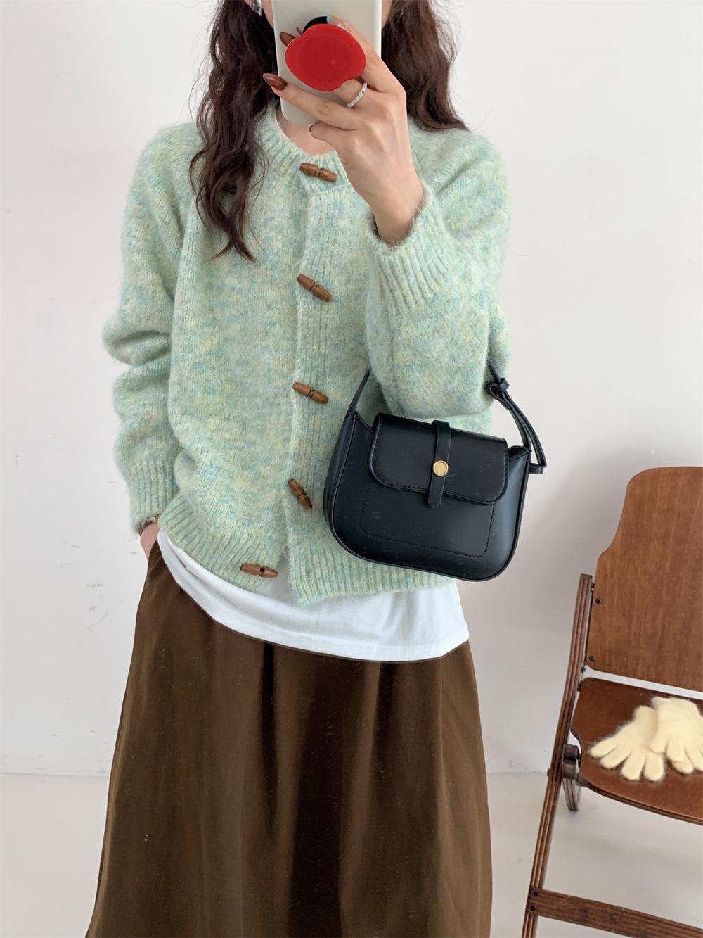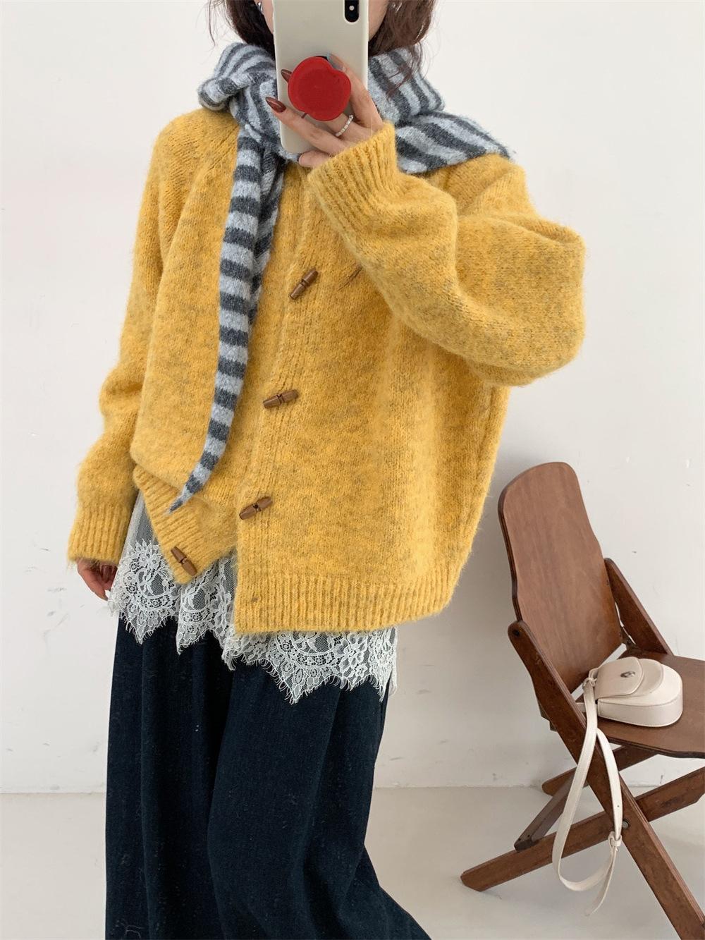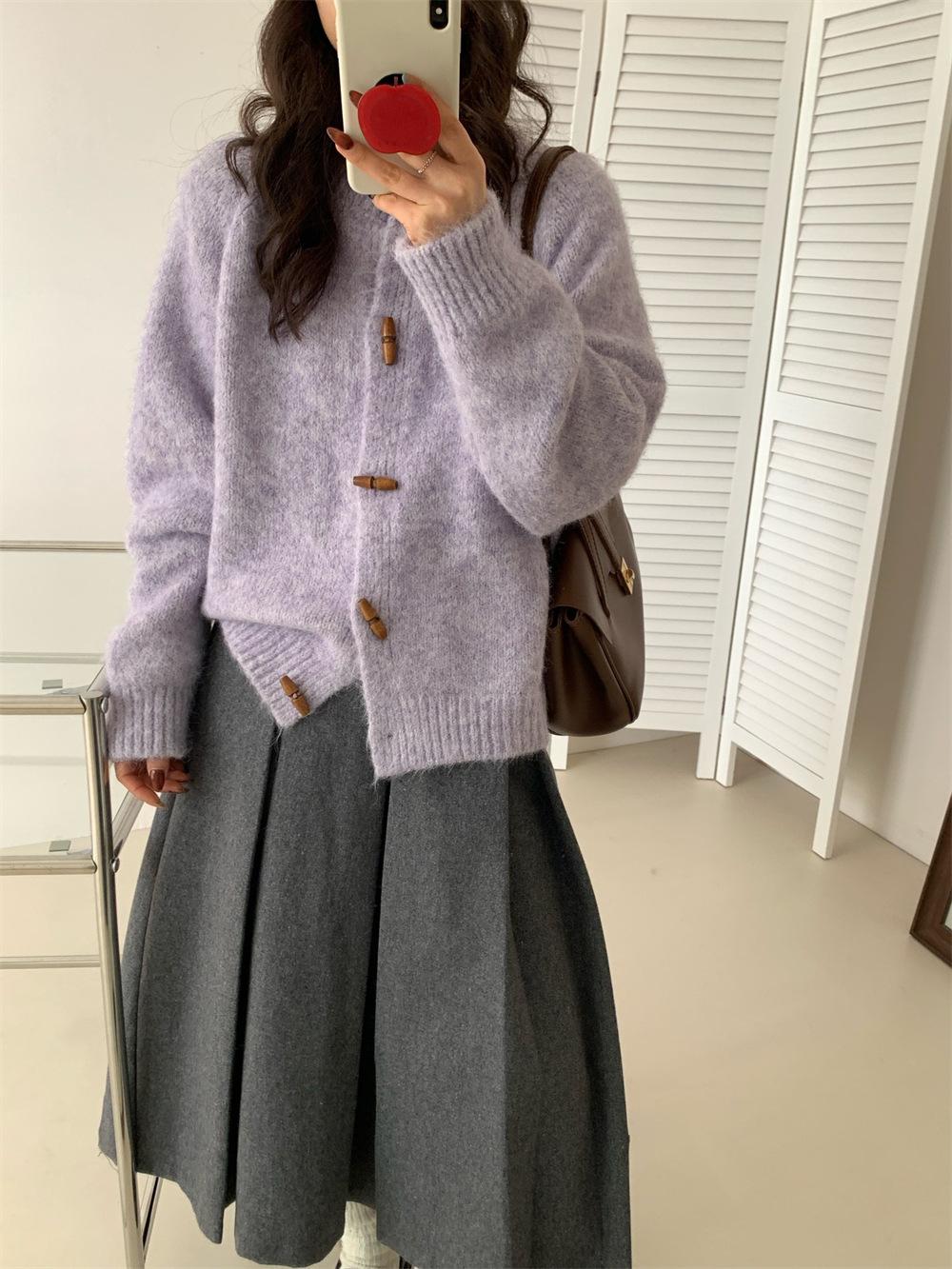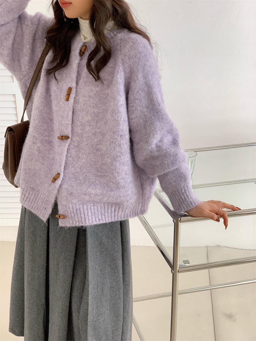Suéter suave y ceroso de cuello redondo para mujer, chaqueta, otoño e invierno, nuevo, estilo holgado y perezoso, aspecto adelgazante, elegante, exterior, tejido, cárdigan, top
