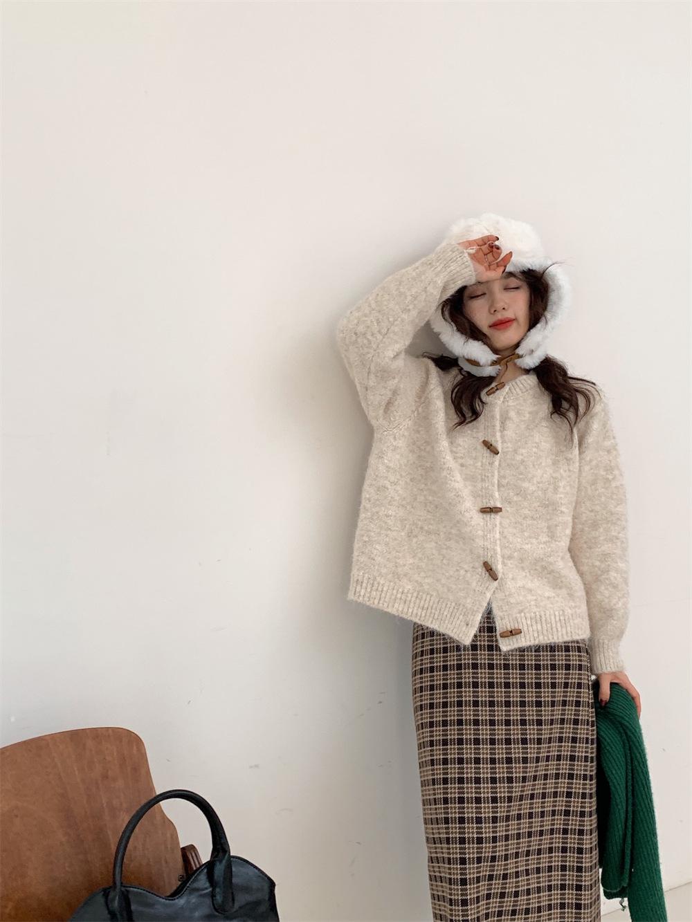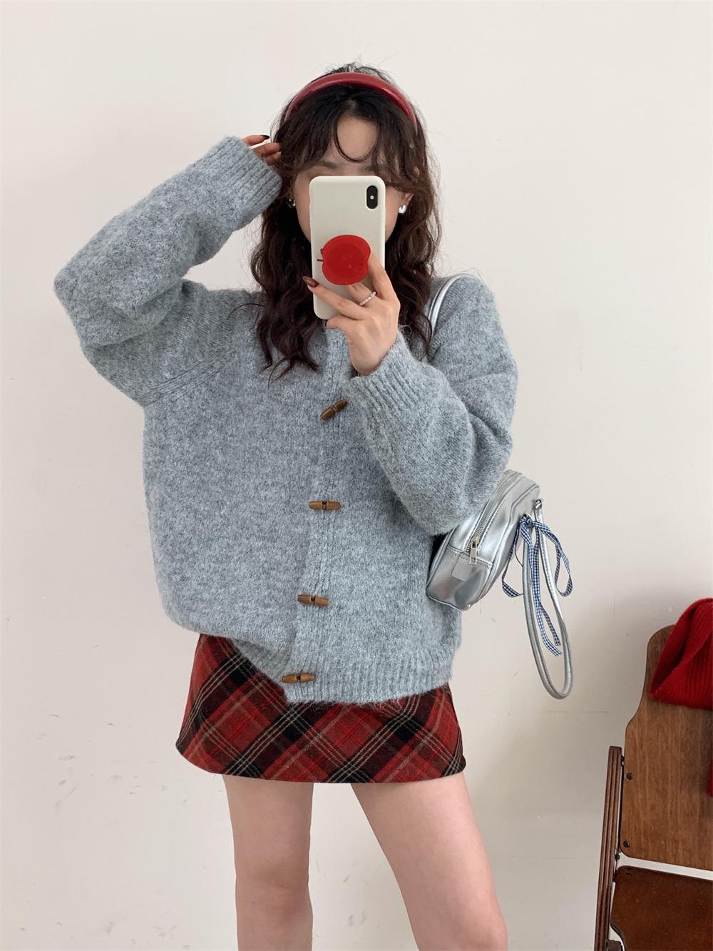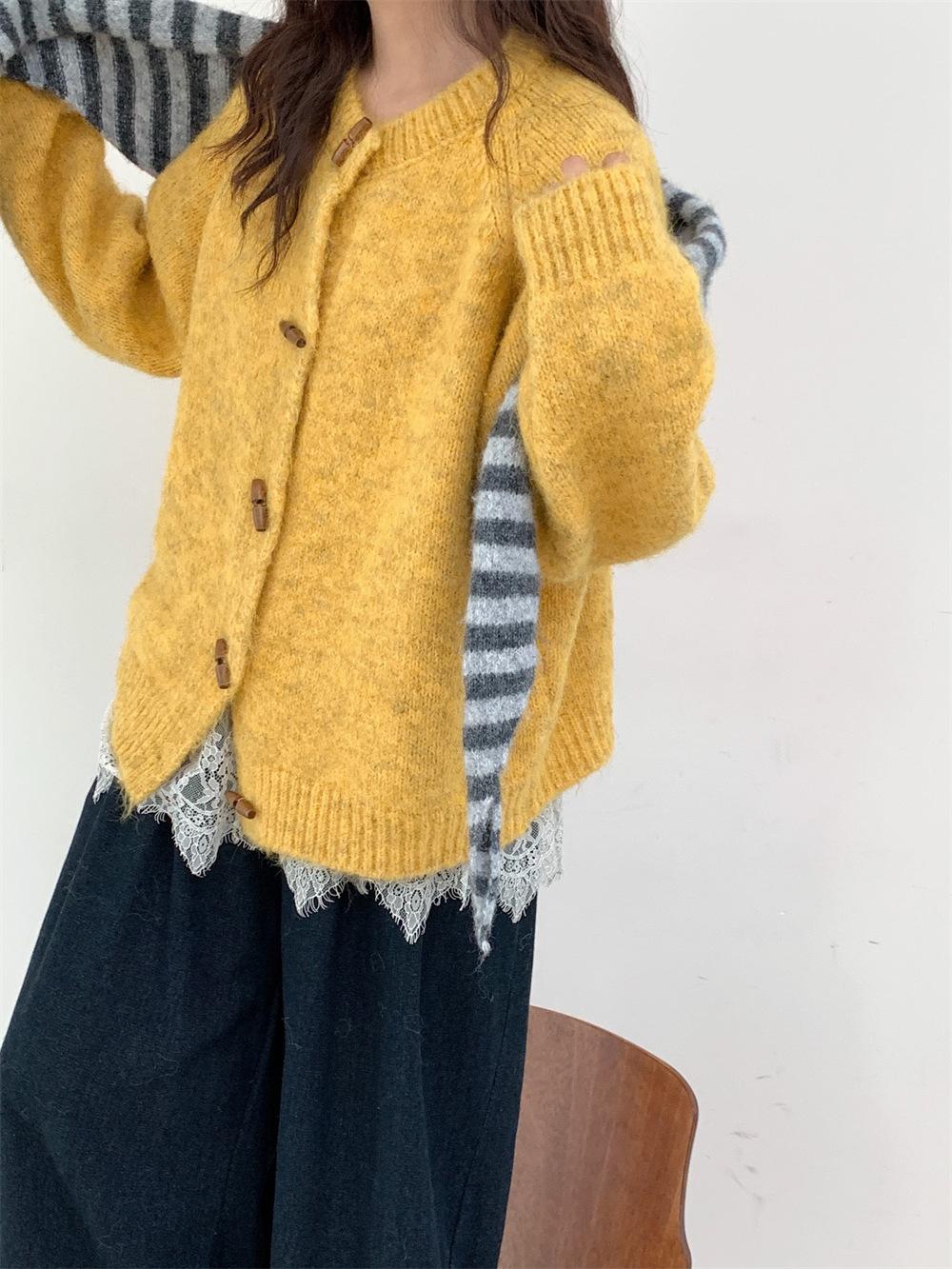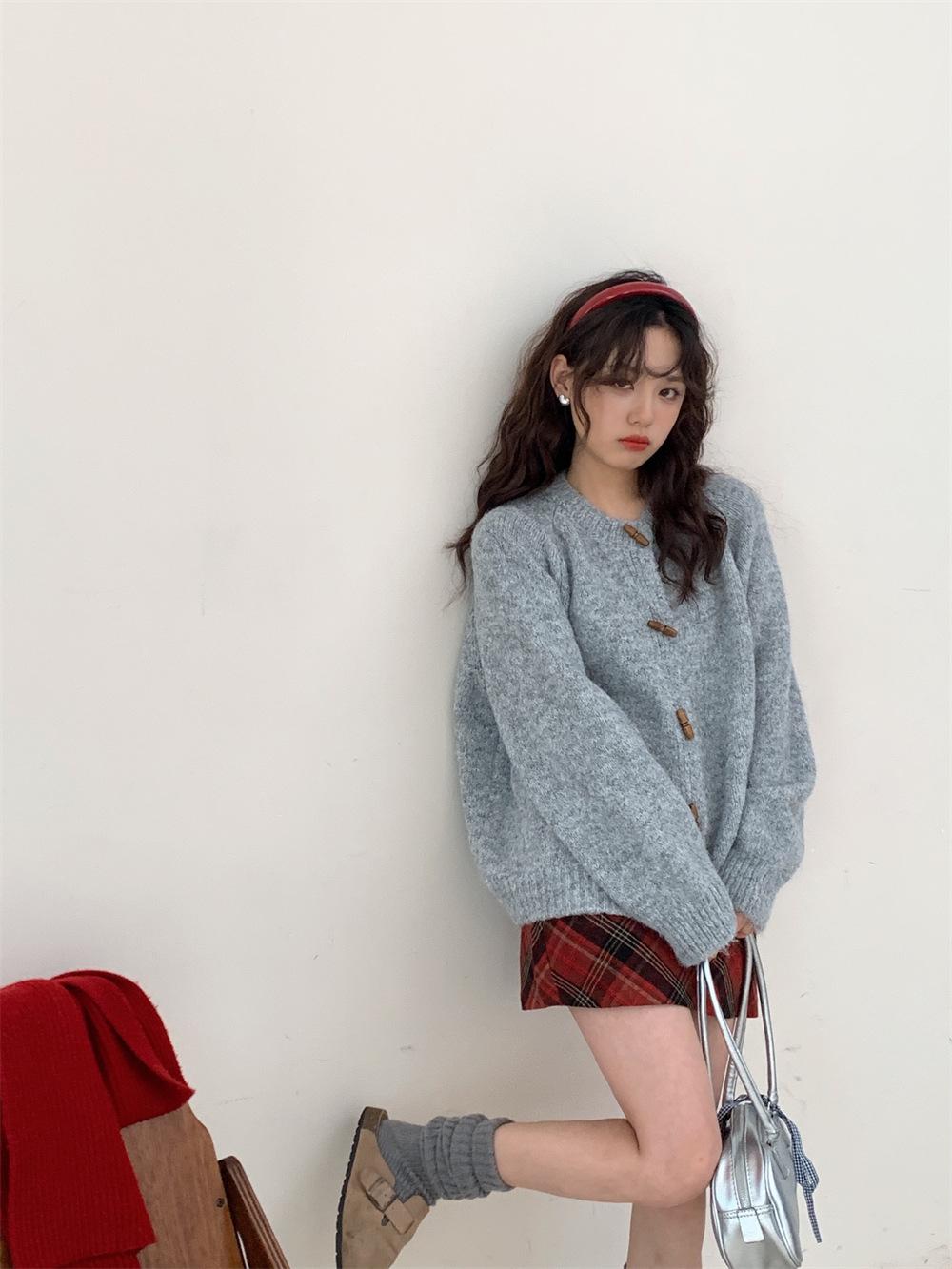 Suéter suave y ceroso de cuello redondo para mujer, chaqueta, otoño e invierno, nuevo, estilo holgado y perezoso, aspecto adelgazante, elegante, exterior, tejido, cárdigan, top