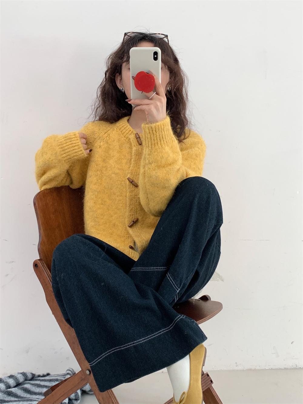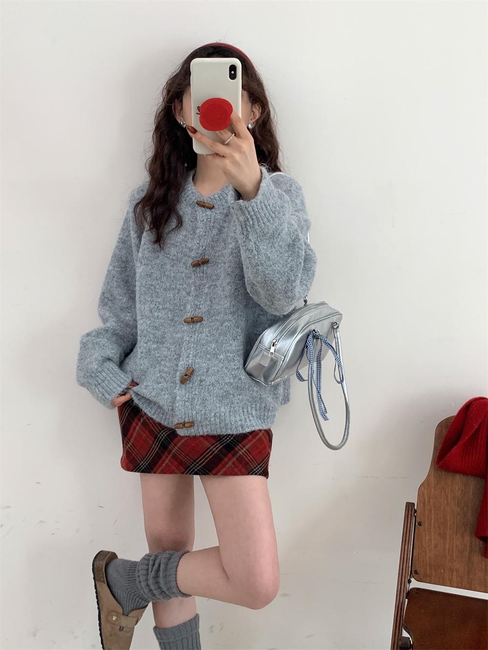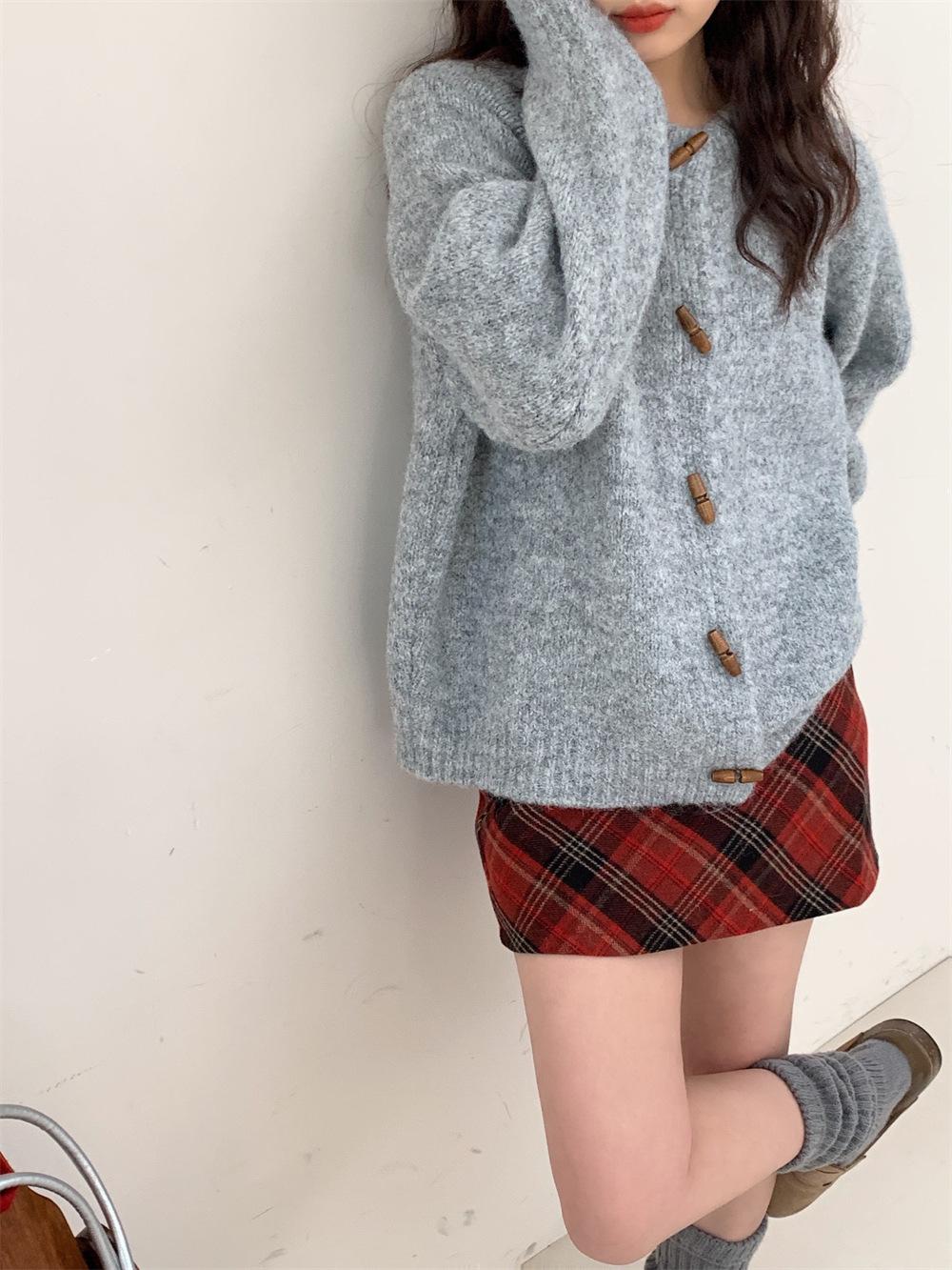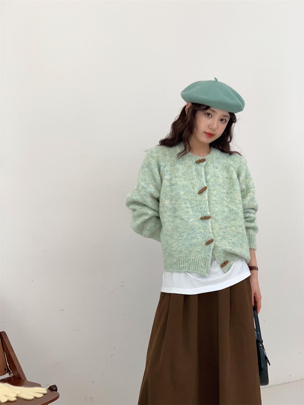 Suéter suave y ceroso de cuello redondo para mujer, chaqueta, otoño e invierno, nuevo, estilo holgado y perezoso, aspecto adelgazante, elegante, exterior, tejido, cárdigan, top