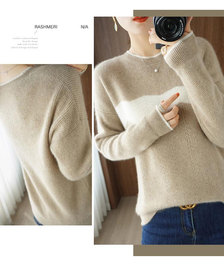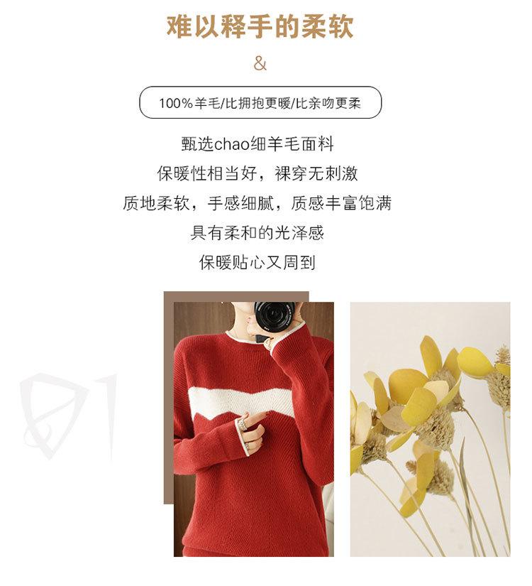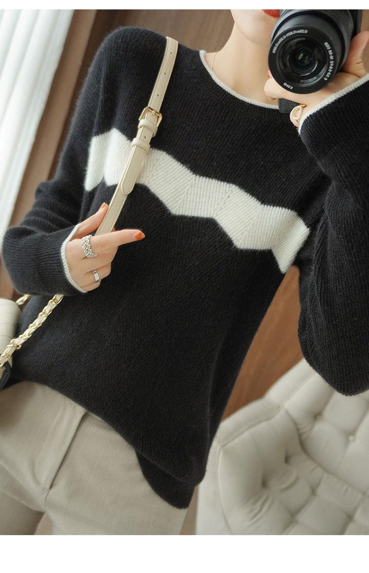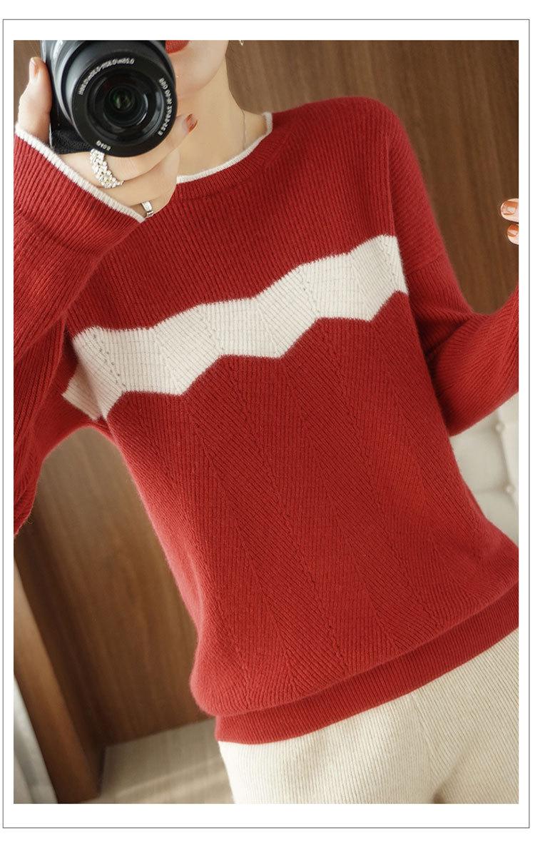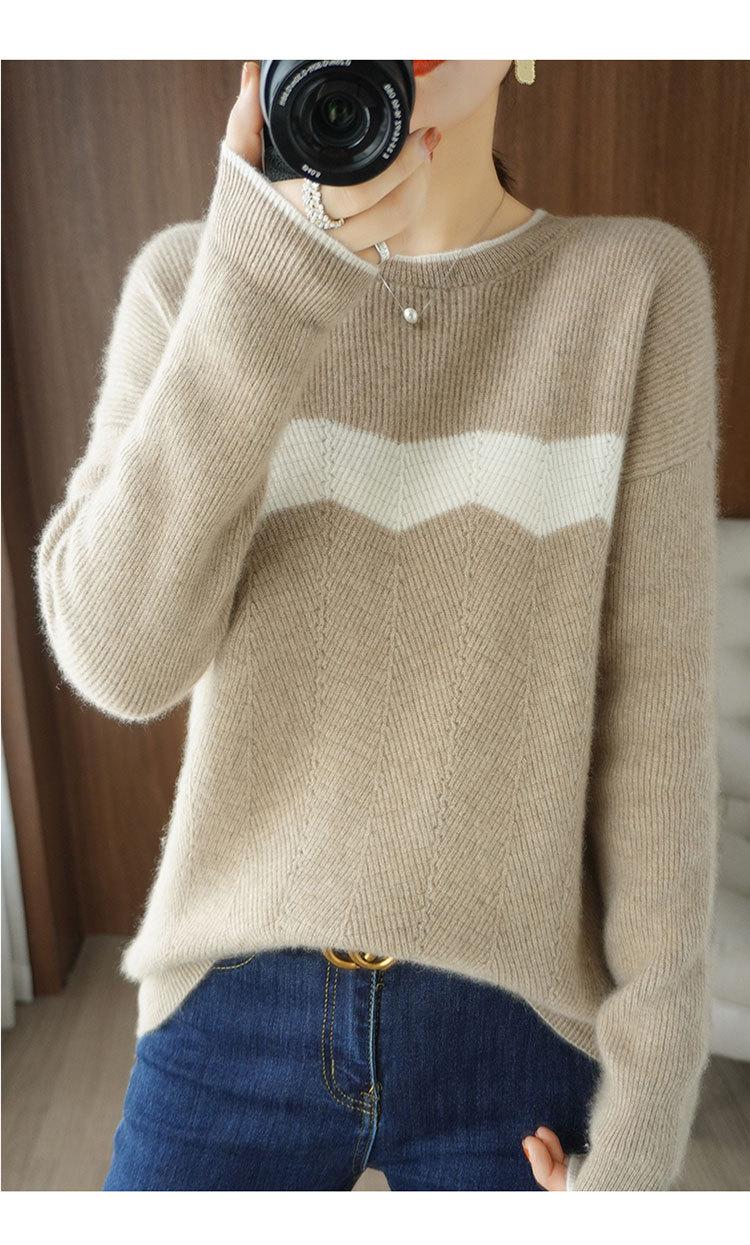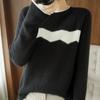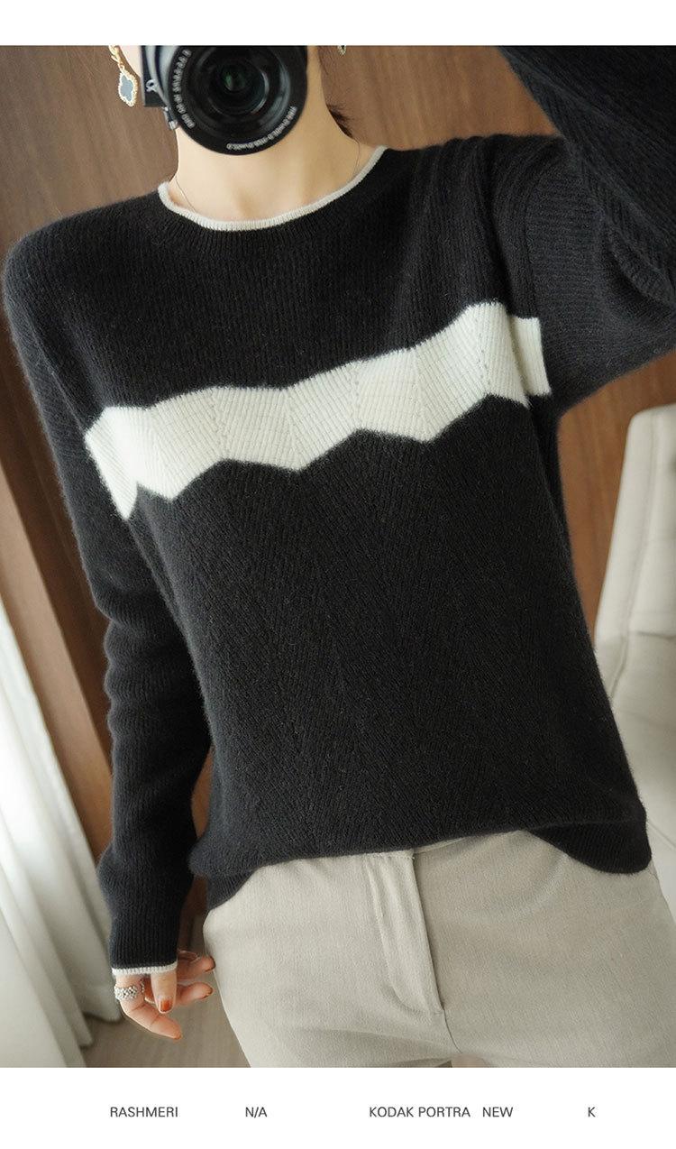 Otoño/invierno 2024 nuevo suéter de cuello redondo de lana pura versión coreana manga larga color combinado jersey moda suéter top