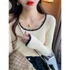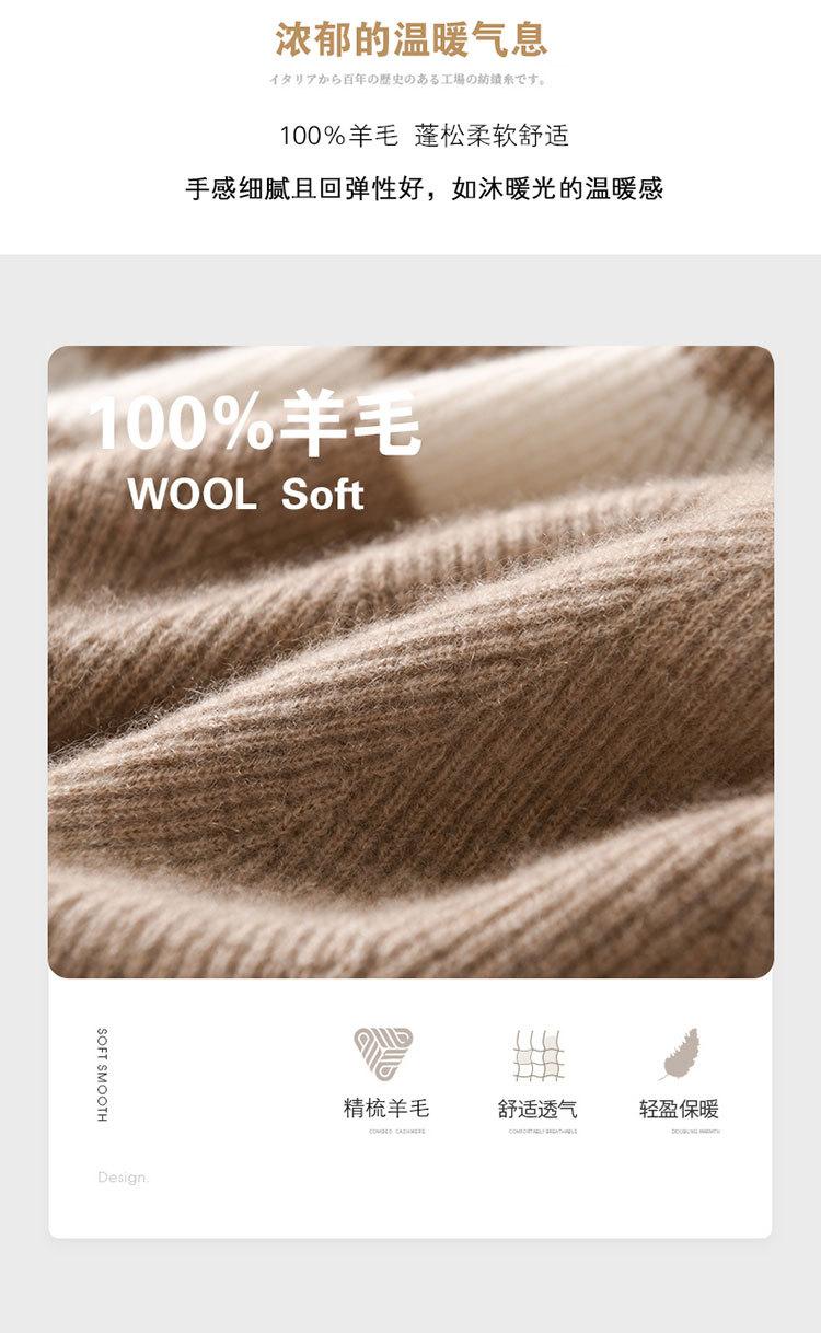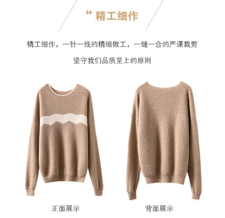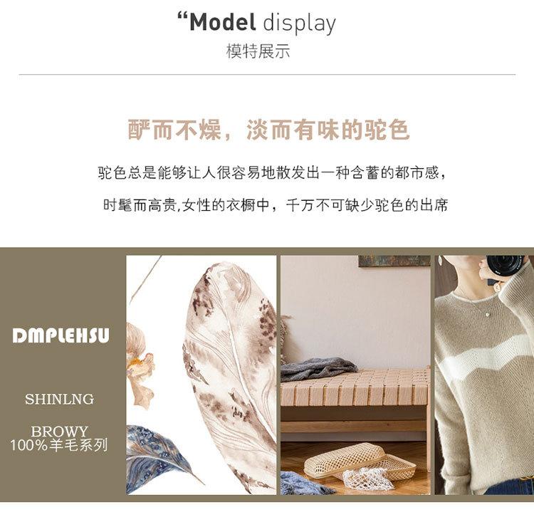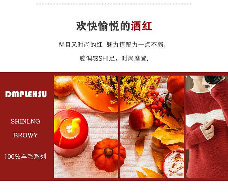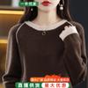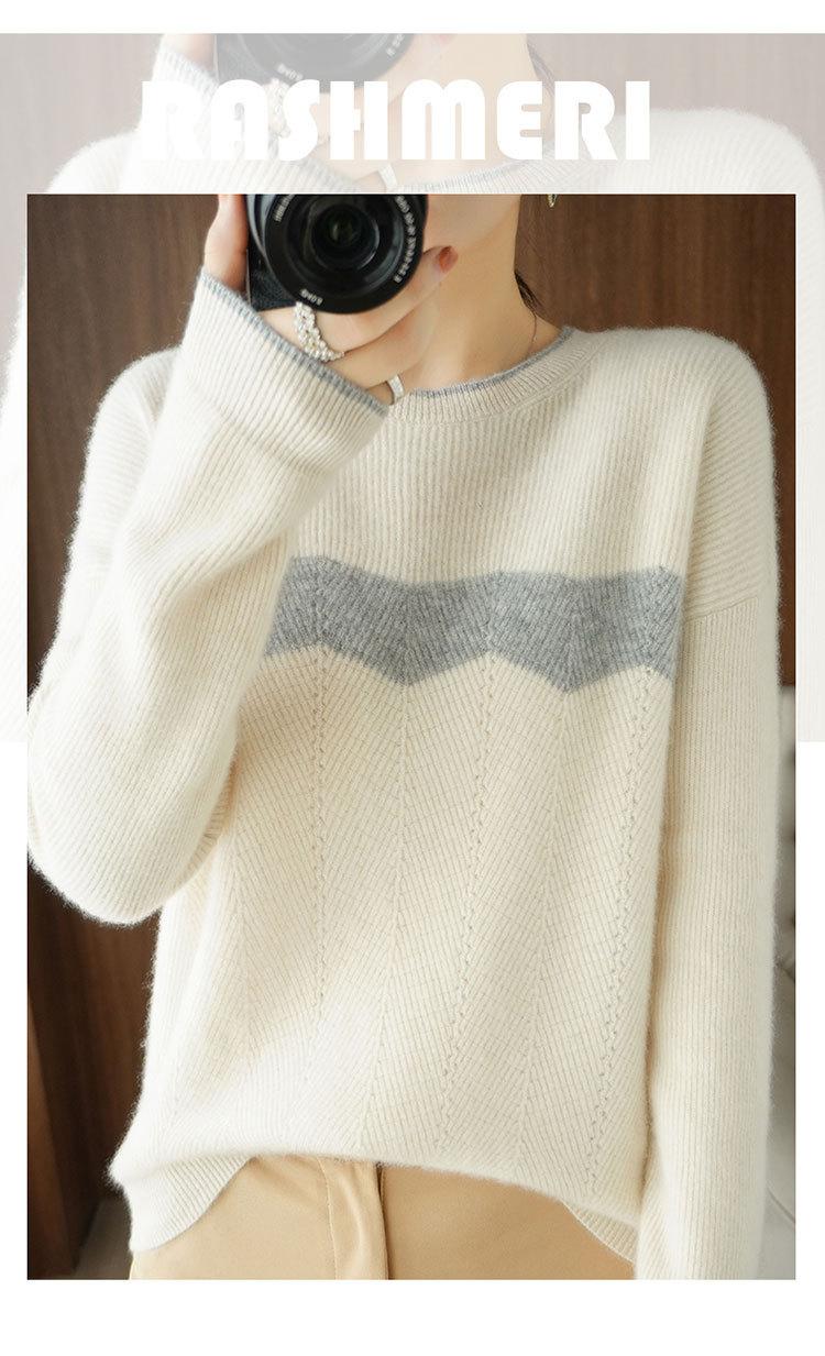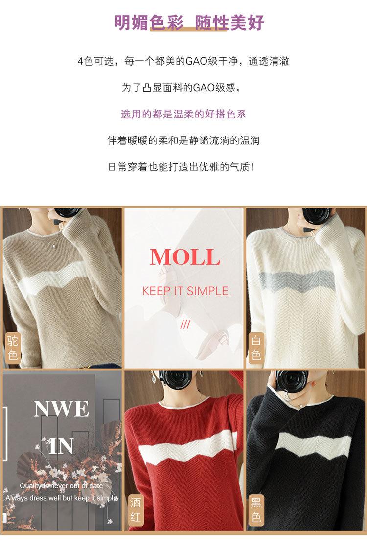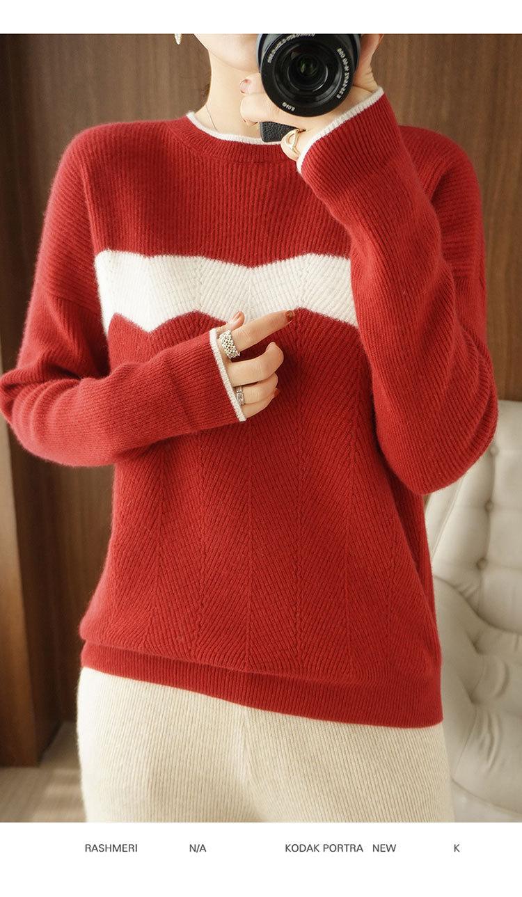 Otoño/invierno 2024 nuevo suéter de cuello redondo de lana pura versión coreana manga larga color combinado jersey moda suéter top