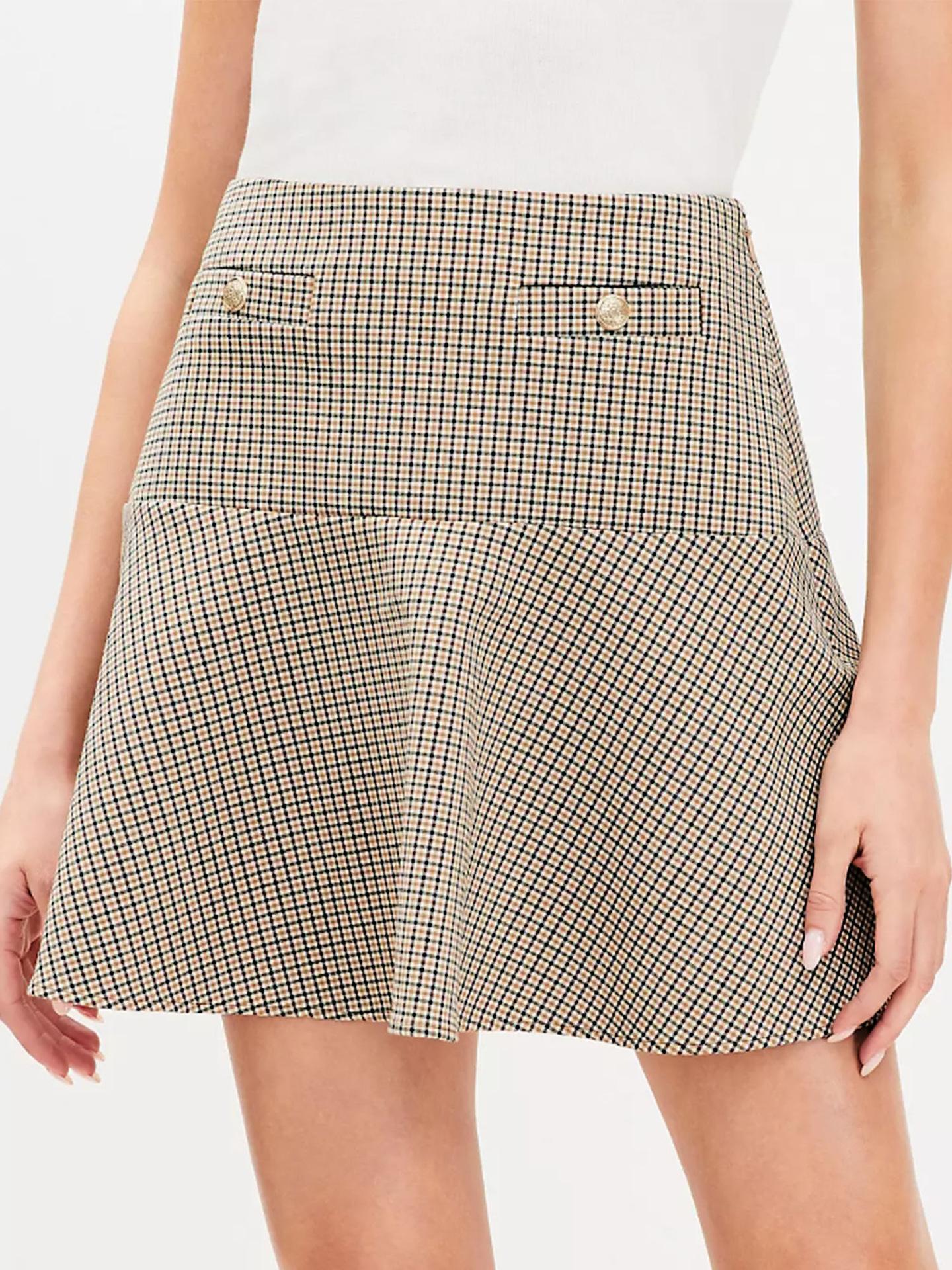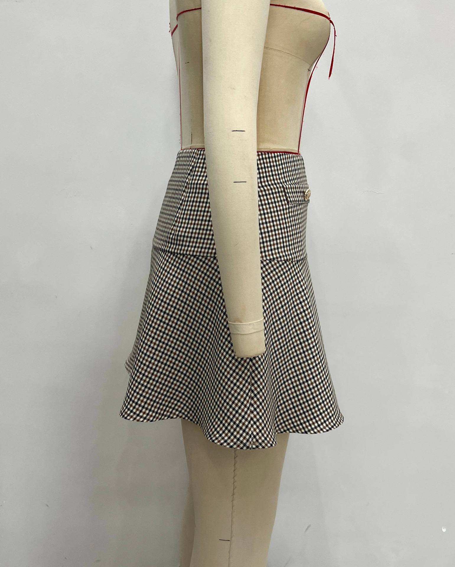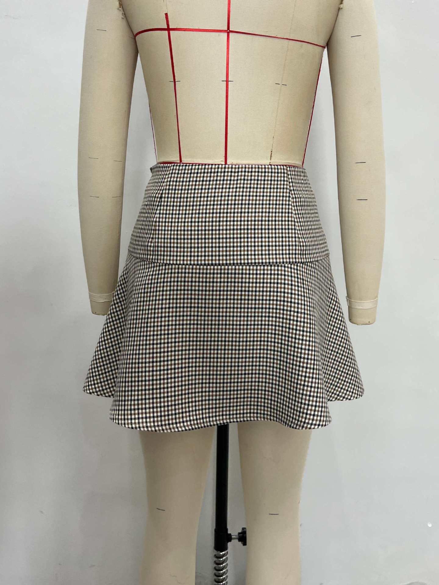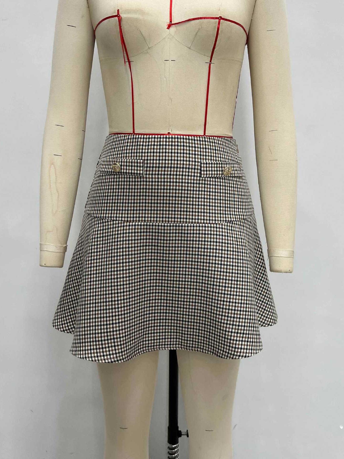 Comercio Exterior 2025 Otoño Europeo y Americano Nuevo Cintura Alta Empalmada Línea A Cuadros Moda Elegante Versátil Falda