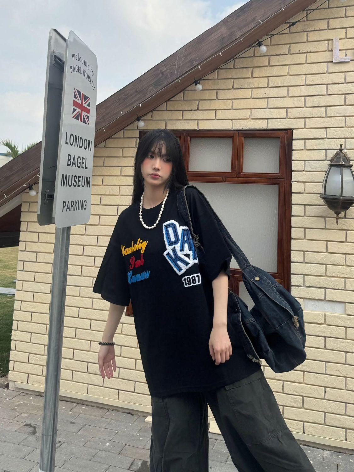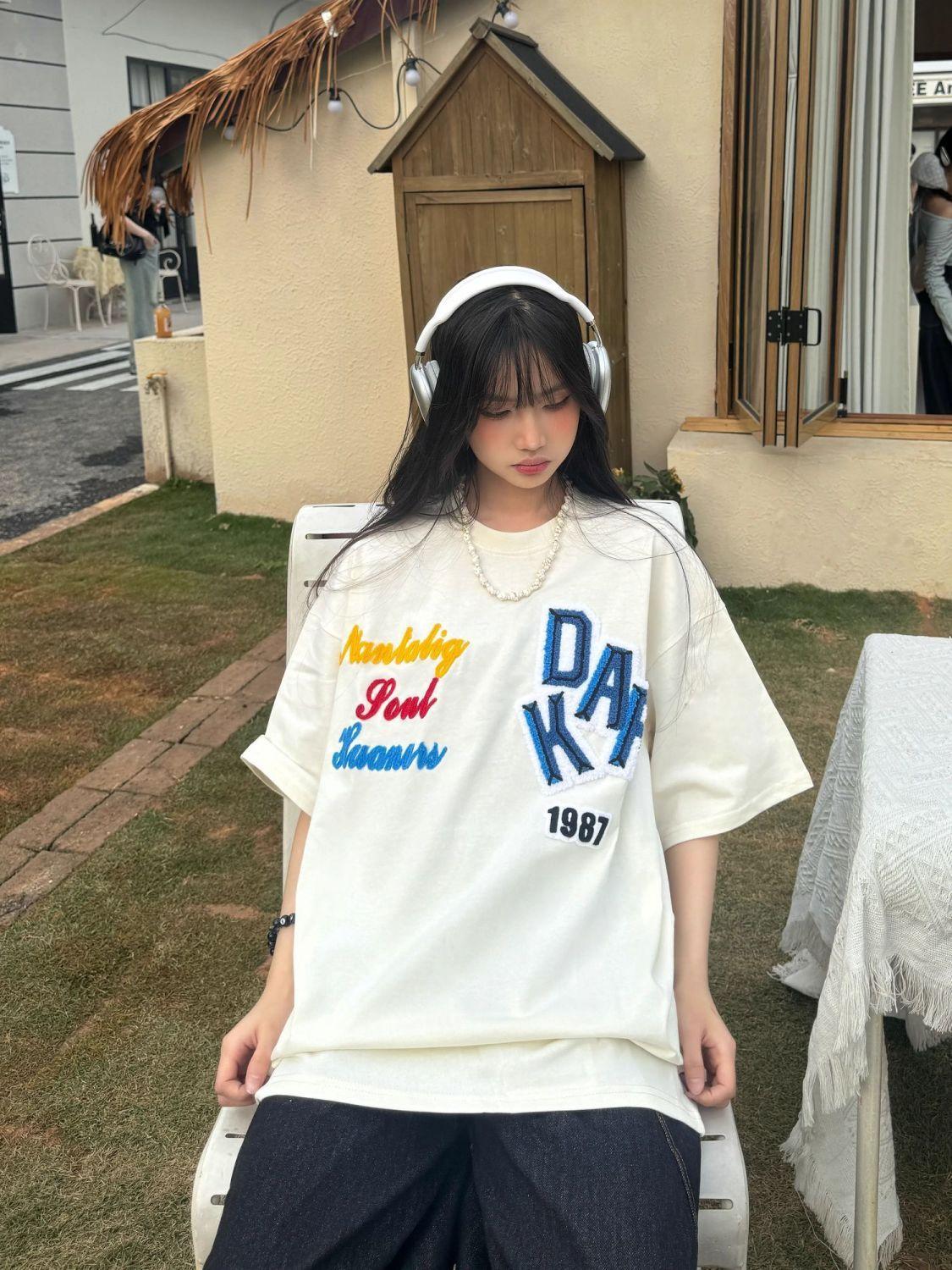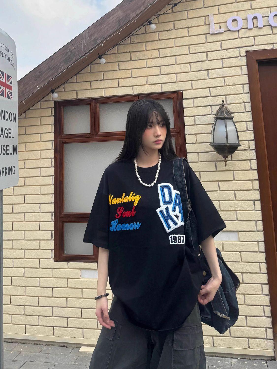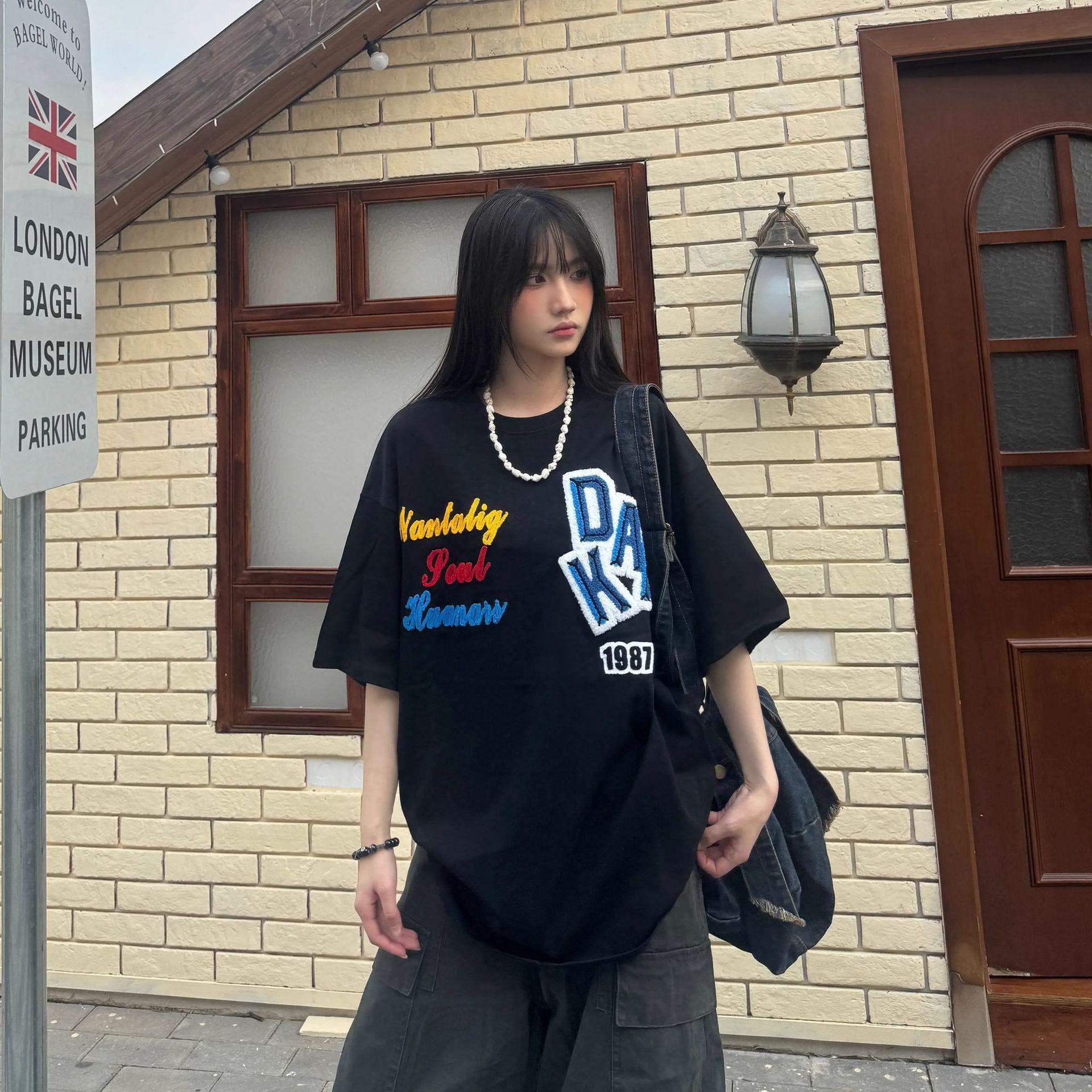 Playera Casual de Nuevo Diseño 2025 para Hombre y Mujer Algodón Pesado Estilo Americano High Street Bordada Manga Corta Nueva Holgada