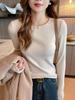 Nueva Camiseta de Capa Base de Cuello Redondo Acanalada para Mujer Otoño/Invierno, Estilo Básico Versátil, Se Puede Usar como Ropa Interior o Exterior, Top de Manga Larga
