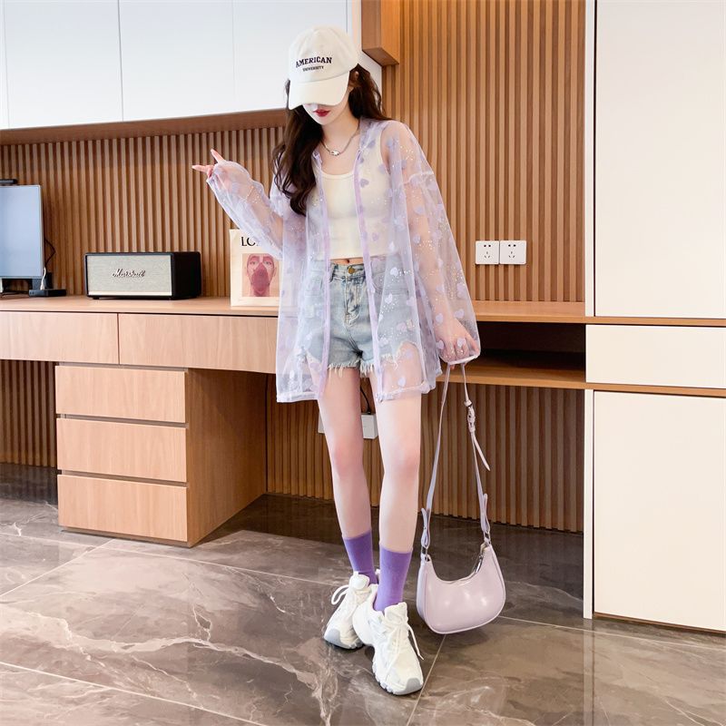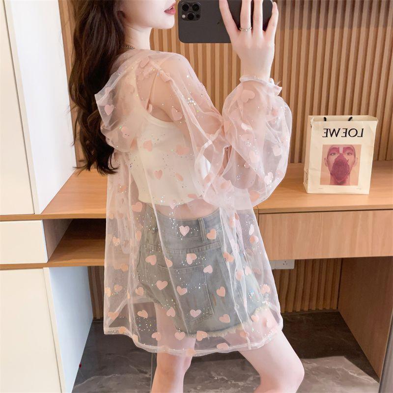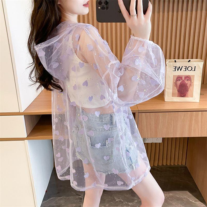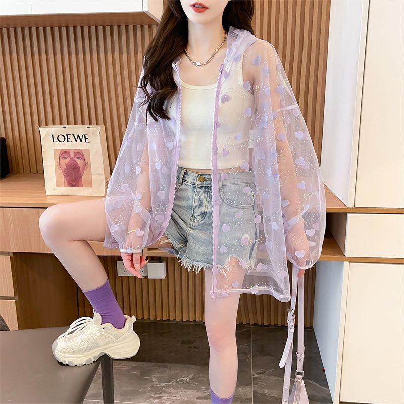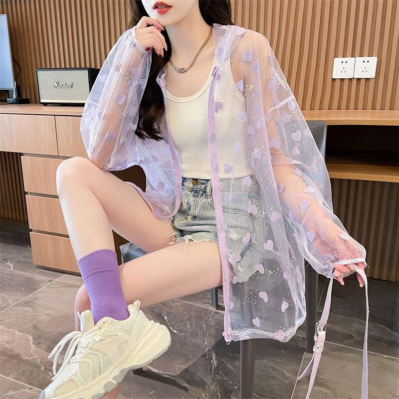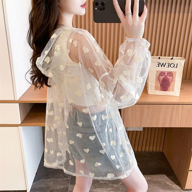 Chaqueta de Verano Casual Versátil con Capucha para Protección Solar para Mujer 2025 Nuevo Estilo Coreano Diseño Holgado Cárdigan Top con Aberturas