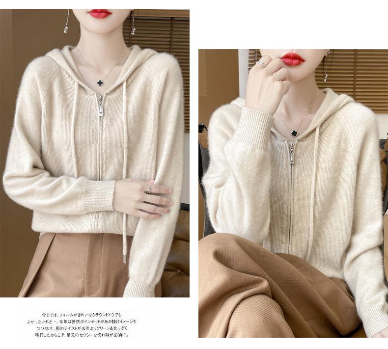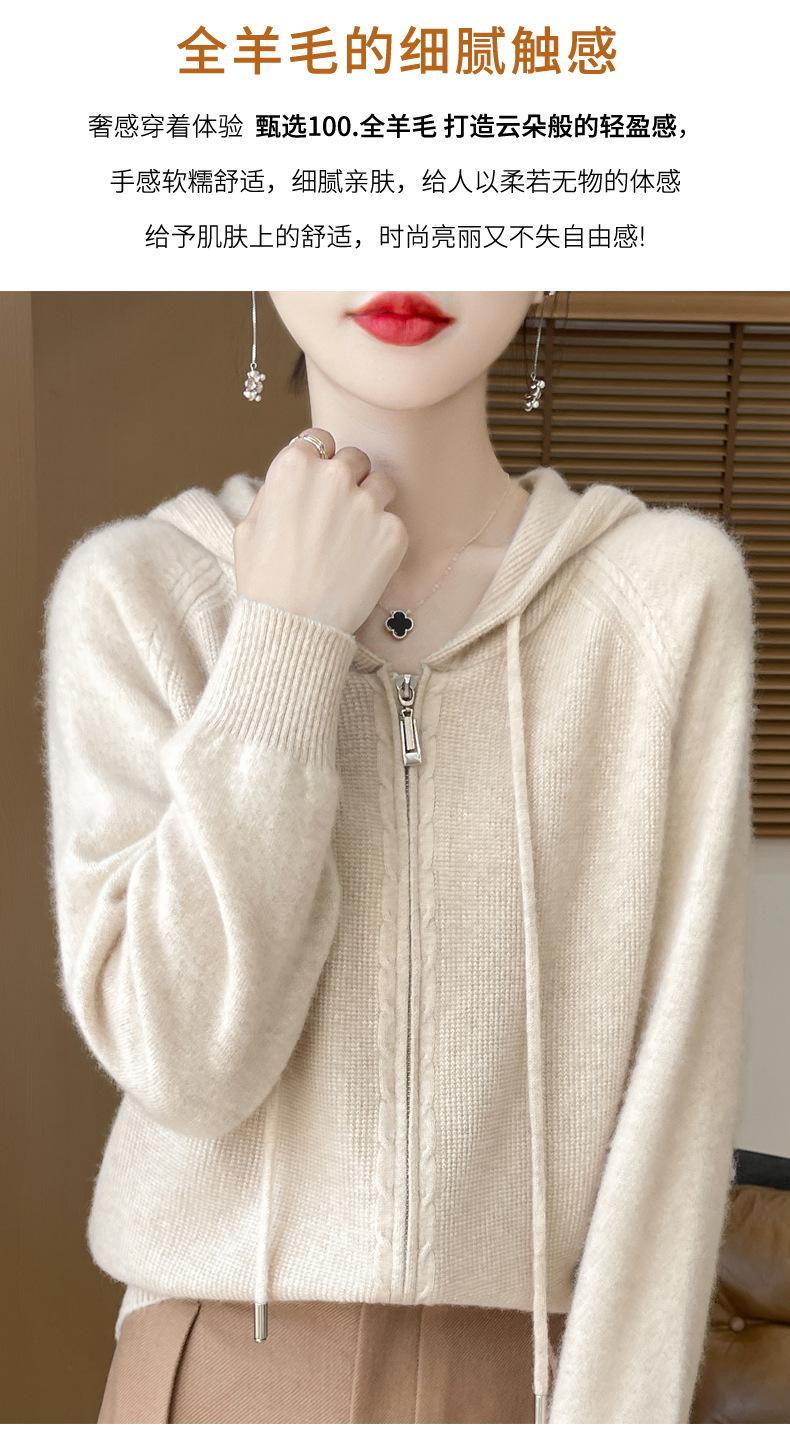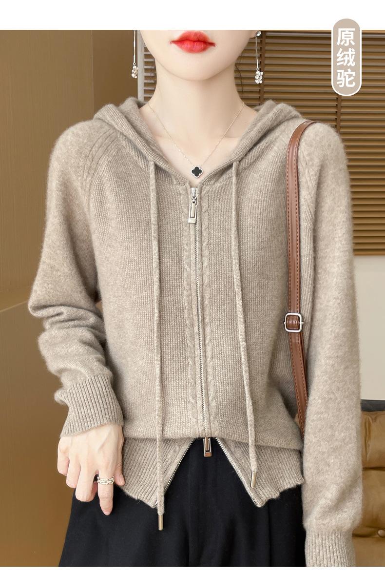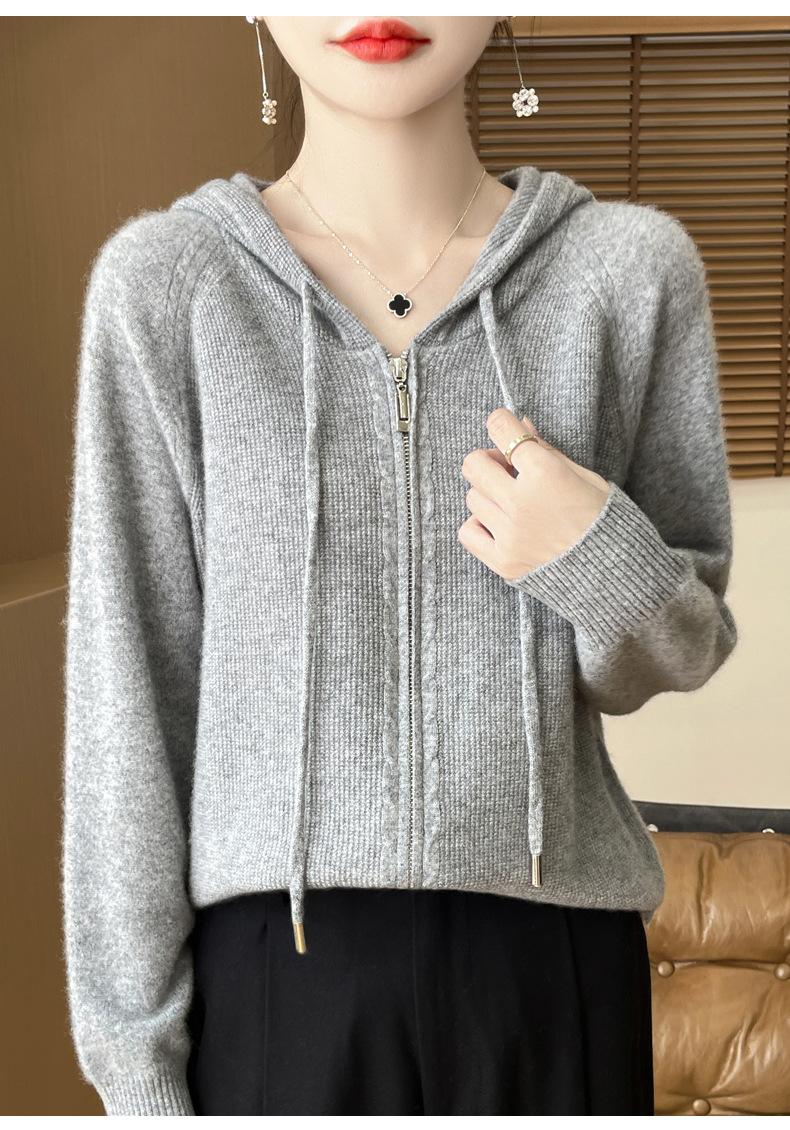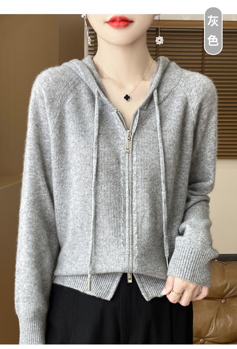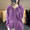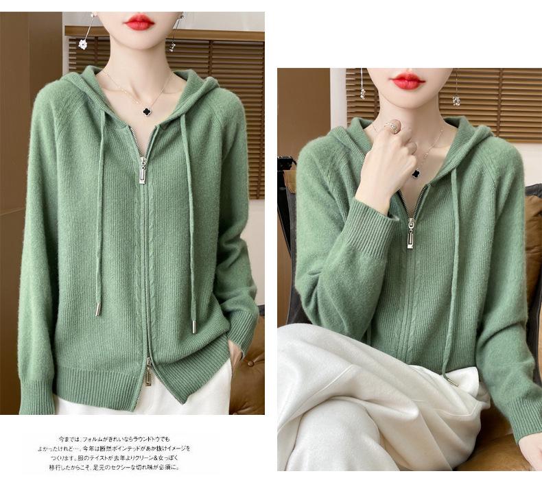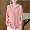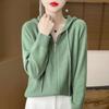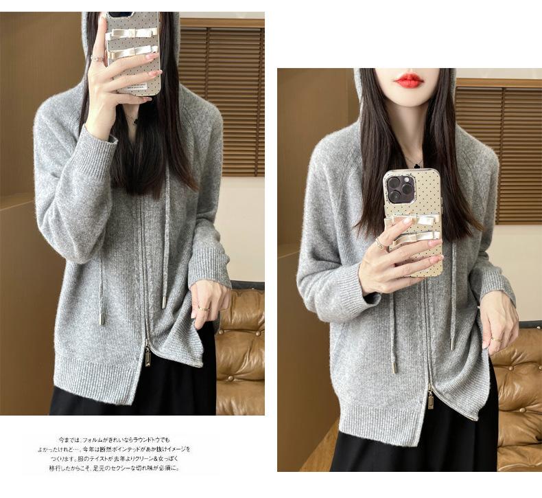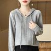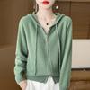 Cárdigan de Punto con Capucha de Lana Pura Nuevo Otoño/Invierno 2025 Cierre Doble Color Sólido Suave Cálido Top Ropa Exterior Mujer