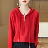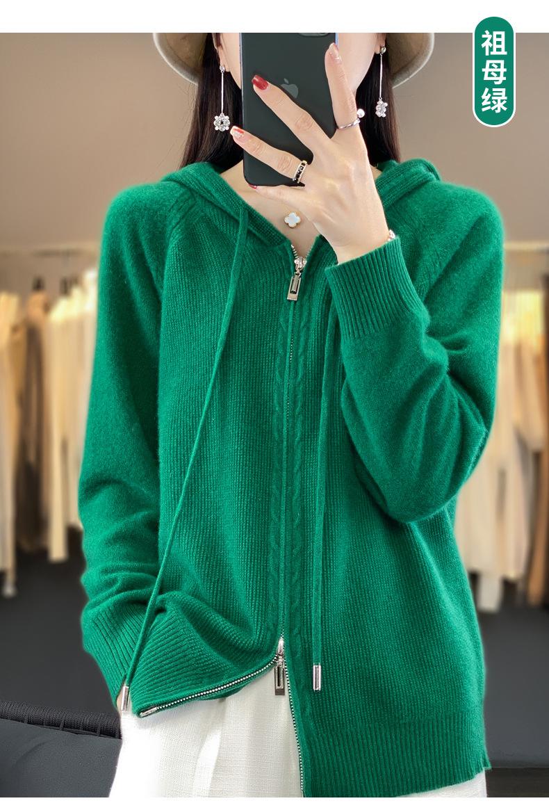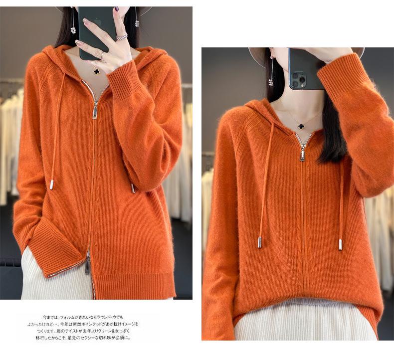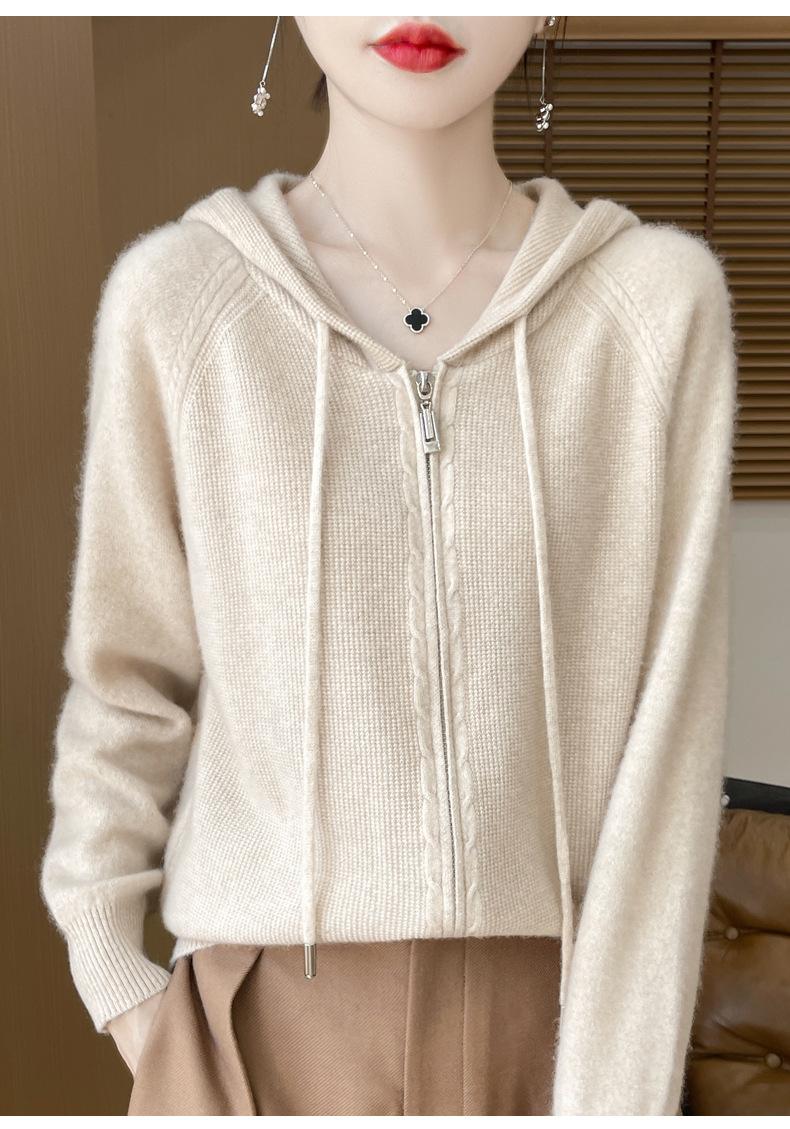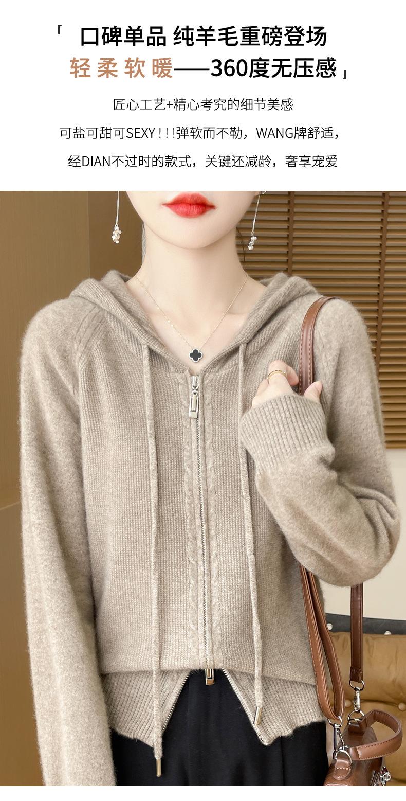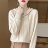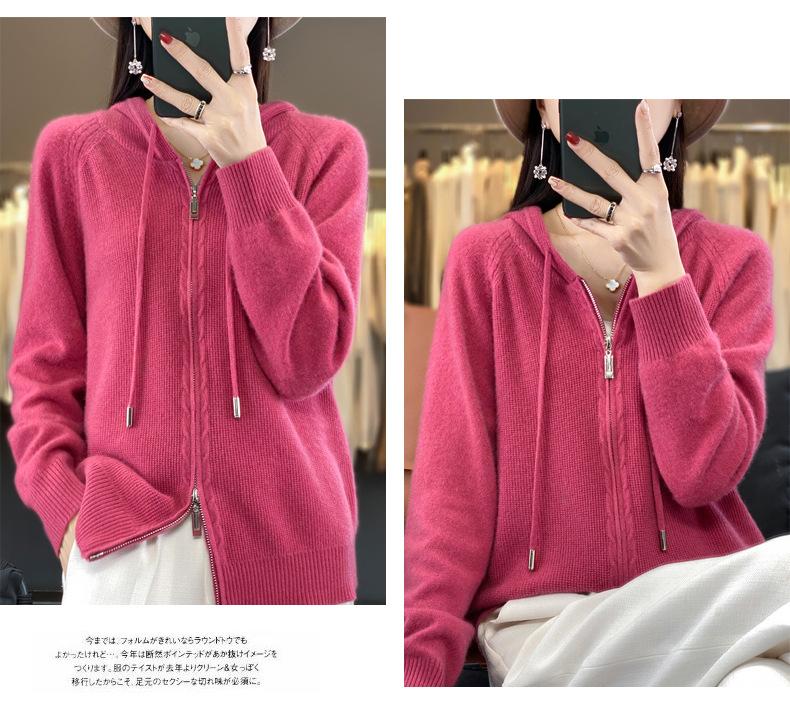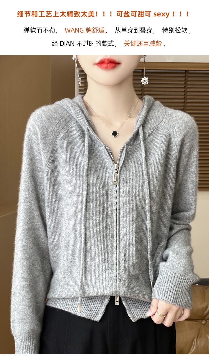 Cárdigan de Punto con Capucha de Lana Pura Nuevo Otoño/Invierno 2025 Cierre Doble Color Sólido Suave Cálido Top Ropa Exterior Mujer