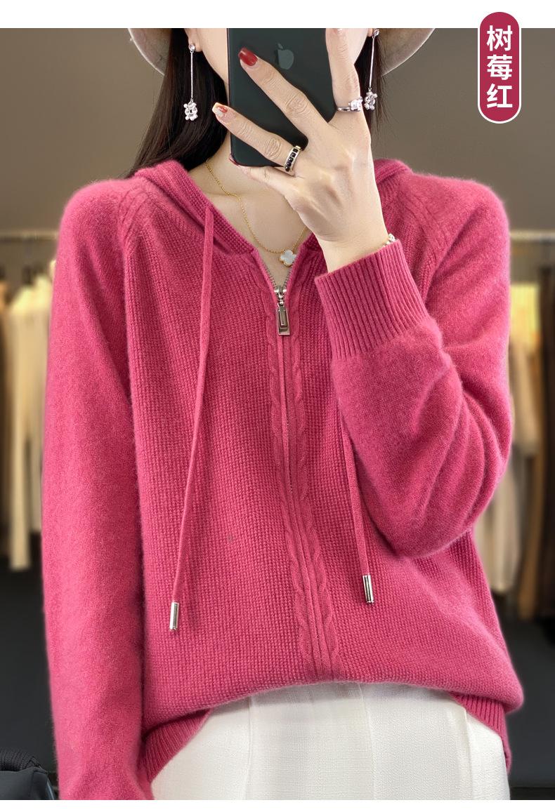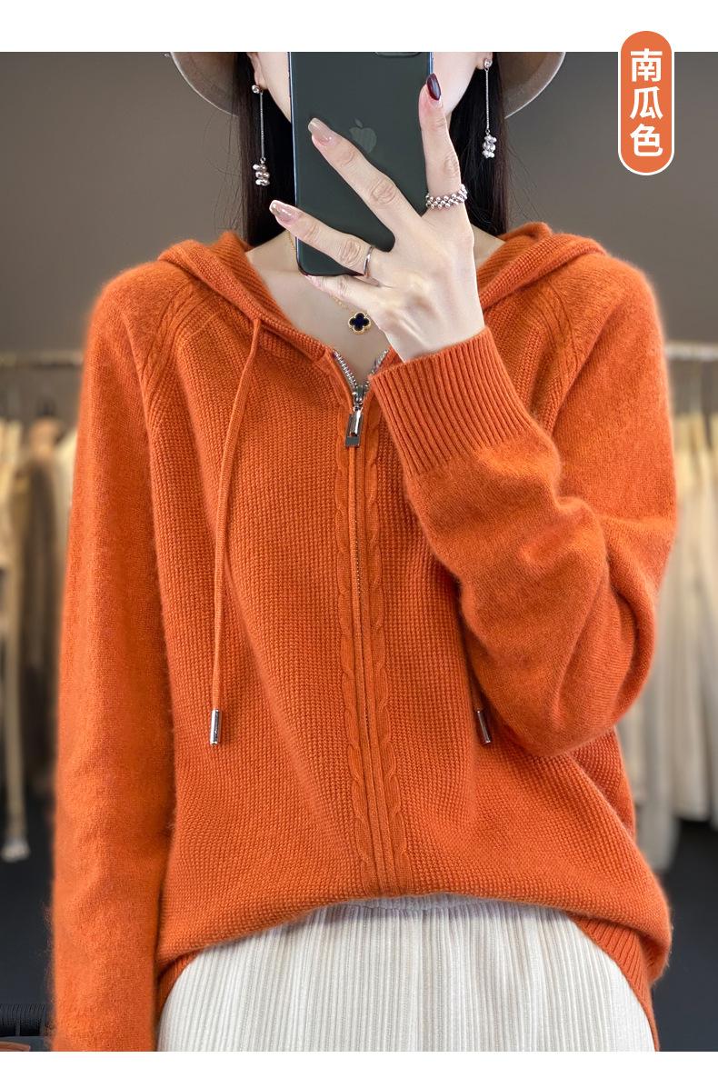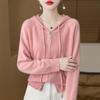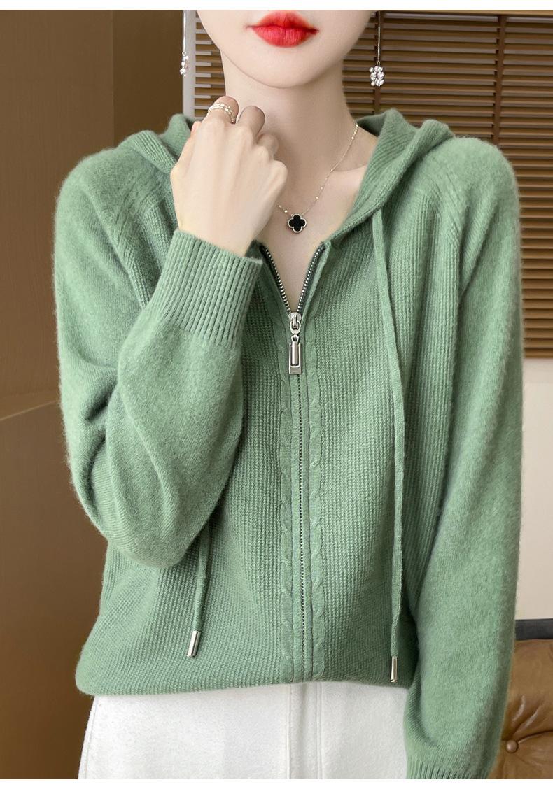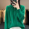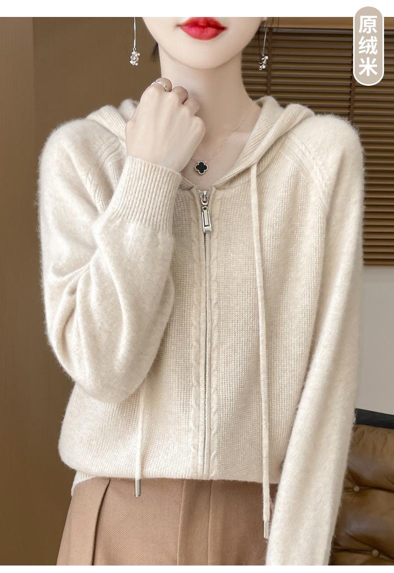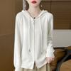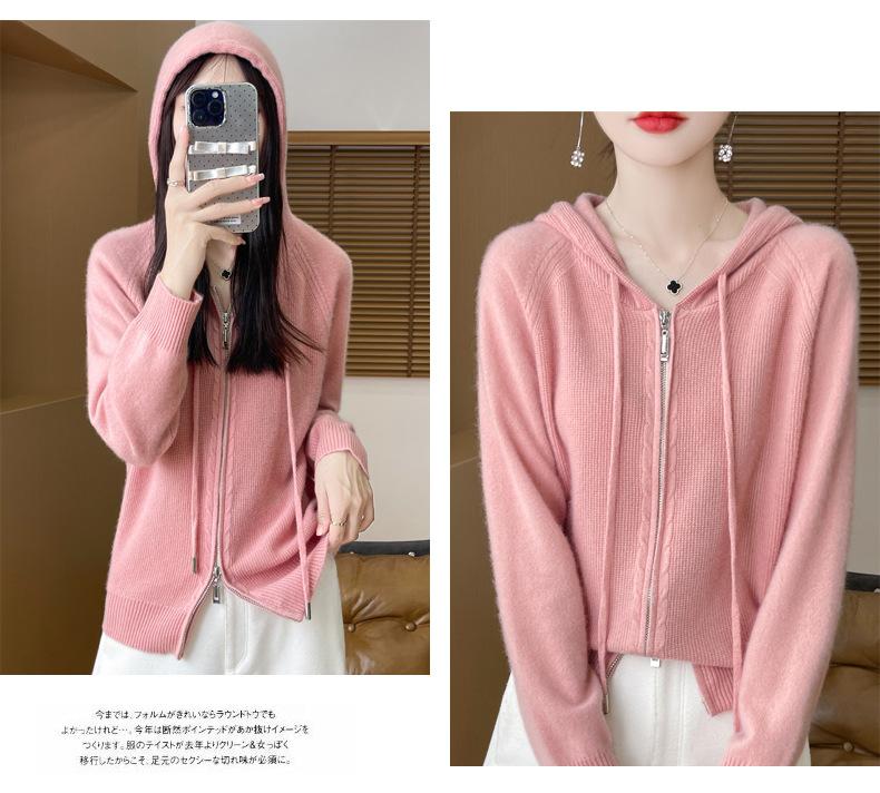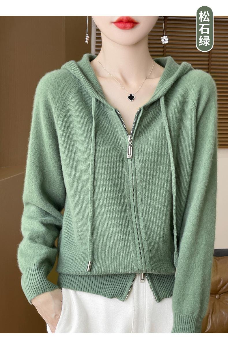 Cárdigan de Punto con Capucha de Lana Pura Nuevo Otoño/Invierno 2025 Cierre Doble Color Sólido Suave Cálido Top Ropa Exterior Mujer