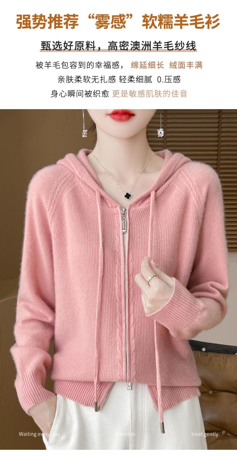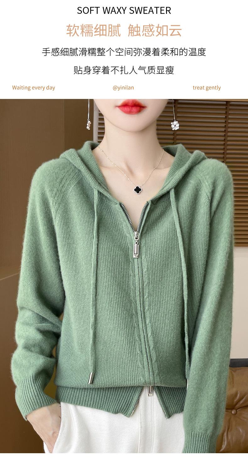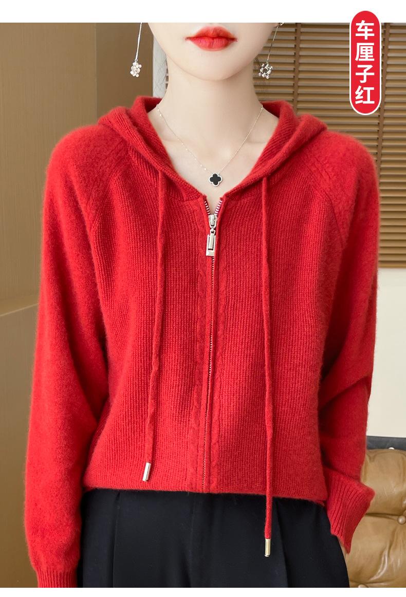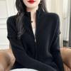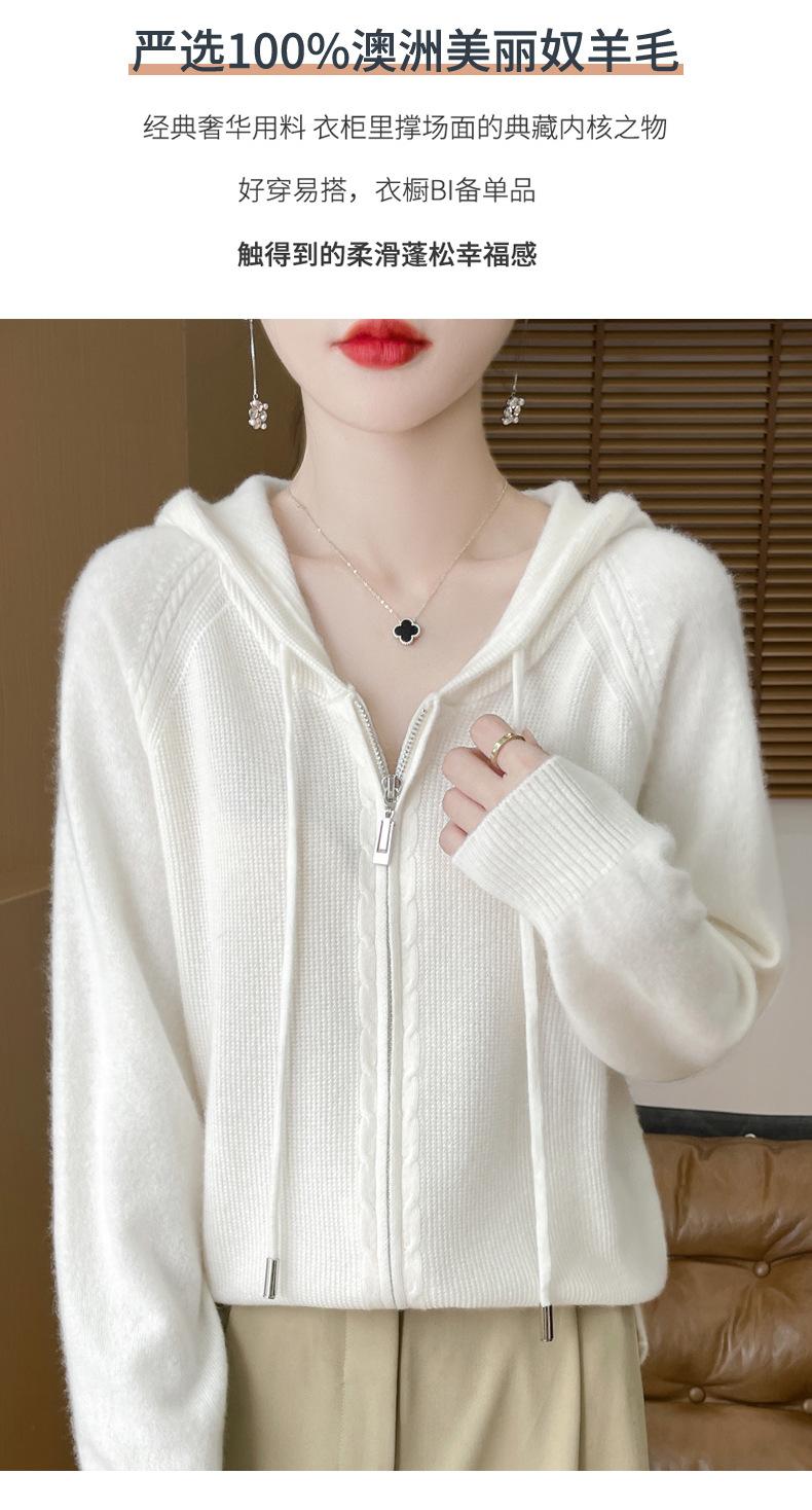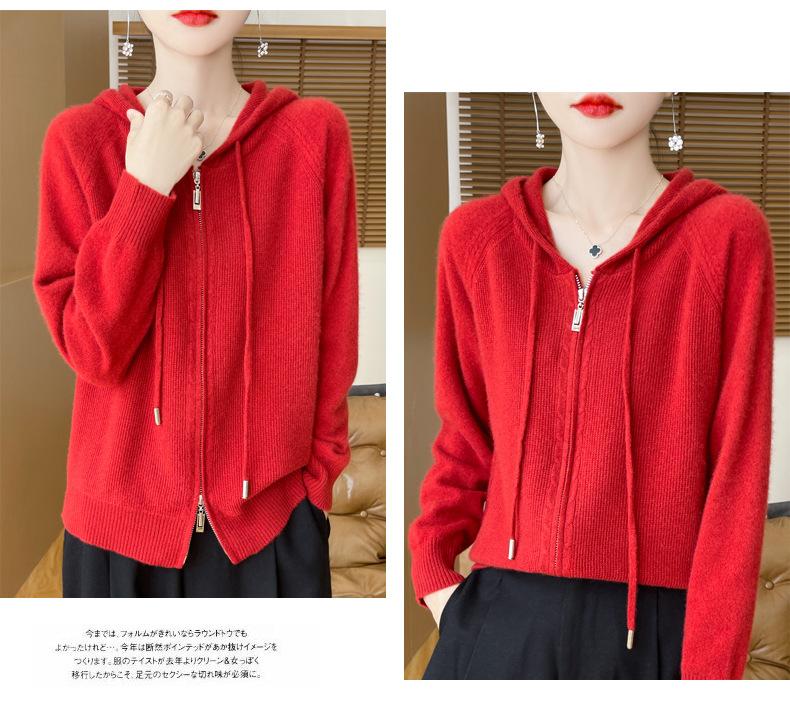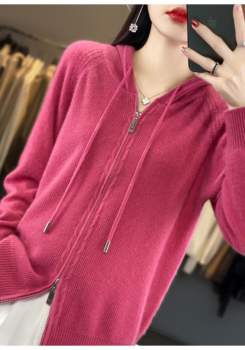 Cárdigan de Punto con Capucha de Lana Pura Nuevo Otoño/Invierno 2025 Cierre Doble Color Sólido Suave Cálido Top Ropa Exterior Mujer