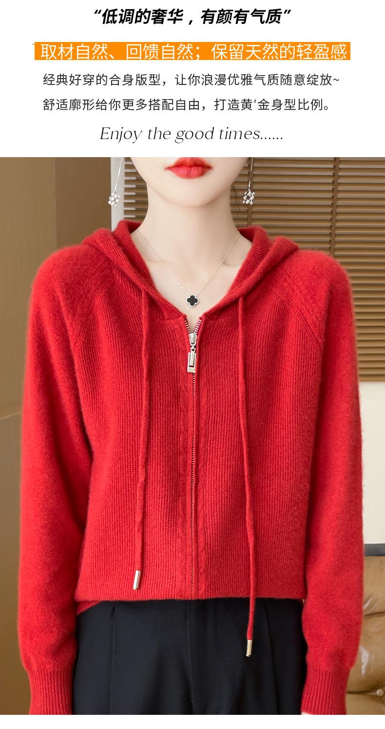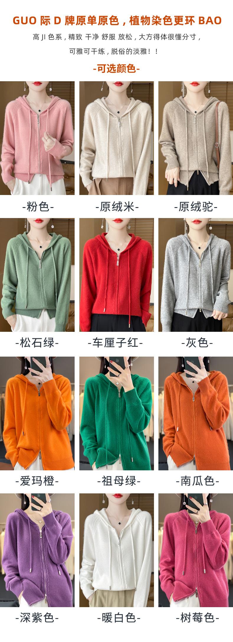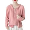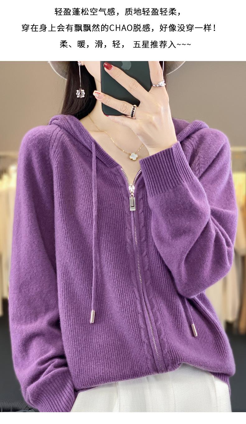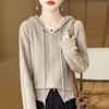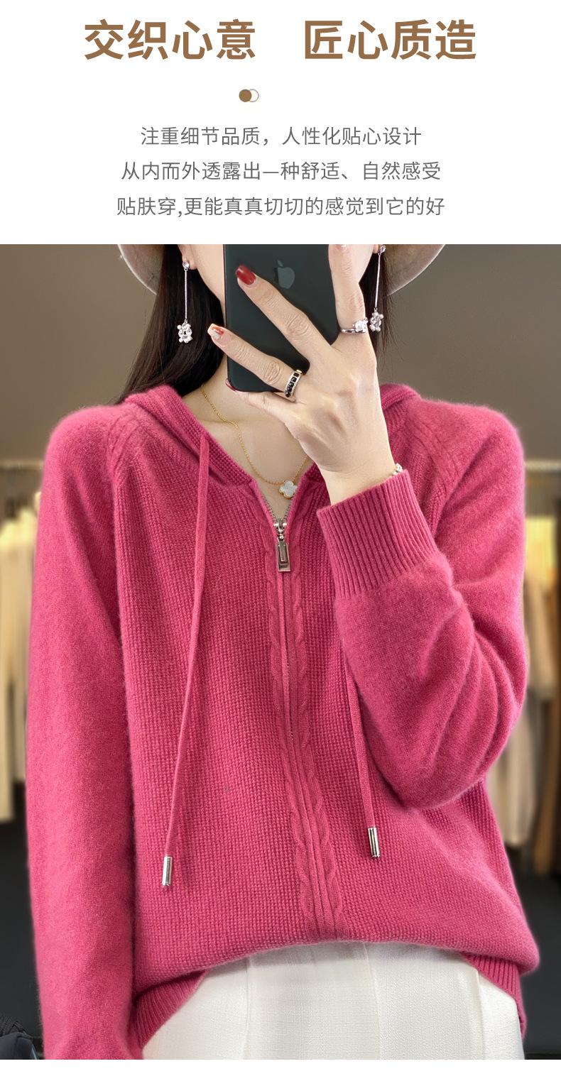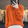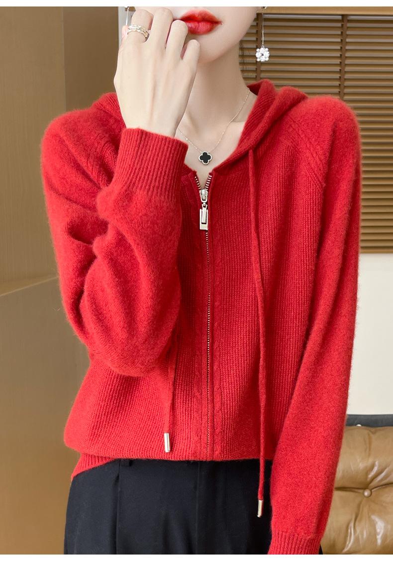 Cárdigan de Punto con Capucha de Lana Pura Nuevo Otoño/Invierno 2025 Cierre Doble Color Sólido Suave Cálido Top Ropa Exterior Mujer