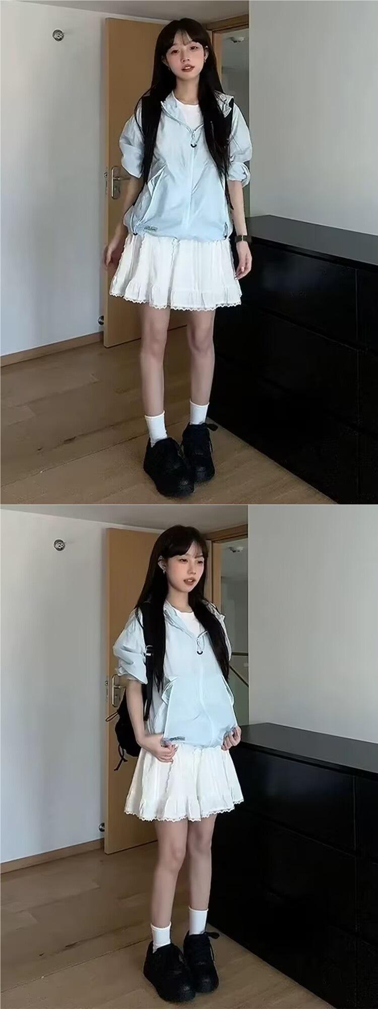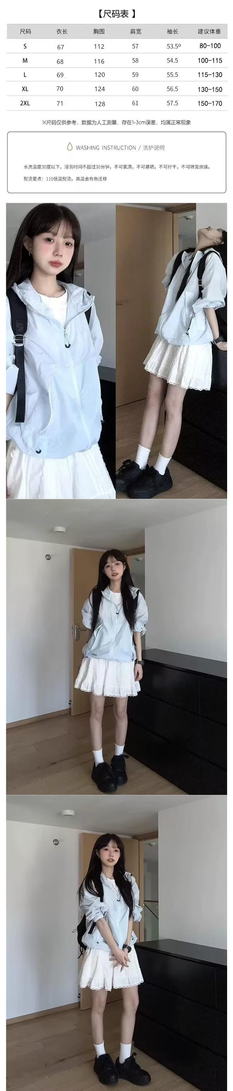 Chaqueta Cortavientos Fina Azul Protector Solar Abrigo para Mujer Verano 2025 Nuevo Deportes al Aire Libre Suelto con Capucha Top