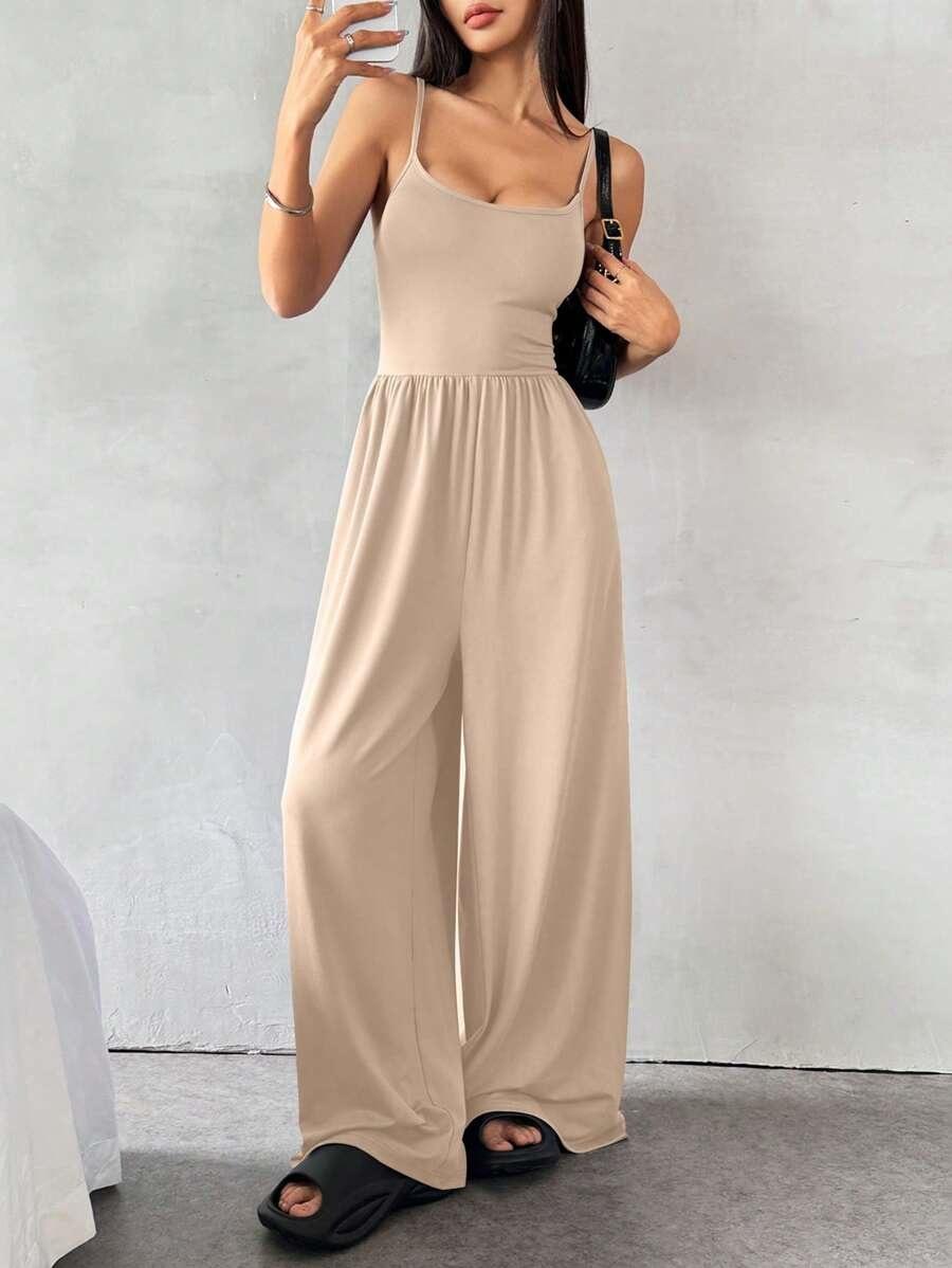 Amazon Europeo y Americano Transfronterizo Nuevo Estilo Mono Casual de Tirantes para Mujer Verano Pierna Ancha Suelto con Bolsillos