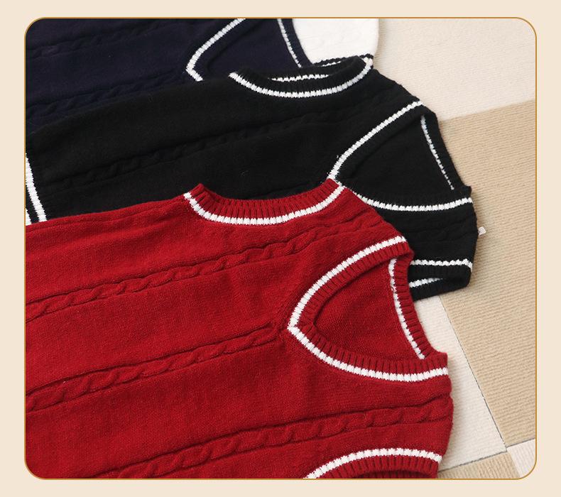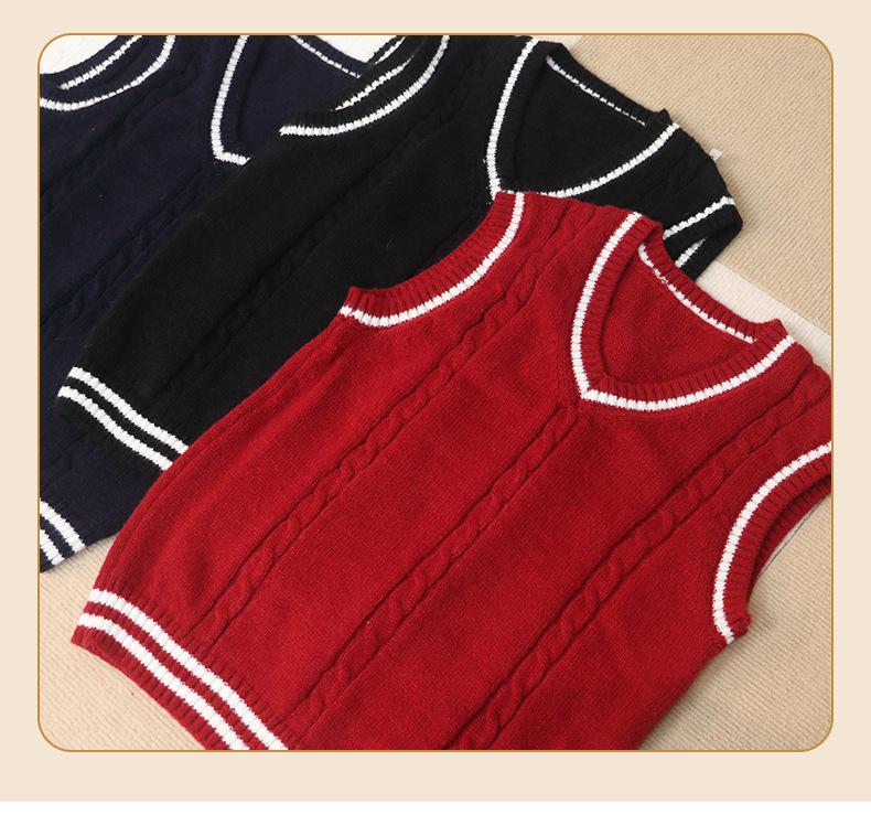 Colegio Estilo Británico Uniforme Jk Suéter Cuello en V Chaleco de Color Trenzado para Mujer Uniforme Escolar Chaleco Suéter Suéter de Punto al por Mayor