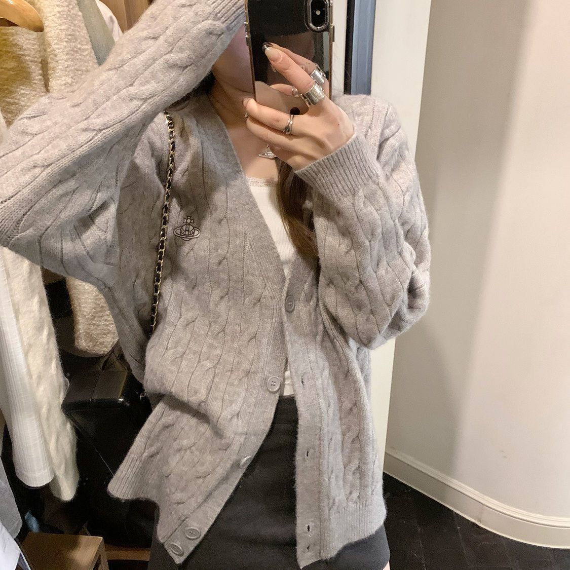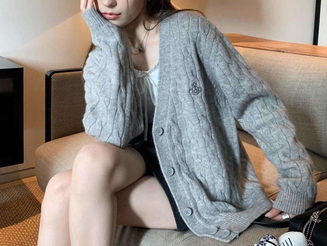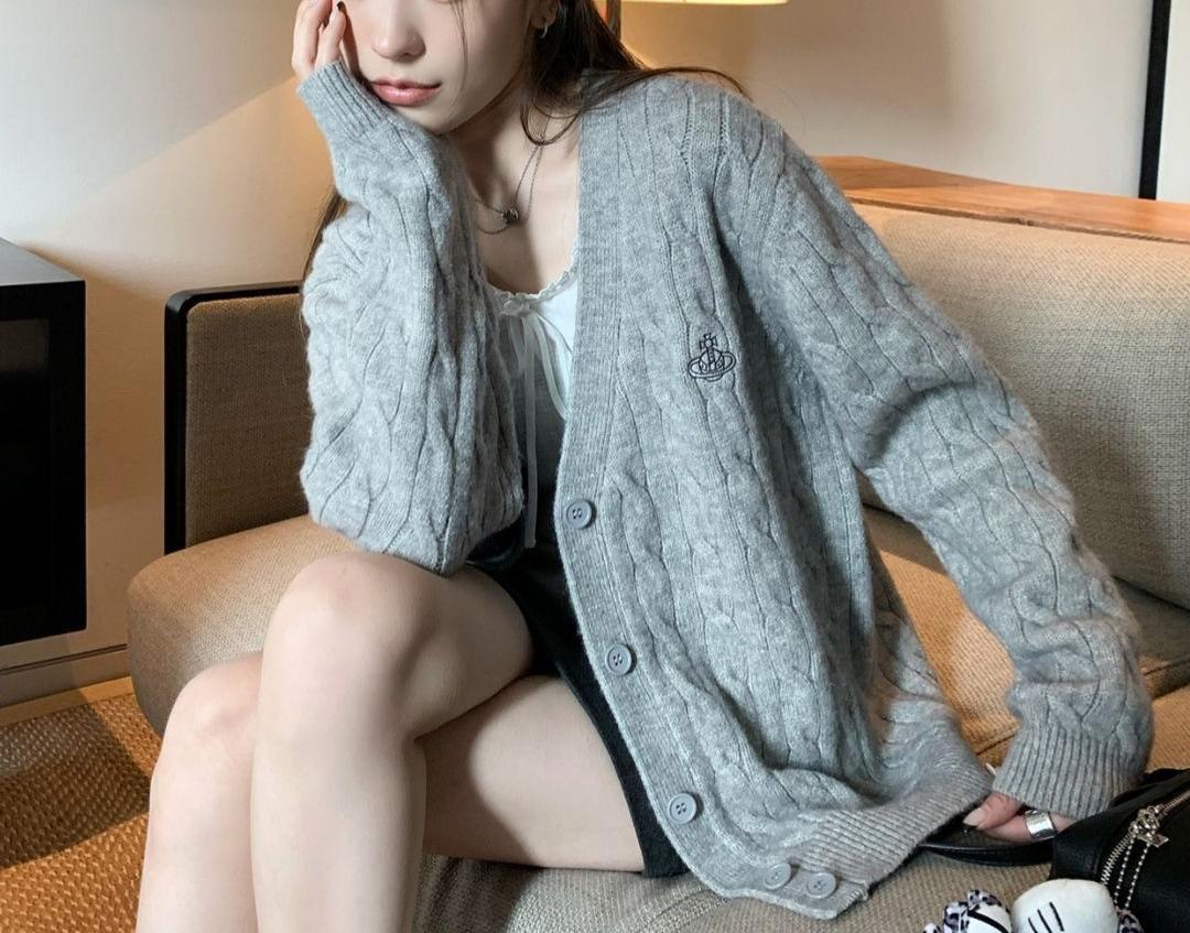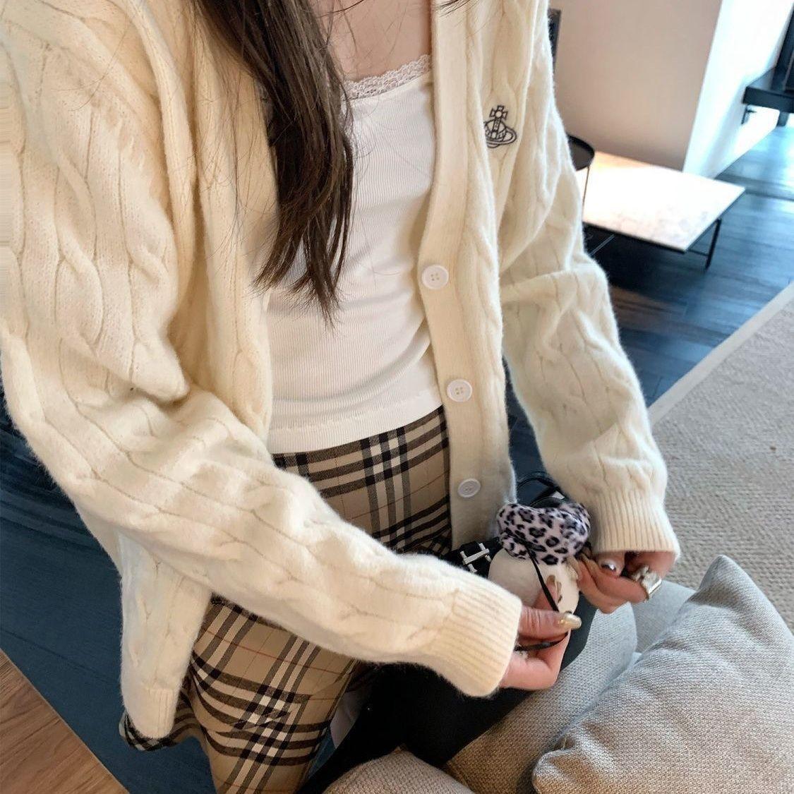 Nuevo Cárdigan de Punto Suave con Cuello Bordado 2025 Otoño/Invierno Nuevo Suéter Holgado Delgado de Gama Alta