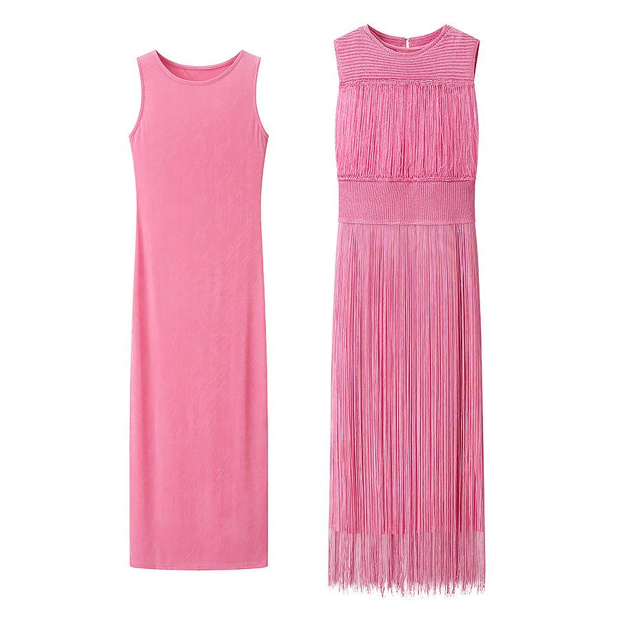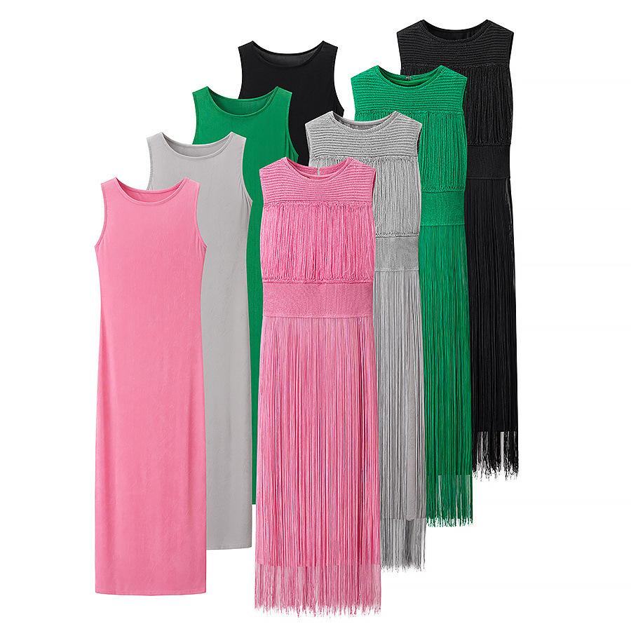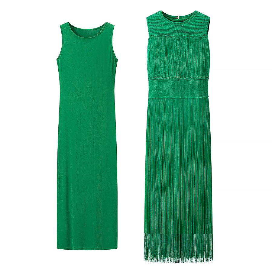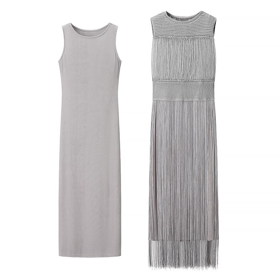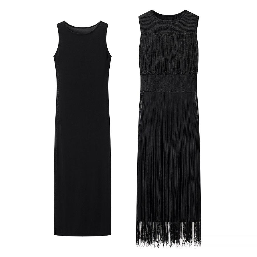 Moda Femenina Europea y Americana Transfronteriza AliExpress Vestido de Flecos Tejido de Dos Piezas de Temperamento de Moda