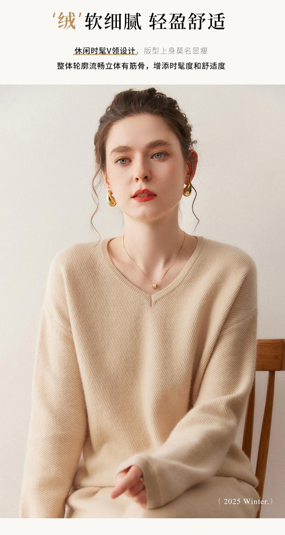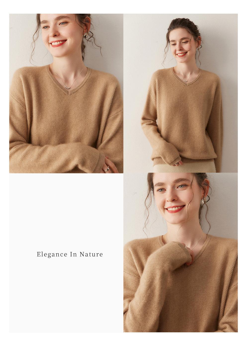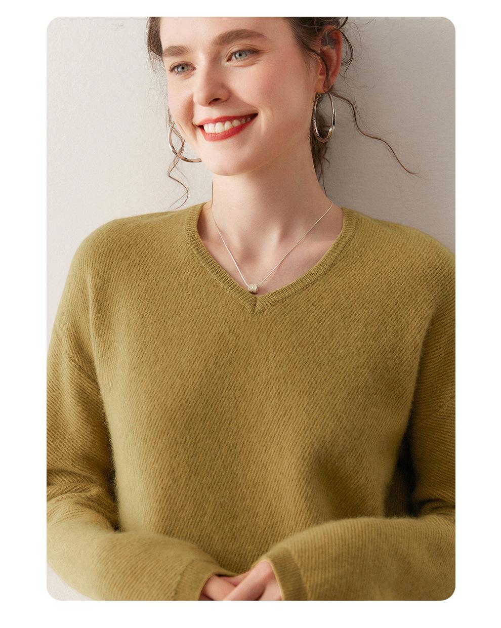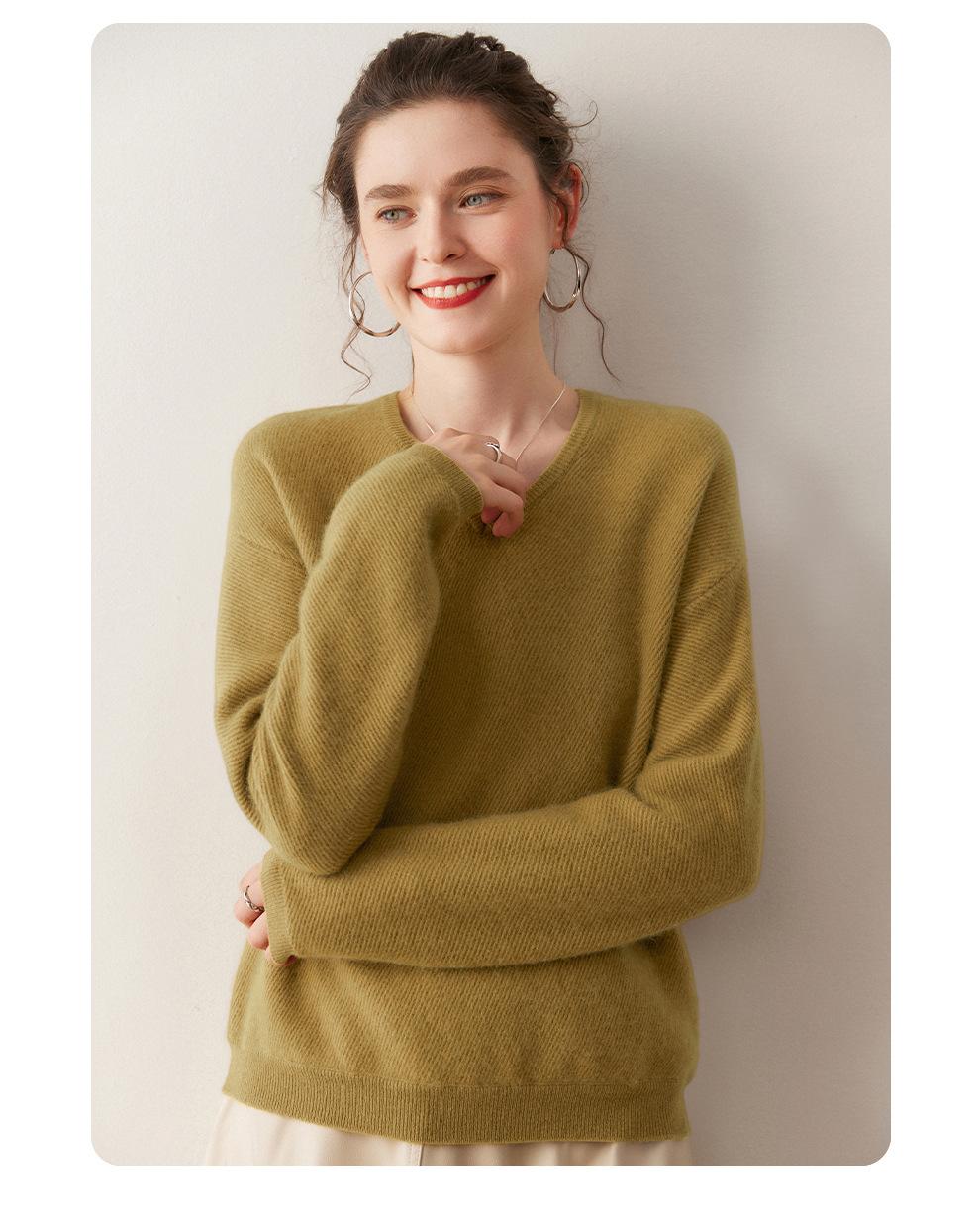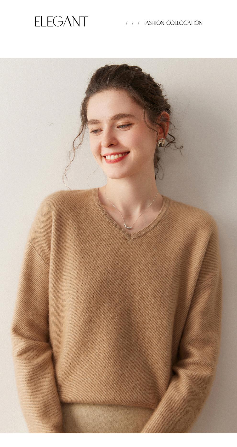 Nueva Capa Base Versátil Simple de Cachemira Otoño/Invierno Tejido de Cuello en V Suéter de Cachemira Holgado Top de Punto Adelgazante