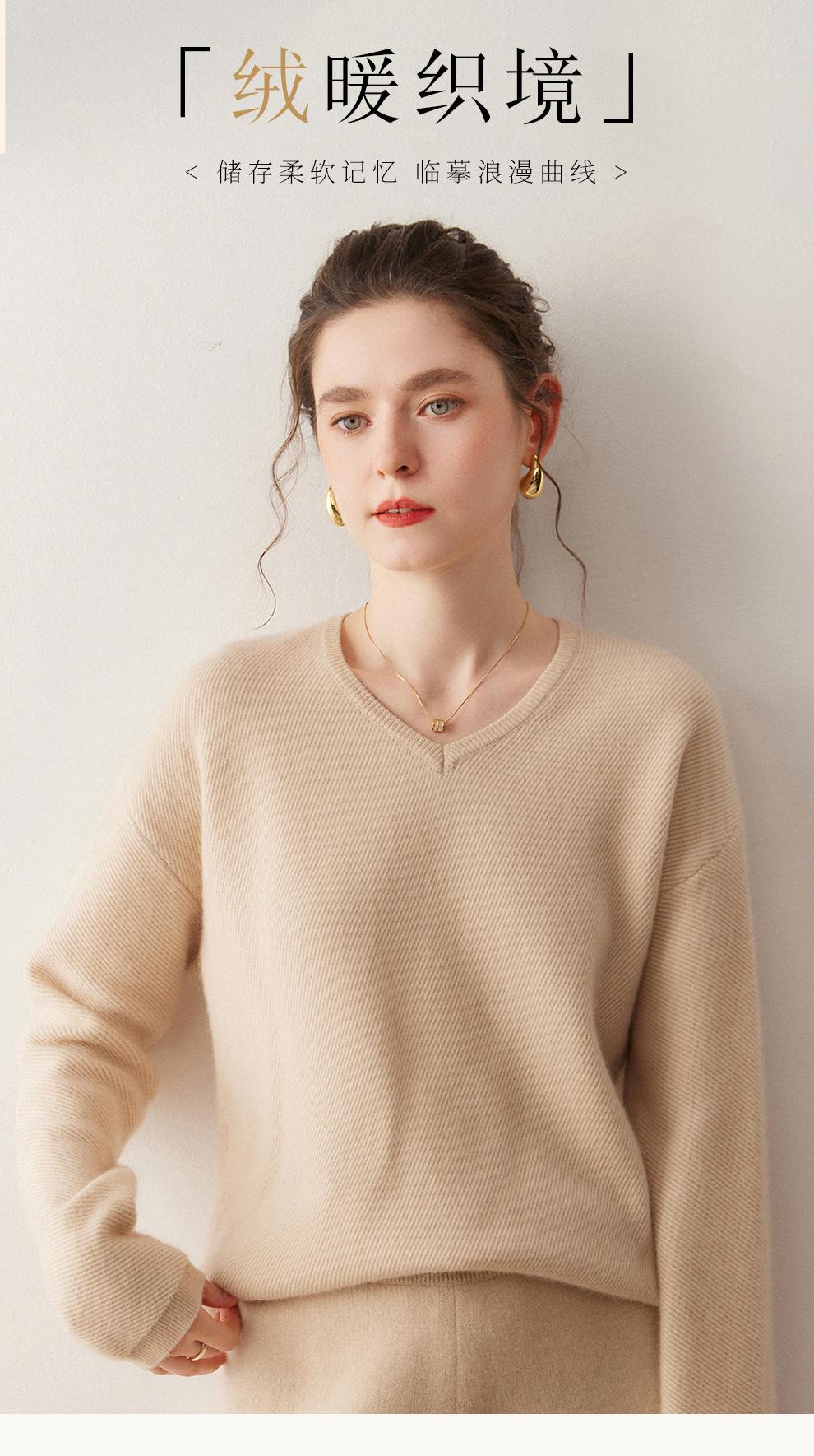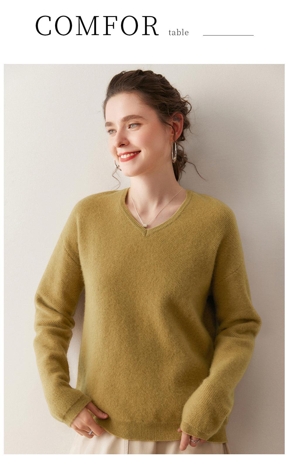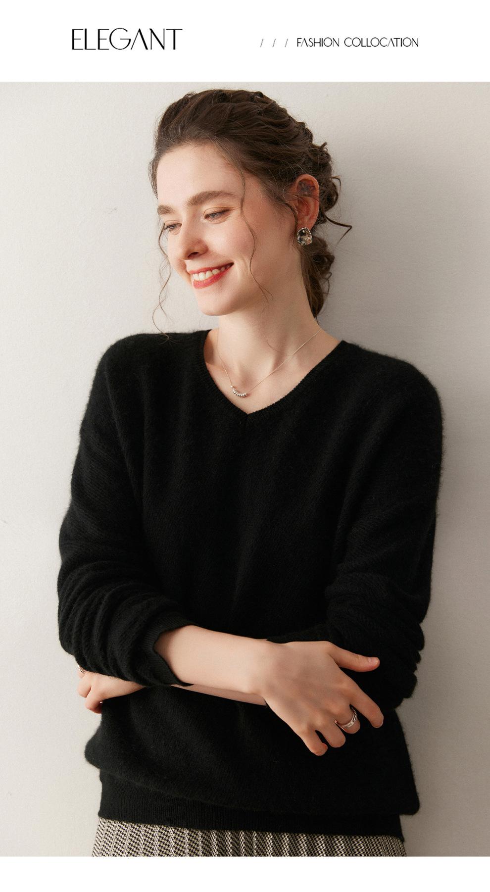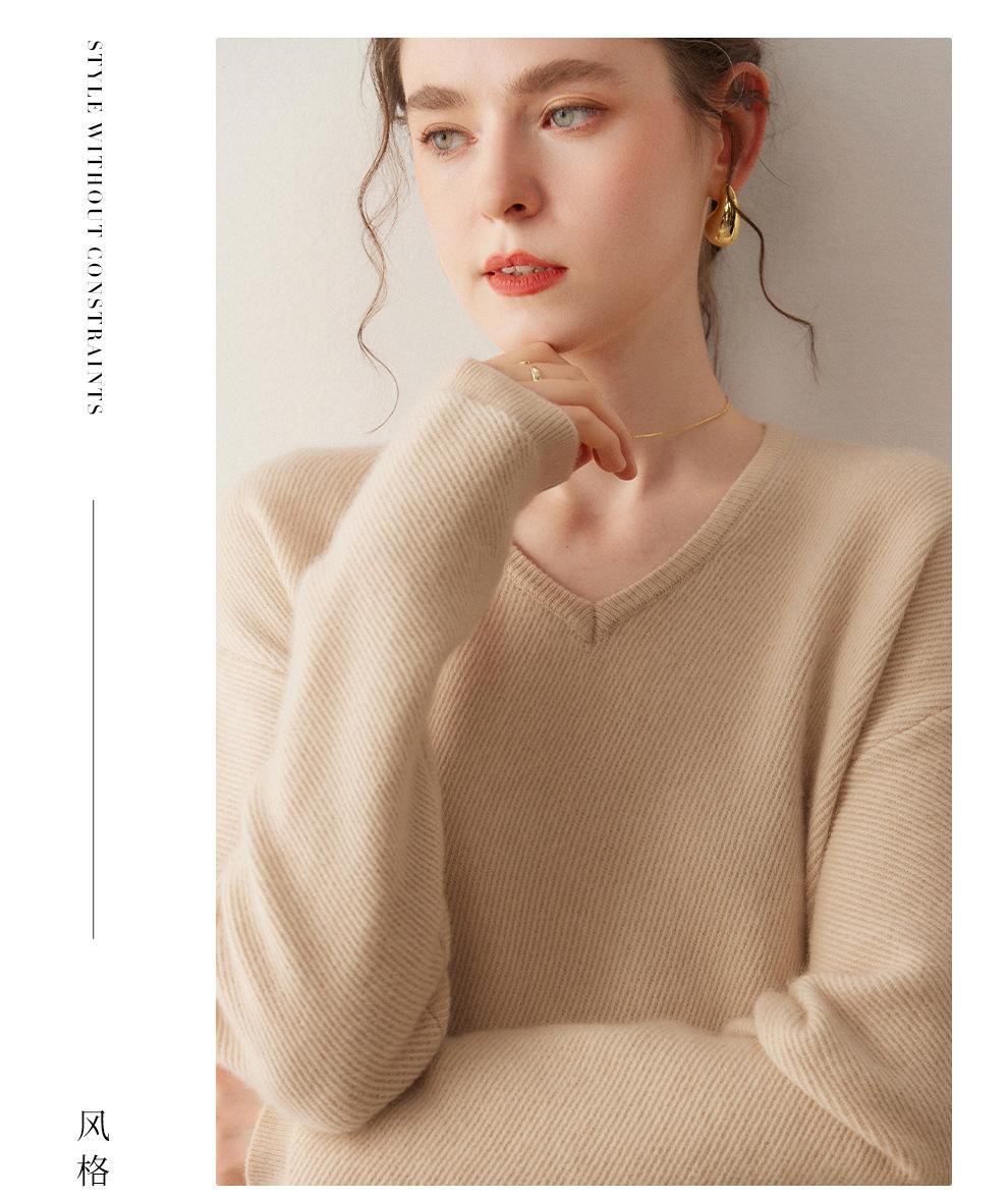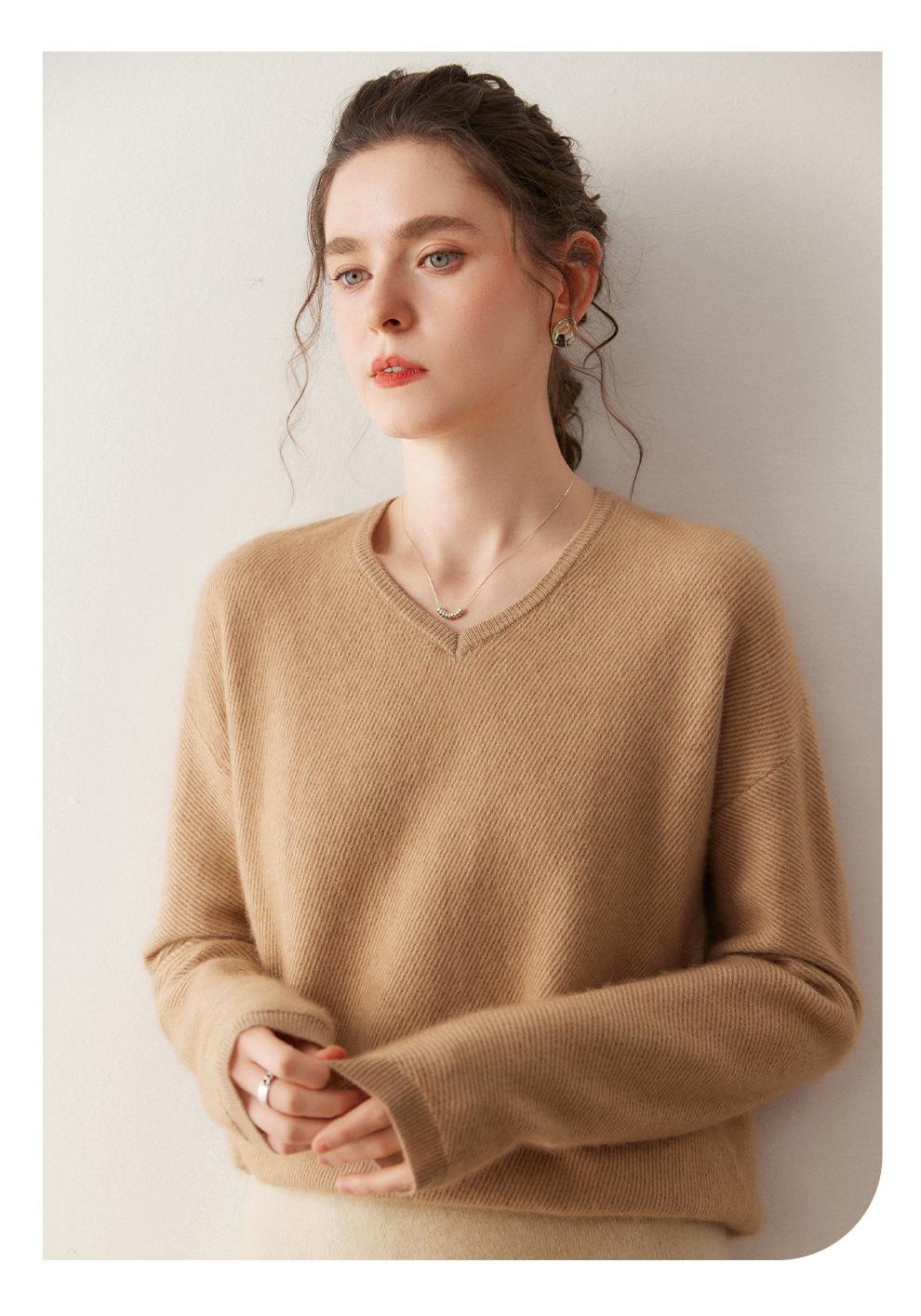 Nueva Capa Base Versátil Simple de Cachemira Otoño/Invierno Tejido de Cuello en V Suéter de Cachemira Holgado Top de Punto Adelgazante