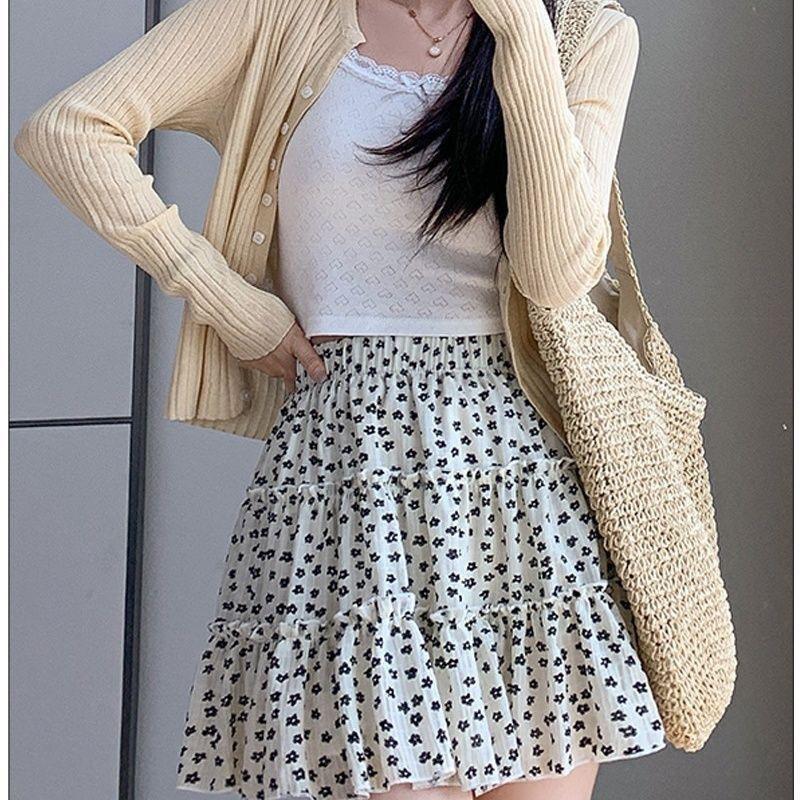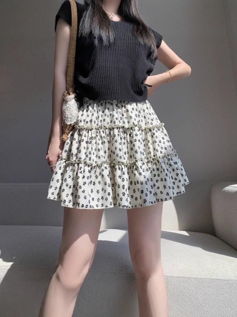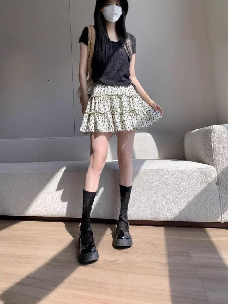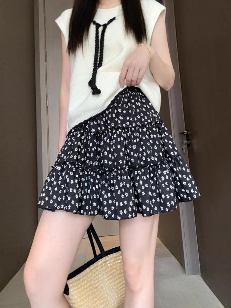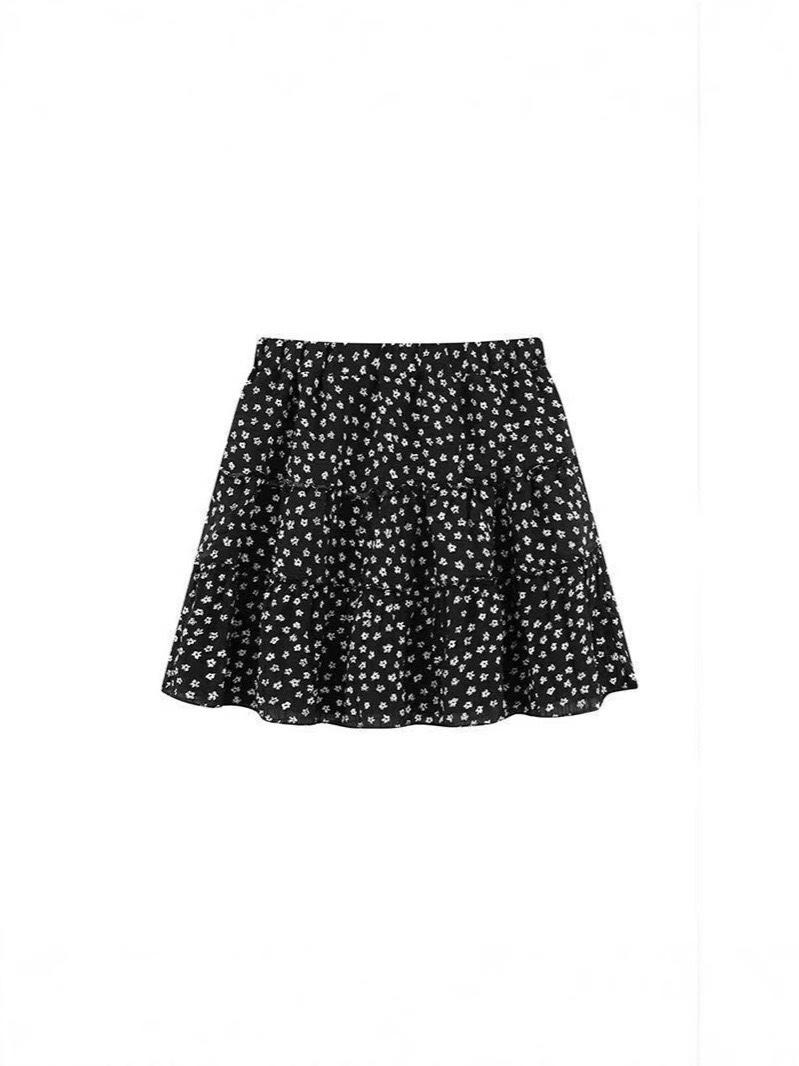 Pastel de Falda Dulce Floral Verano 2025 Cintura Alta Slim Negro Falda Abullonada para Personas Pequeñas