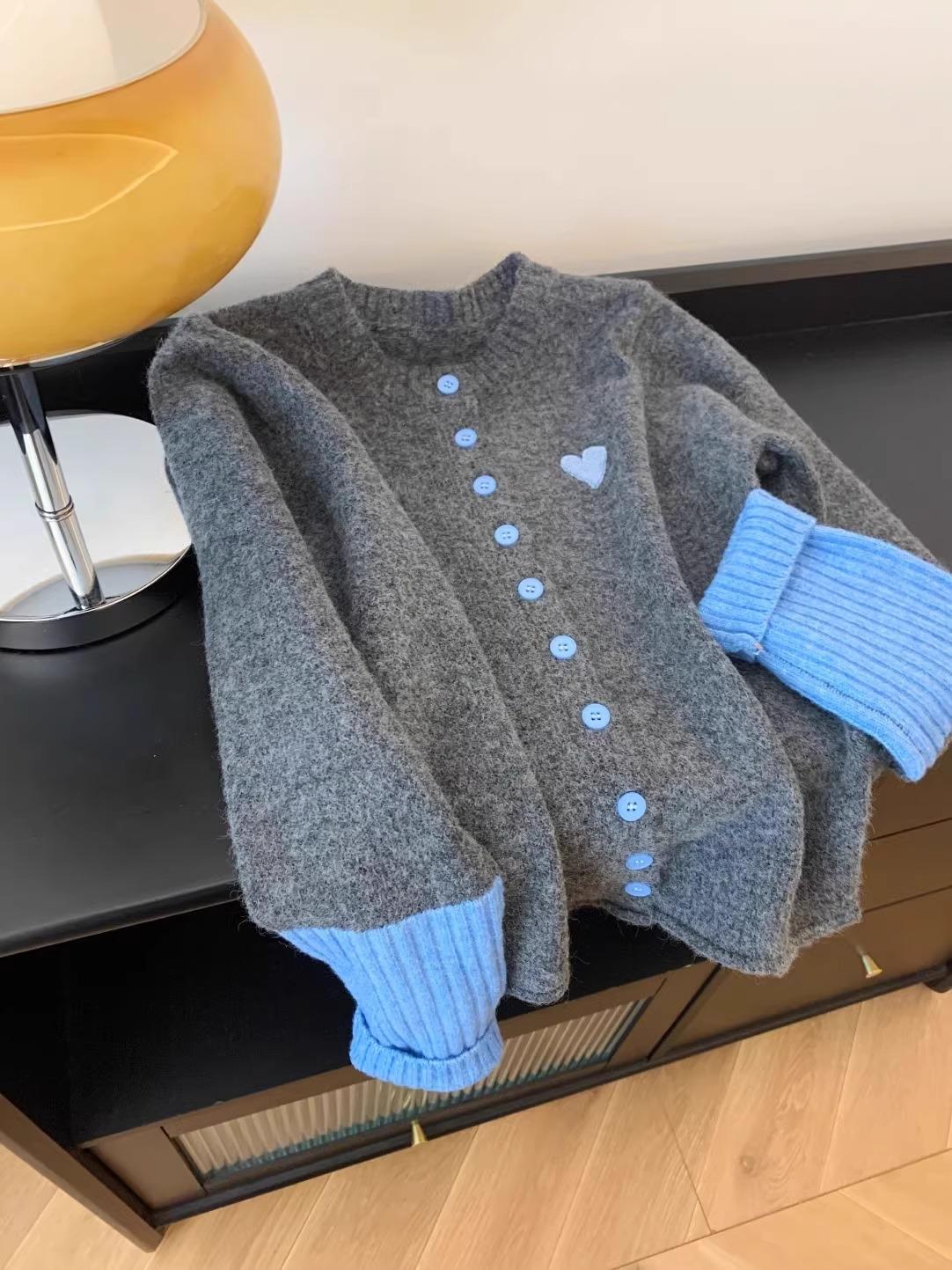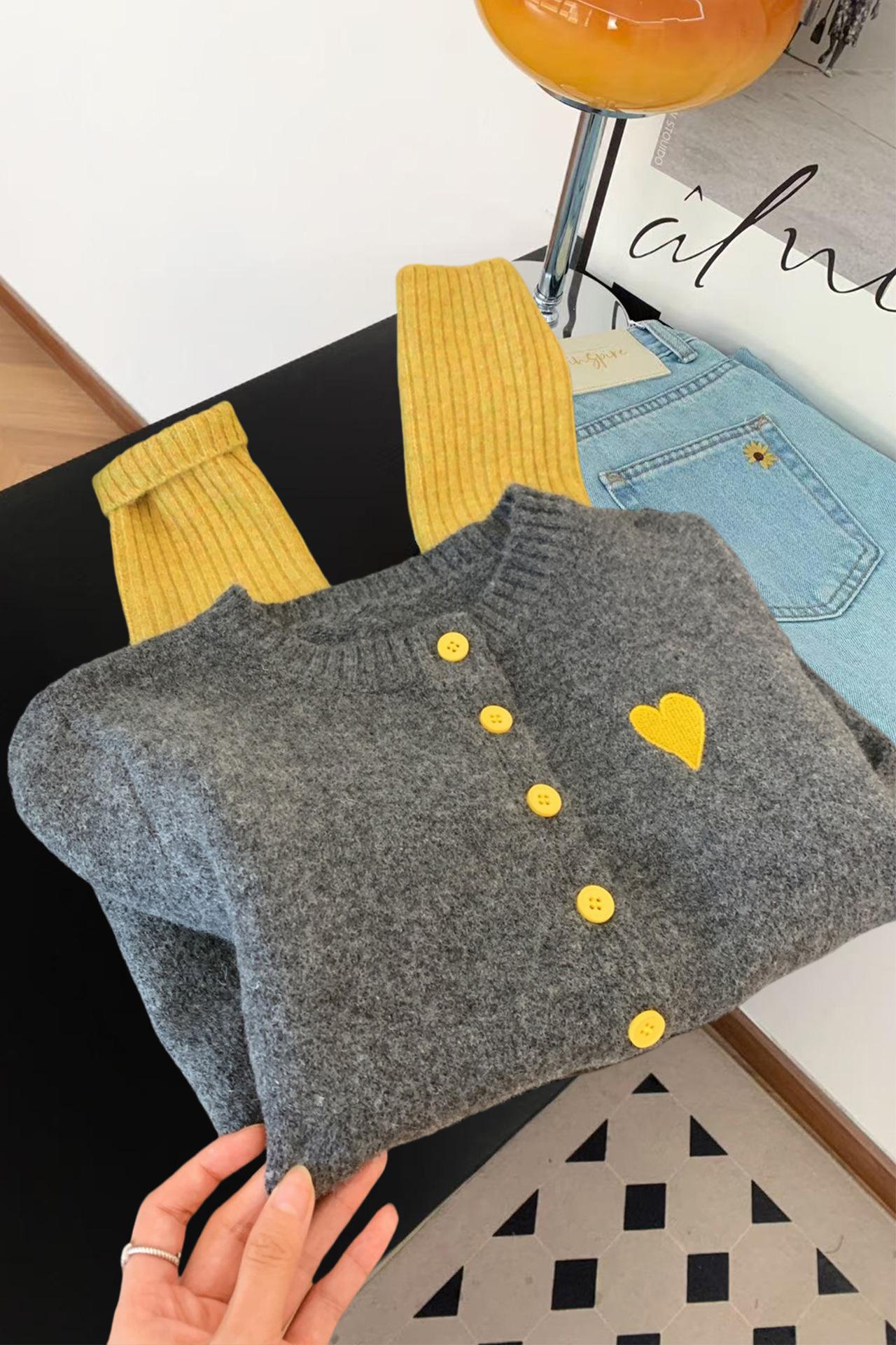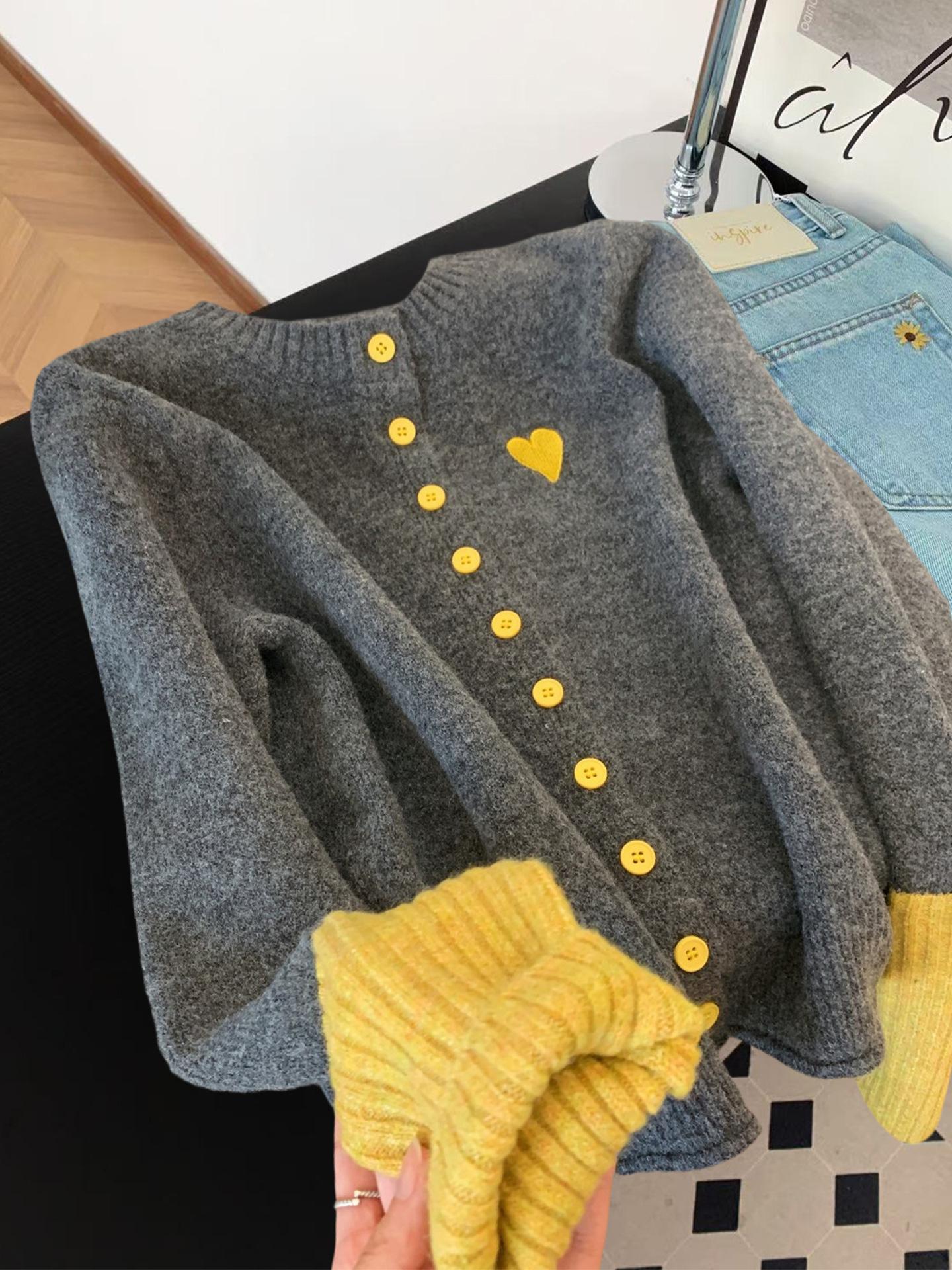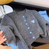 Amor Bordado Gris Suave Cálido Suéter Mujer 2025 Otoño Nuevo Coreano Bloque de Color Tejido Cárdigan Abrigo
