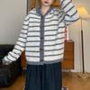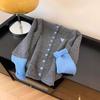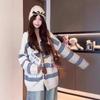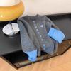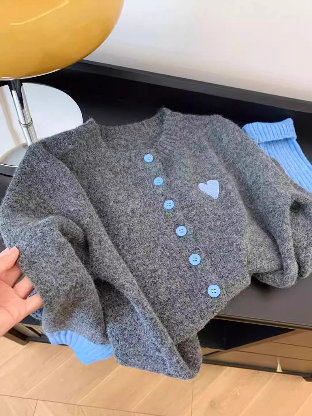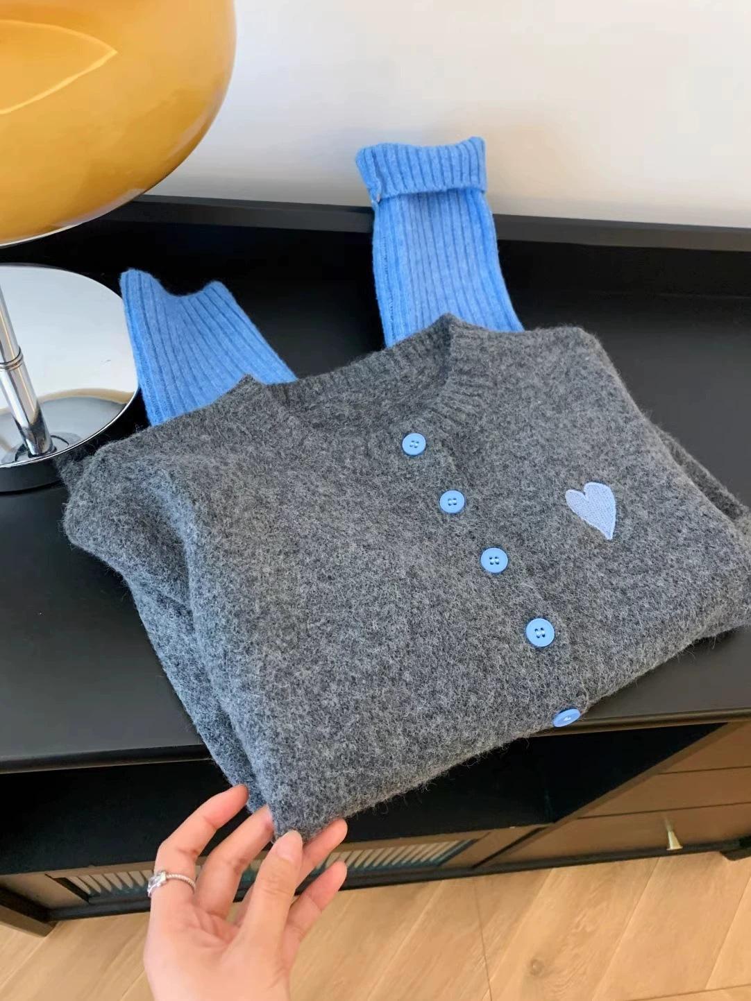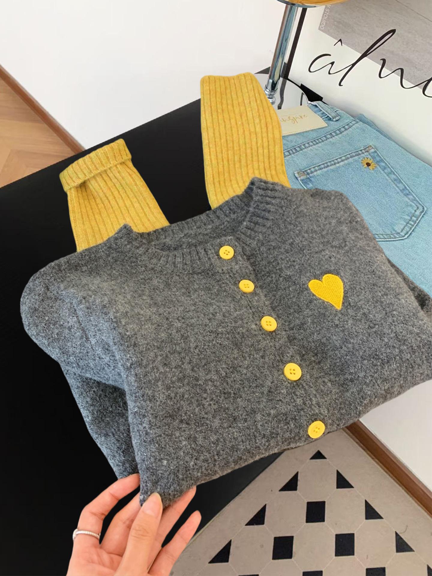 Amor Bordado Gris Suave Cálido Suéter Mujer 2025 Otoño Nuevo Coreano Bloque de Color Tejido Cárdigan Abrigo