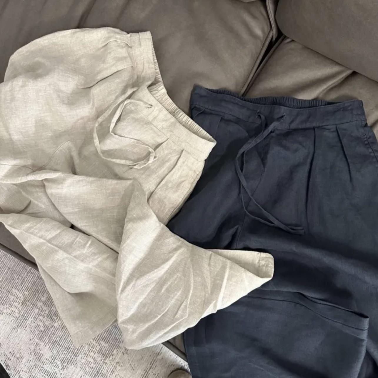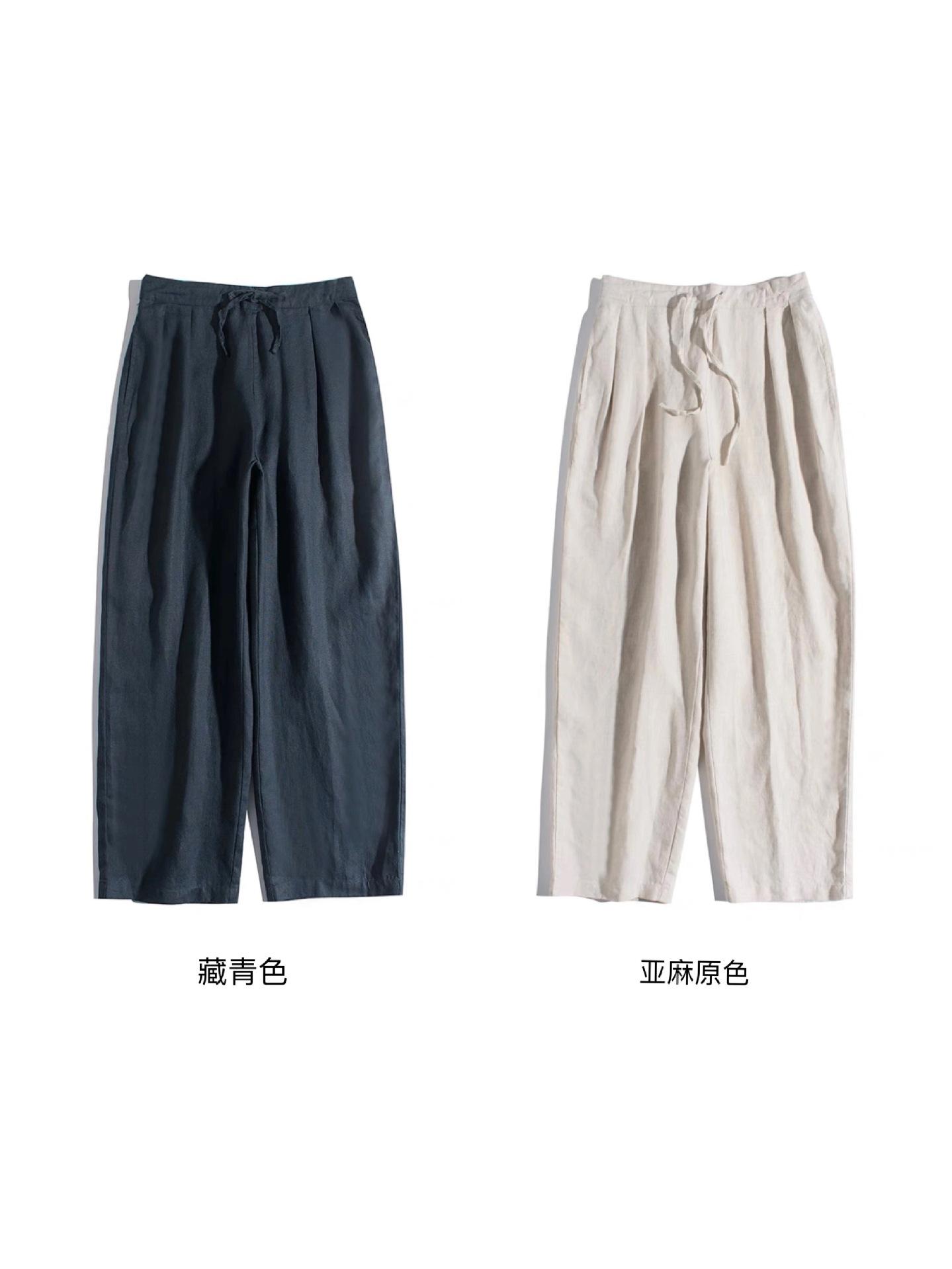 Pantalones de Lino Delgados, Frescos, Transpirables, con Aspecto Adelgazante, de Cintura Alta, Rectos de Pierna Ancha con Caída para Mujer 2025 Verano Nuevo Estilo