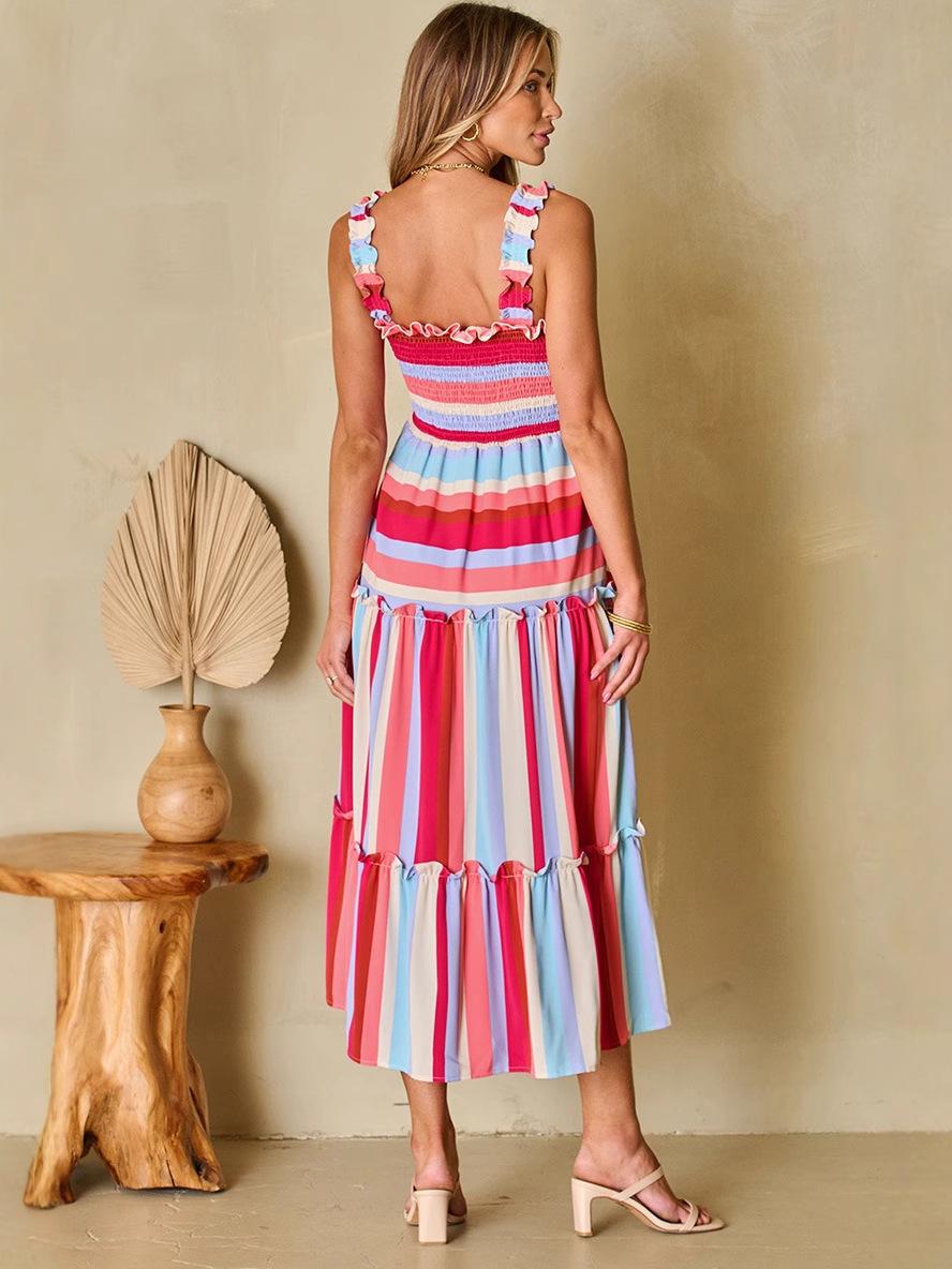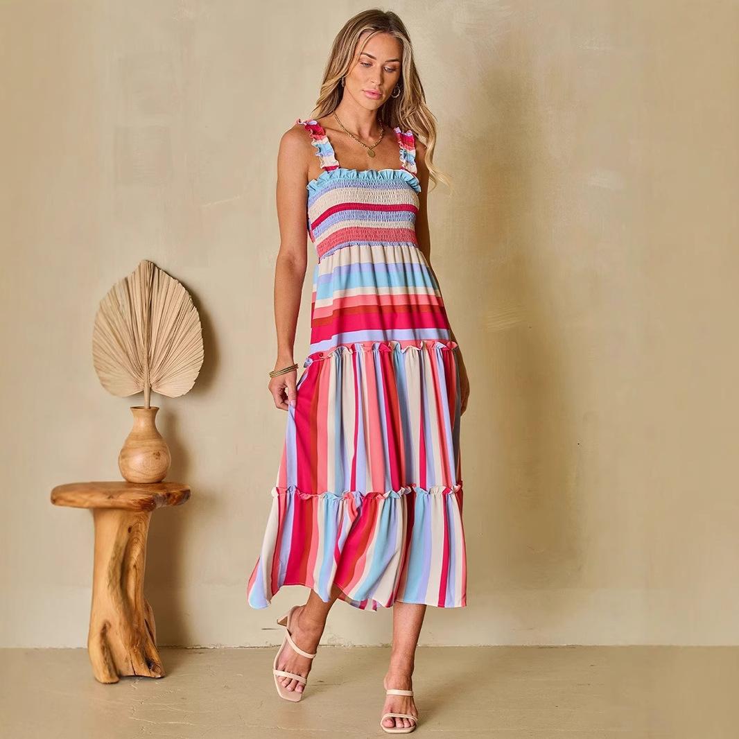 Vestido a rayas sin mangas de color de moda europea y americana para mujer 2024 verano nuevo estilo personalizado suelto de cintura alta para mujer